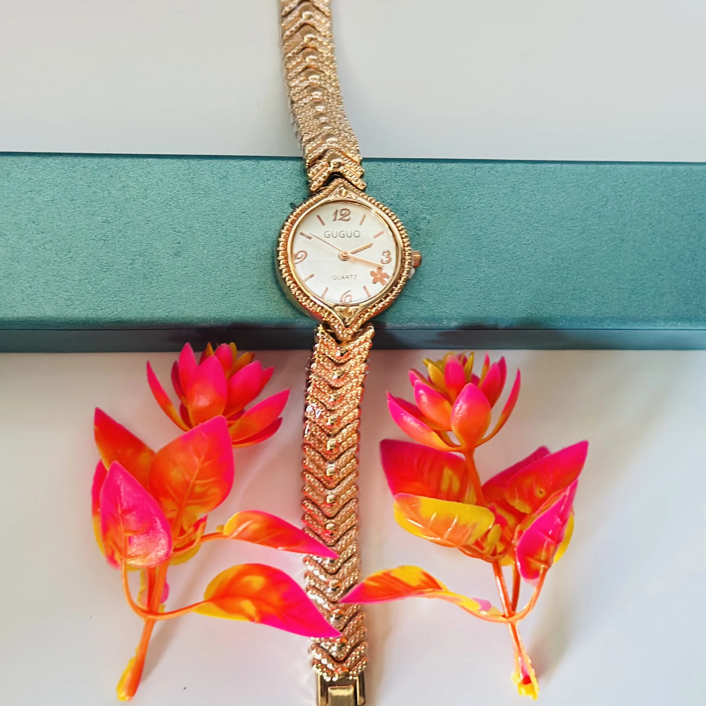👉 Theme :- Rose gold-tone alloy bracelet watch