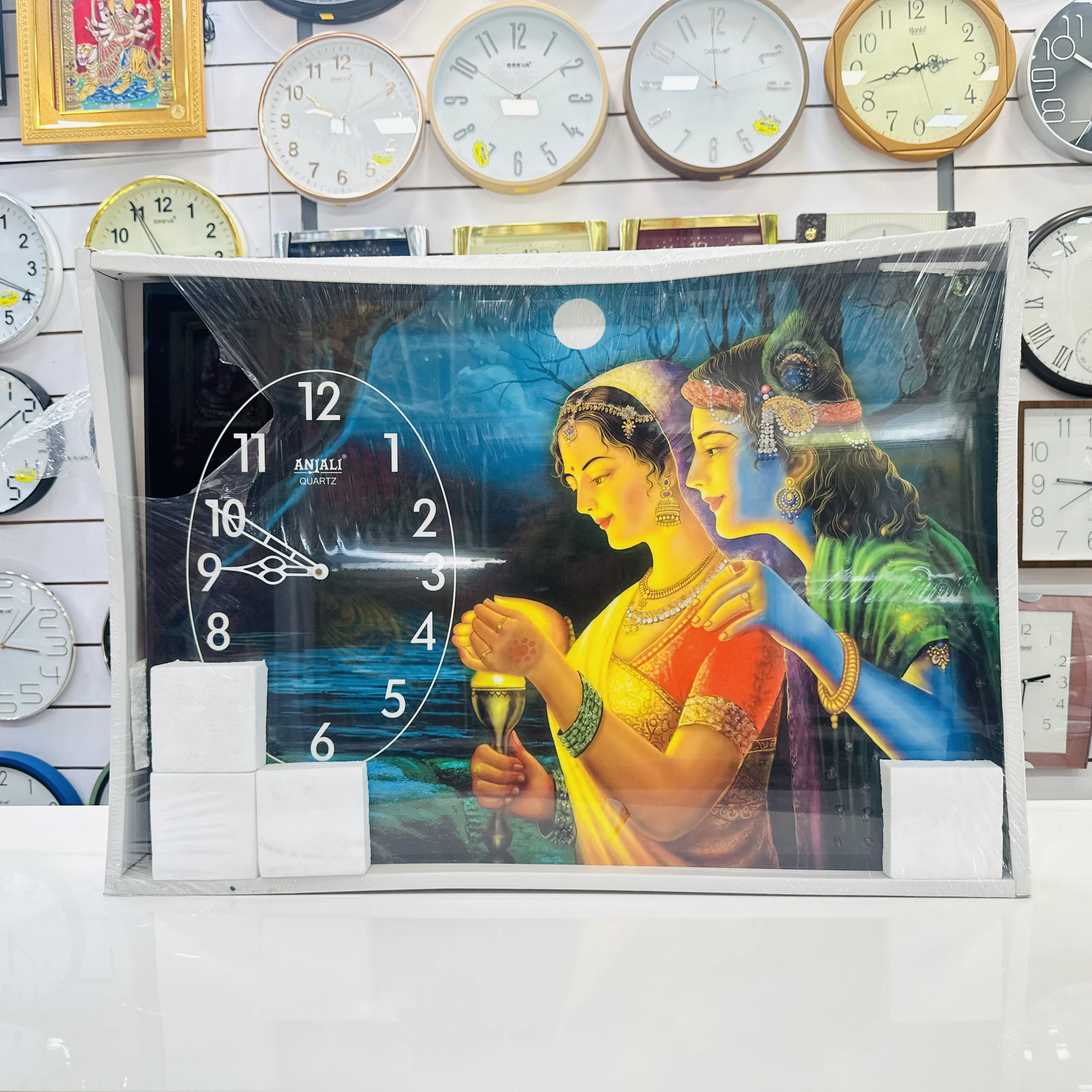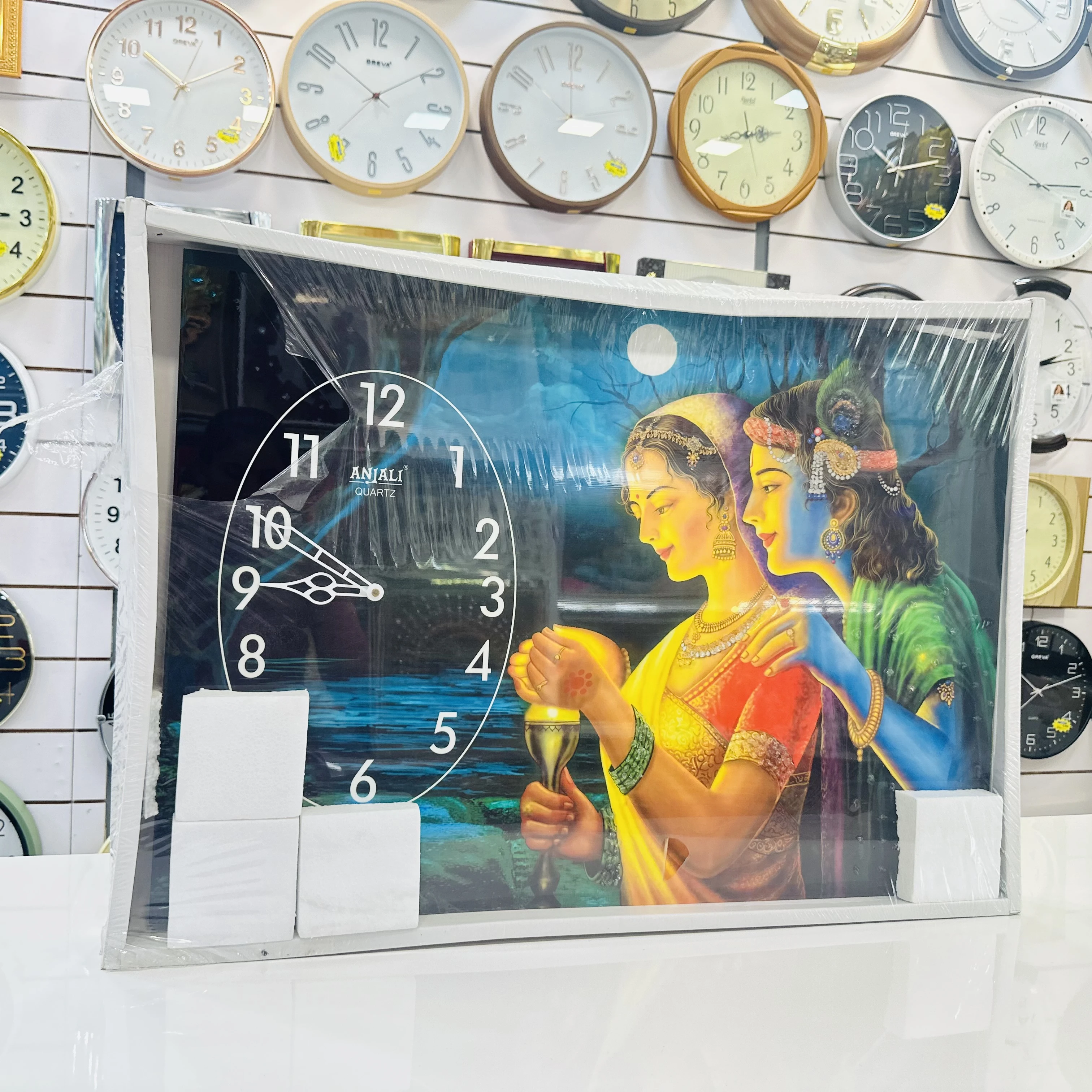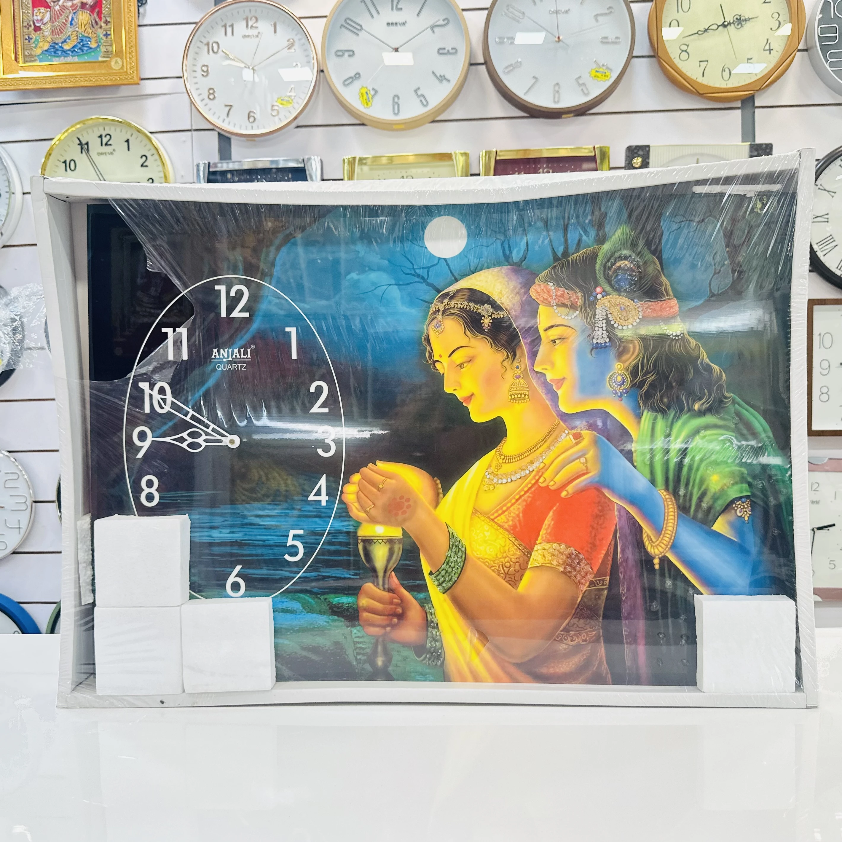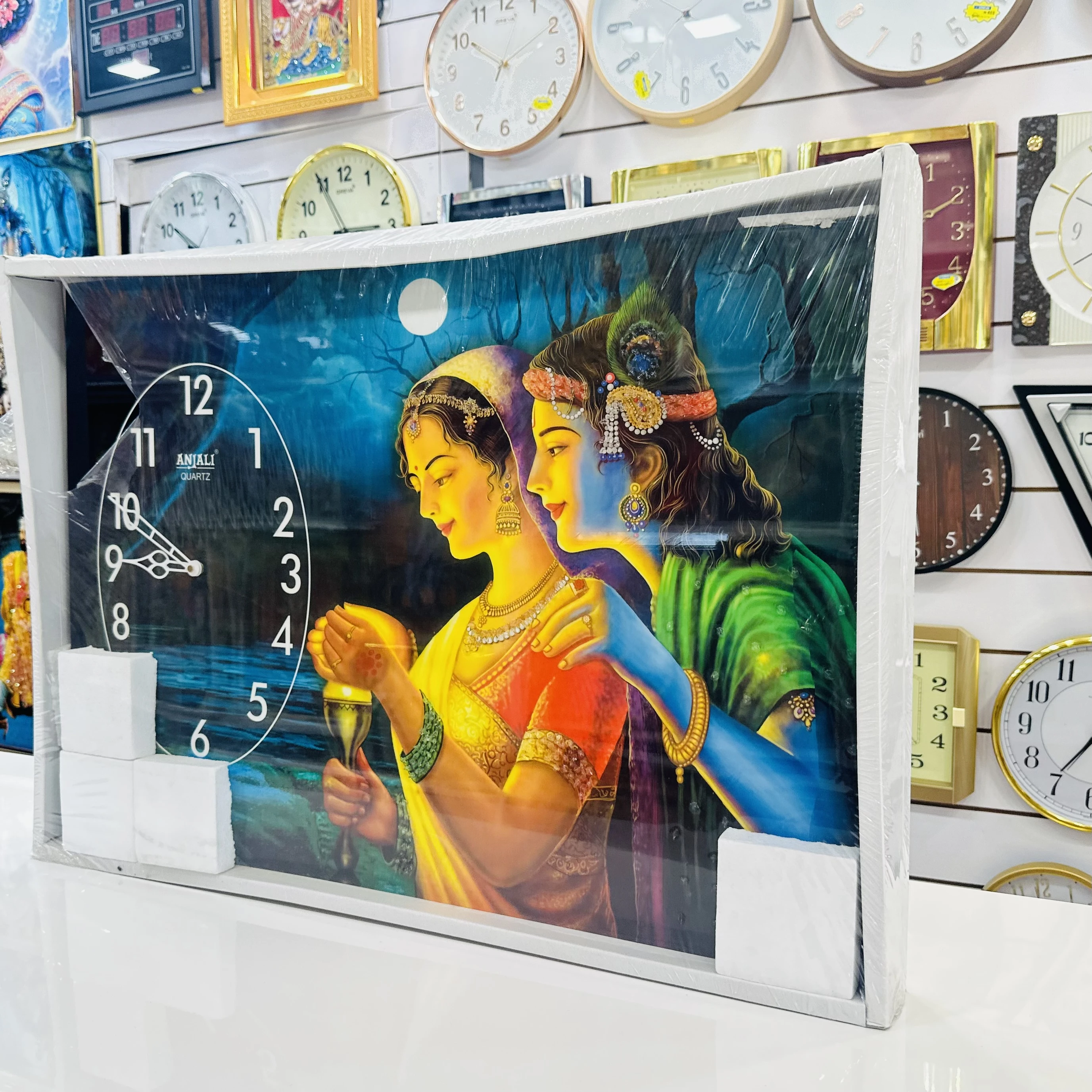 👉 Theme :- Radhe Krishna-themed wall clock.