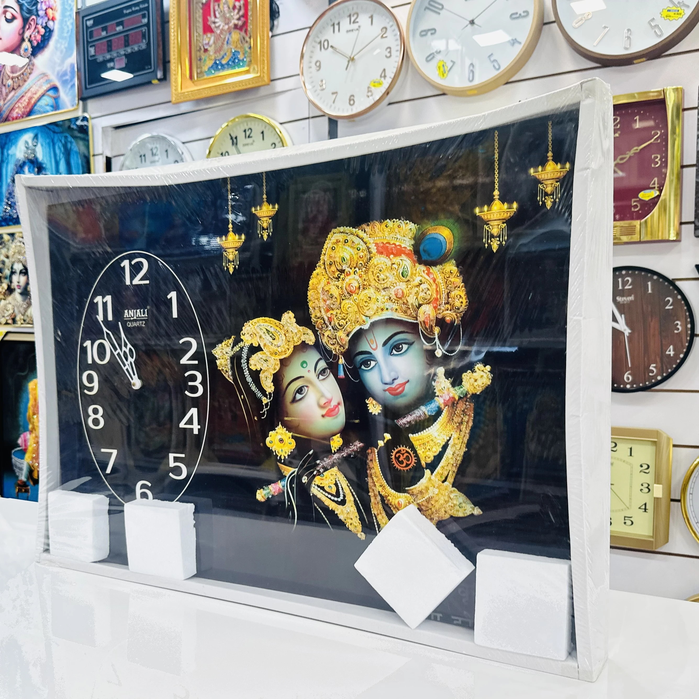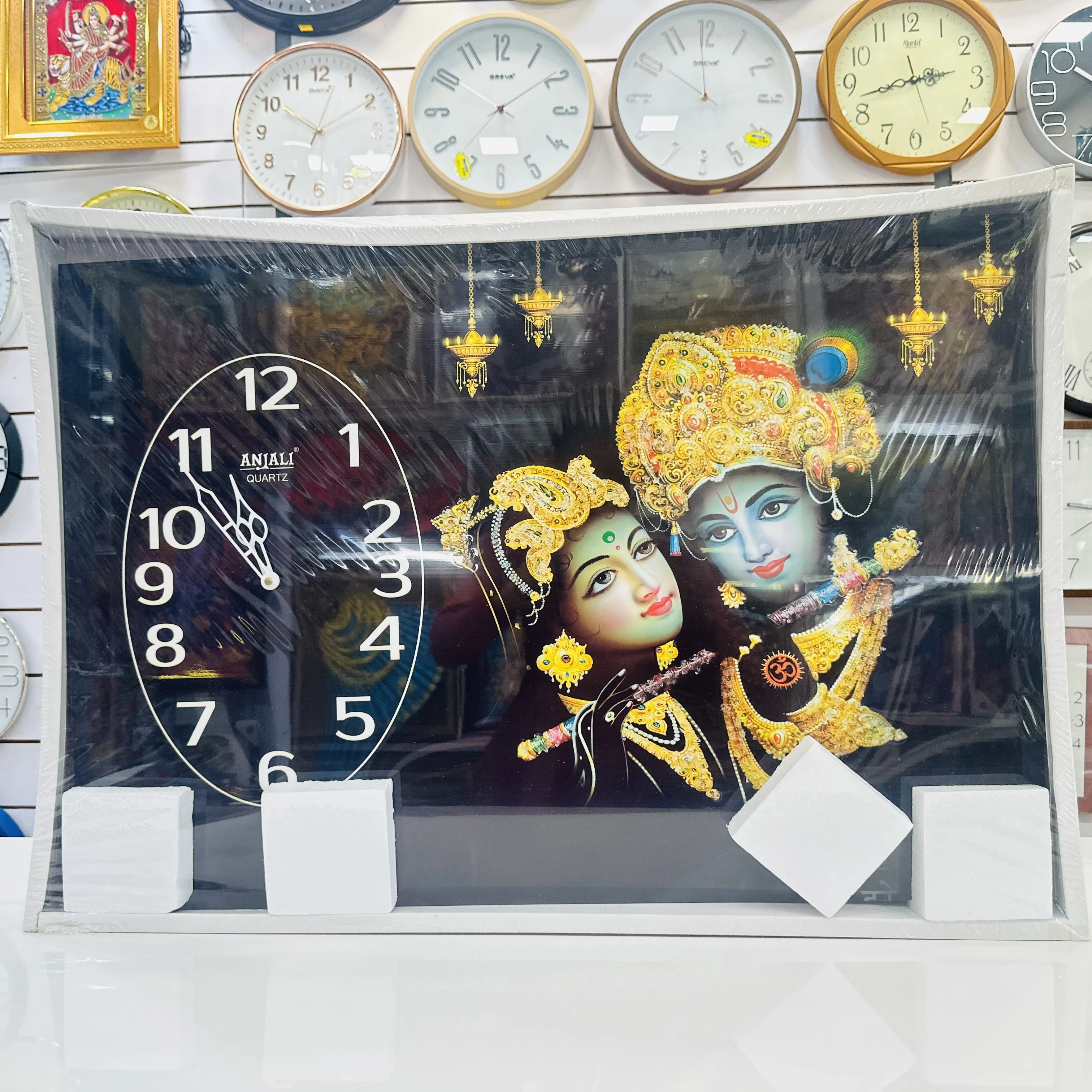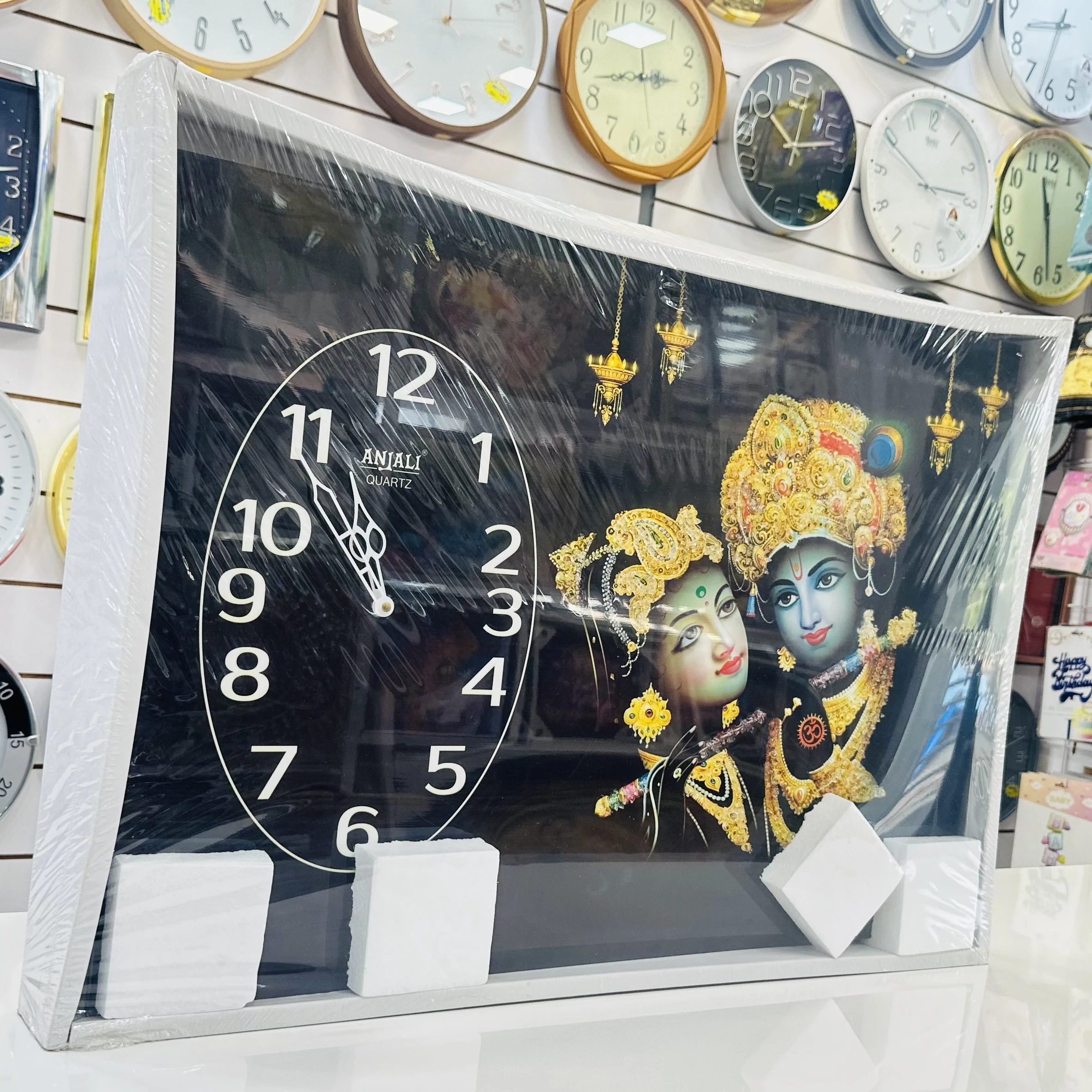 👉 Theme :- Radhe Krishna-themed wall clock.