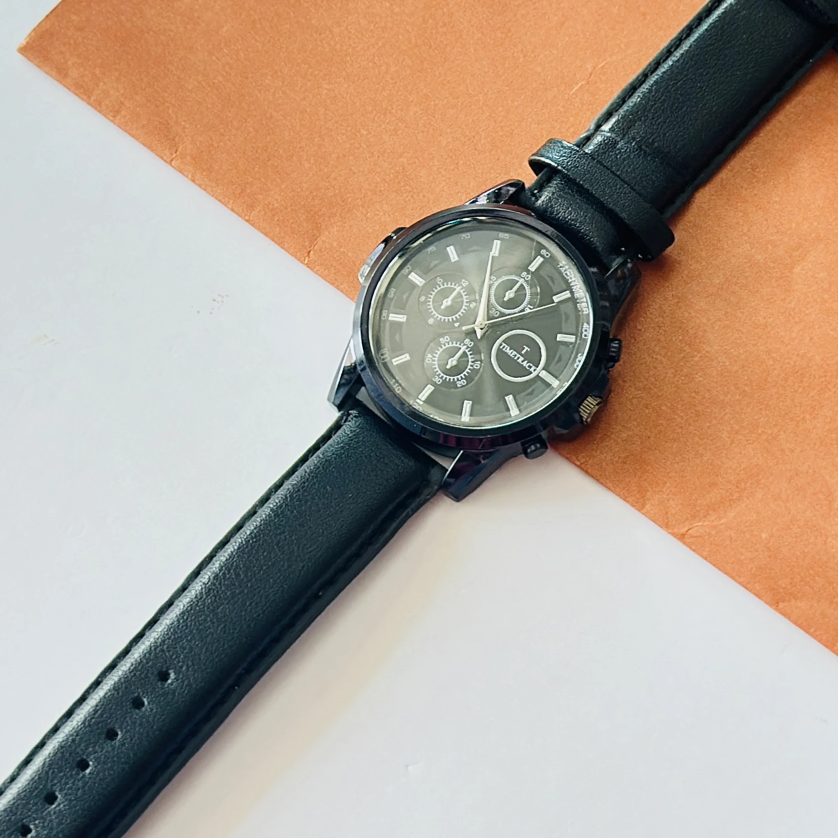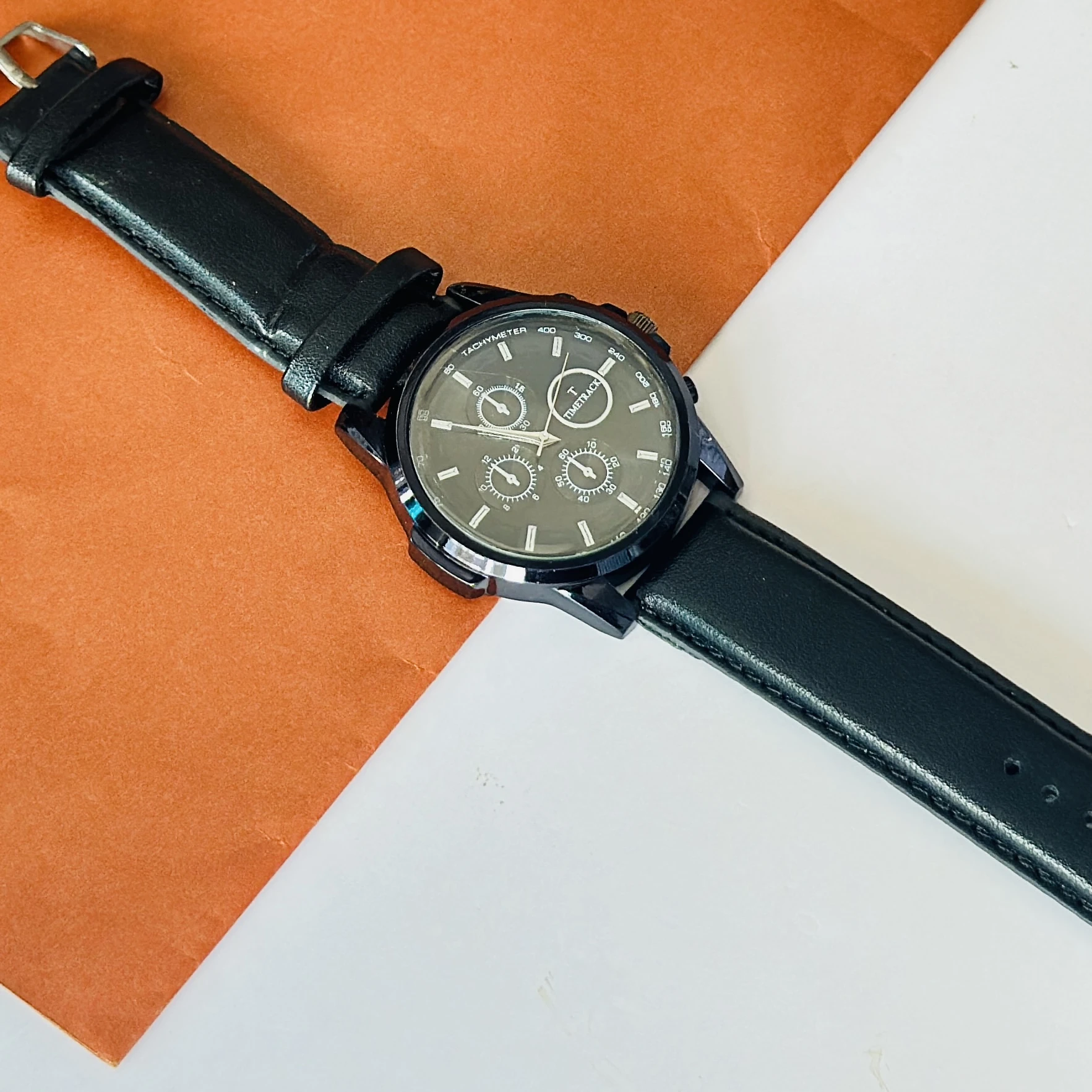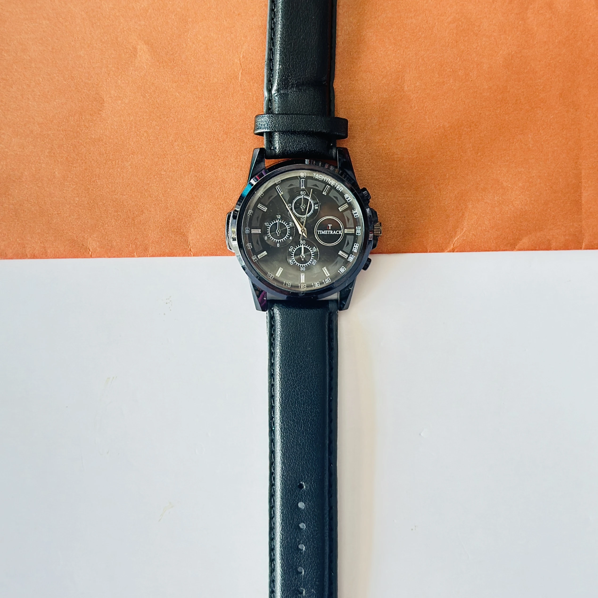 Relish designer black analog leather strap watch for men.