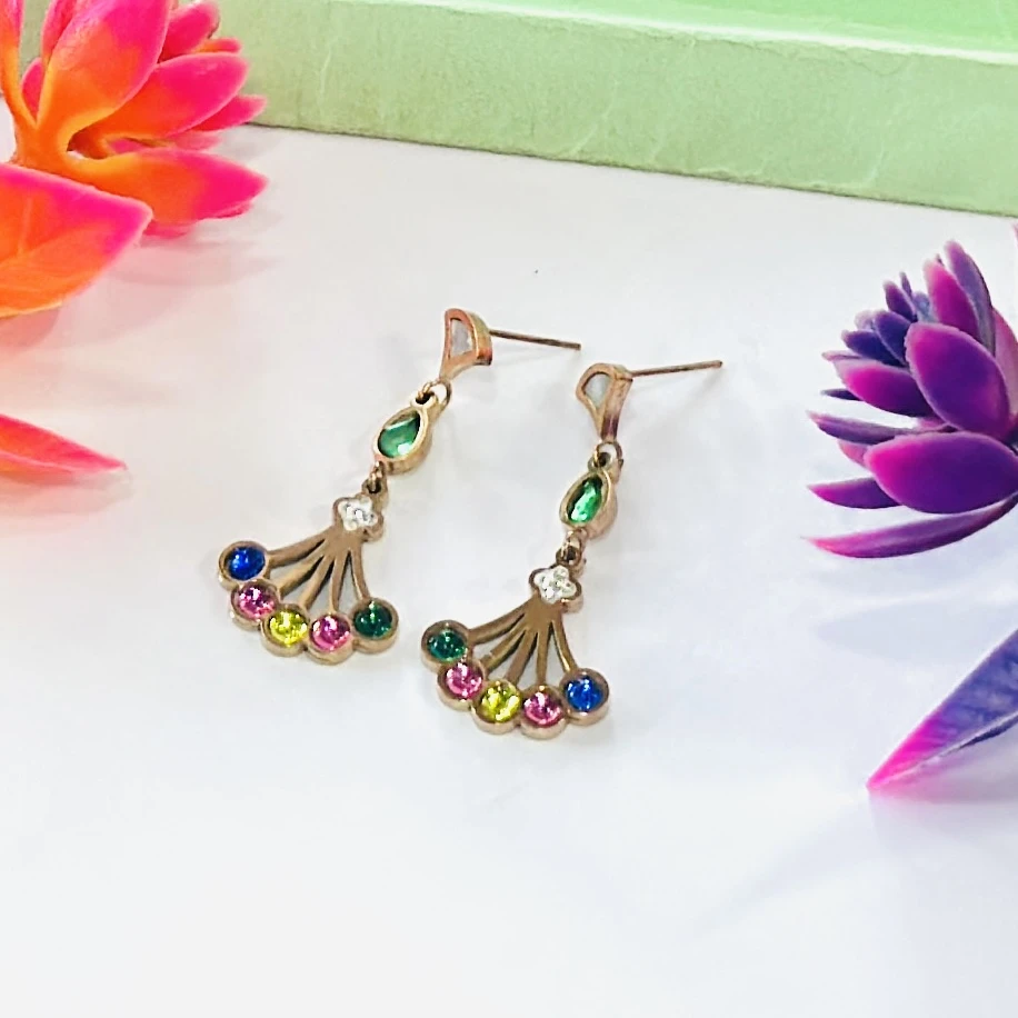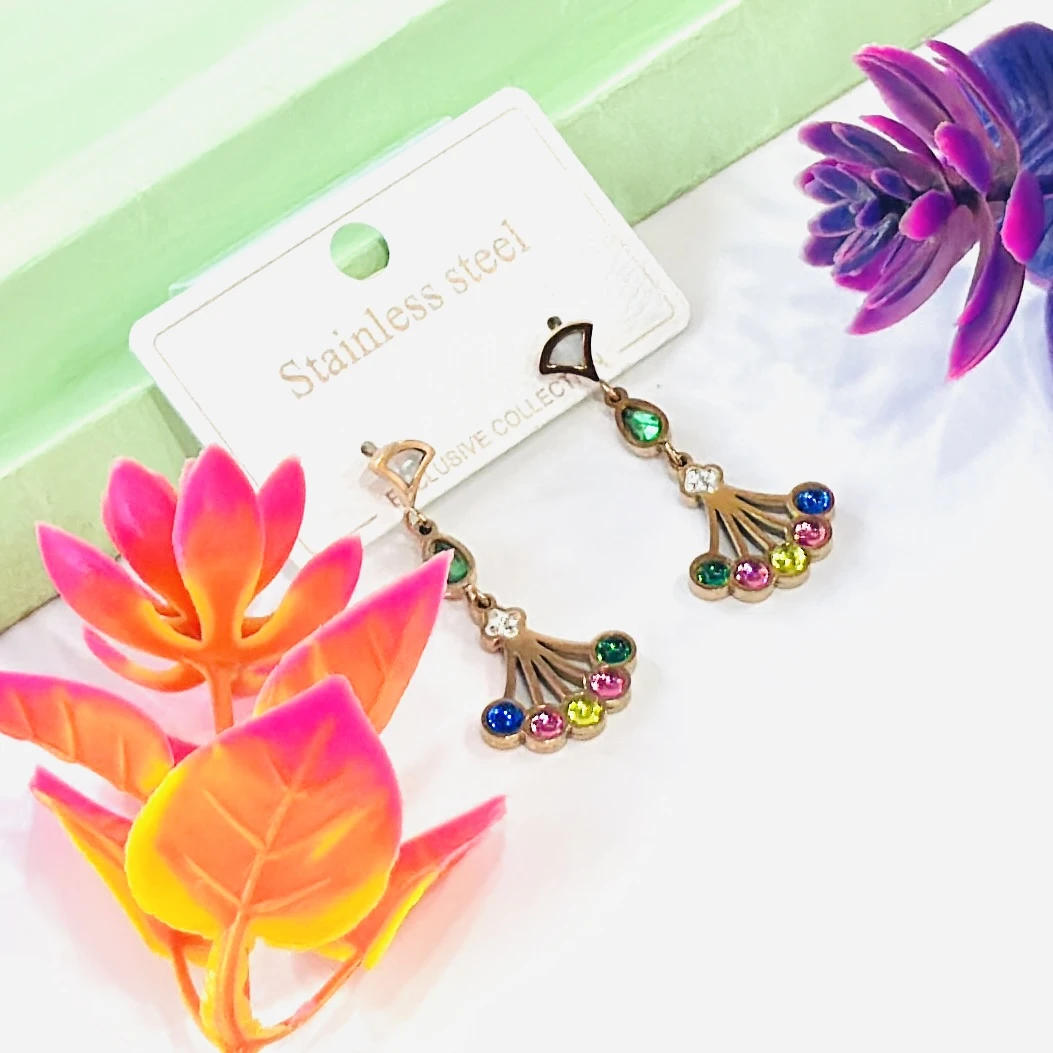 👉Theme :- Rose Gold Multi Stone Lollipop Dangle Earrings.