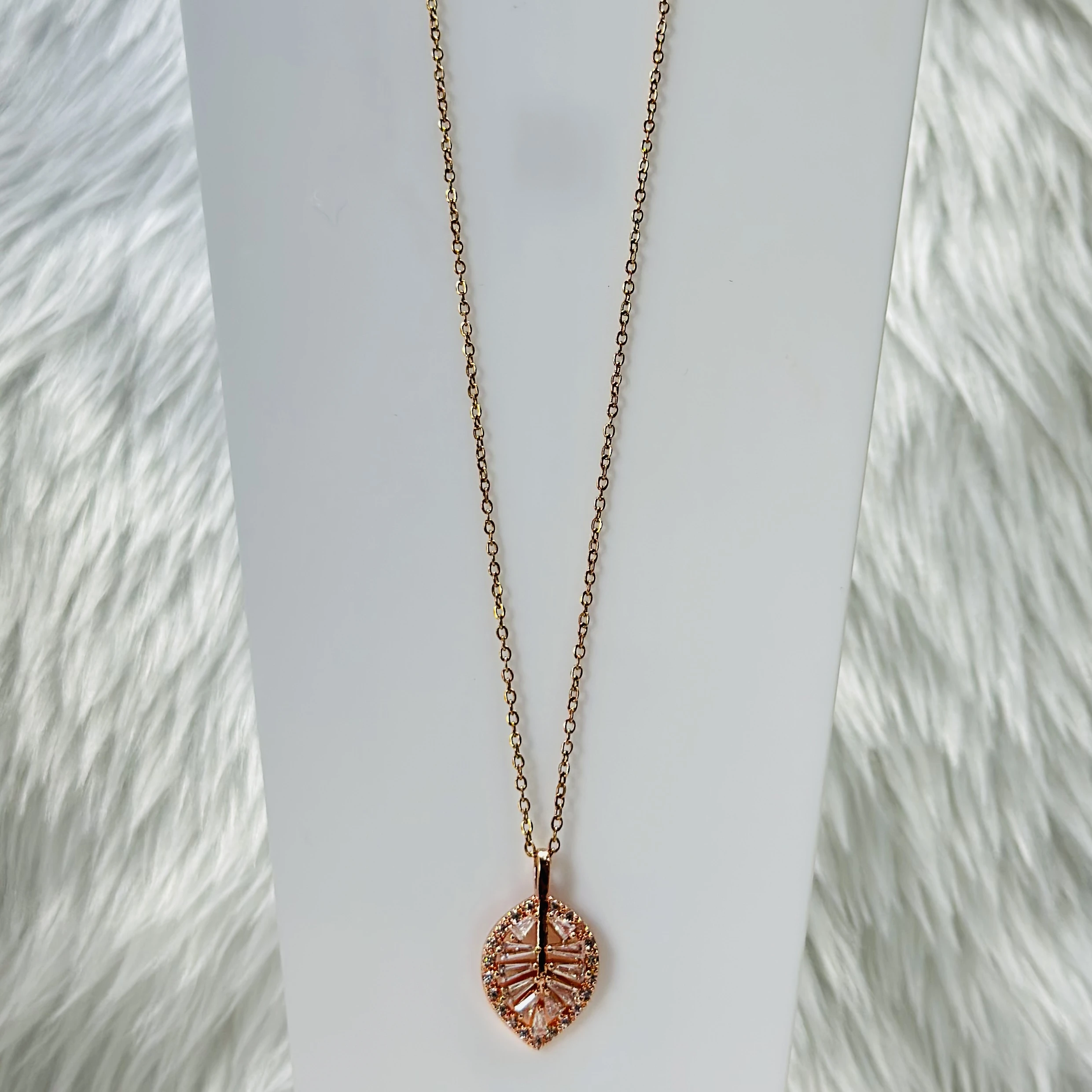 👉Theme :- Rose gold palm leaf necklace with diamond accents, crafted from stainless steel.