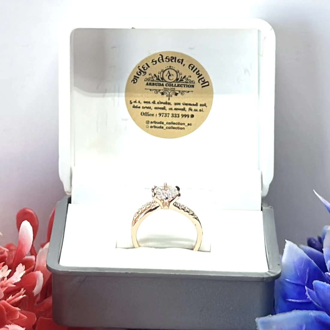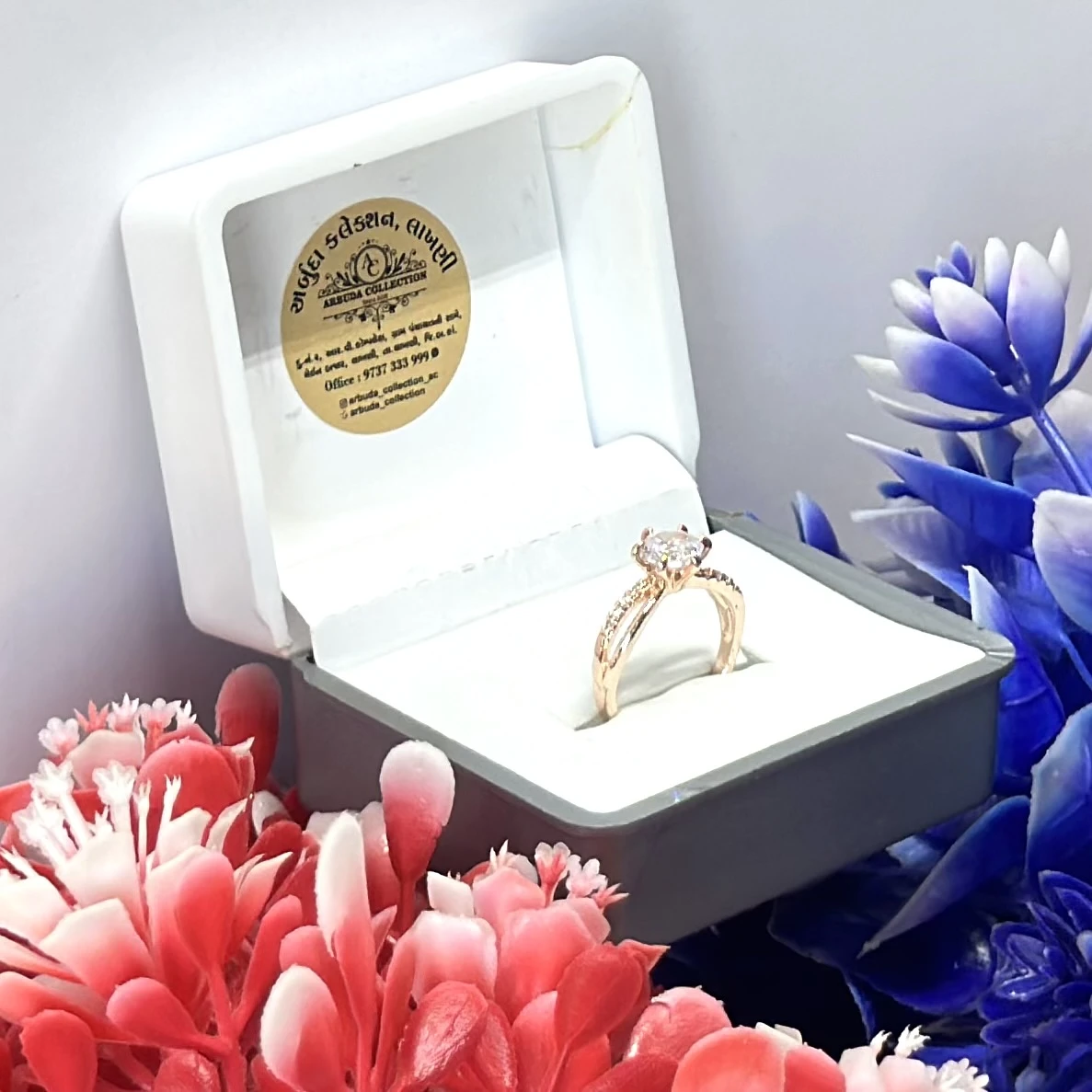 Rose gold-plated American diamond finger ring.