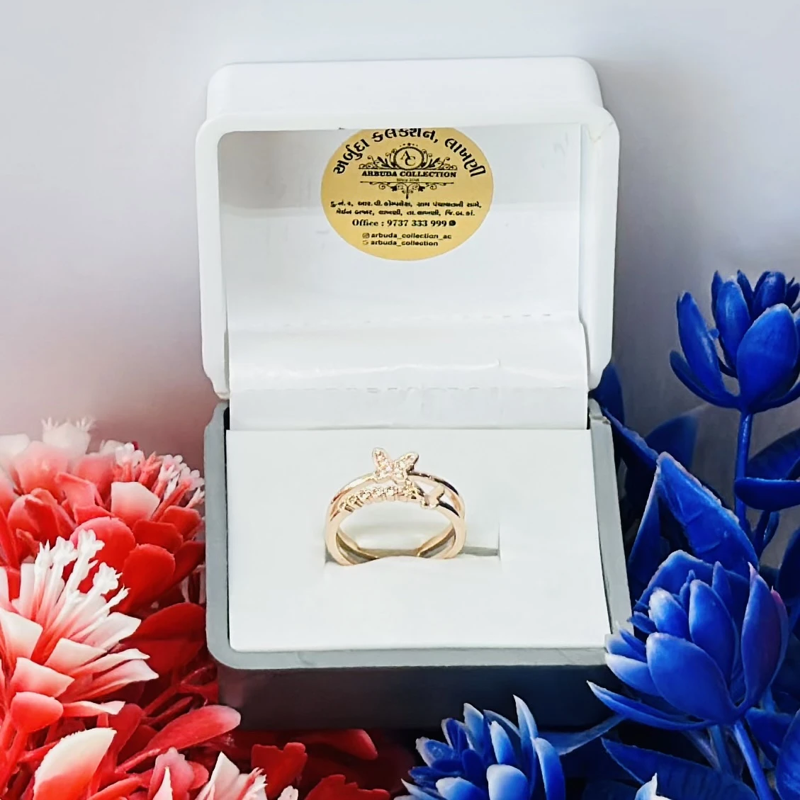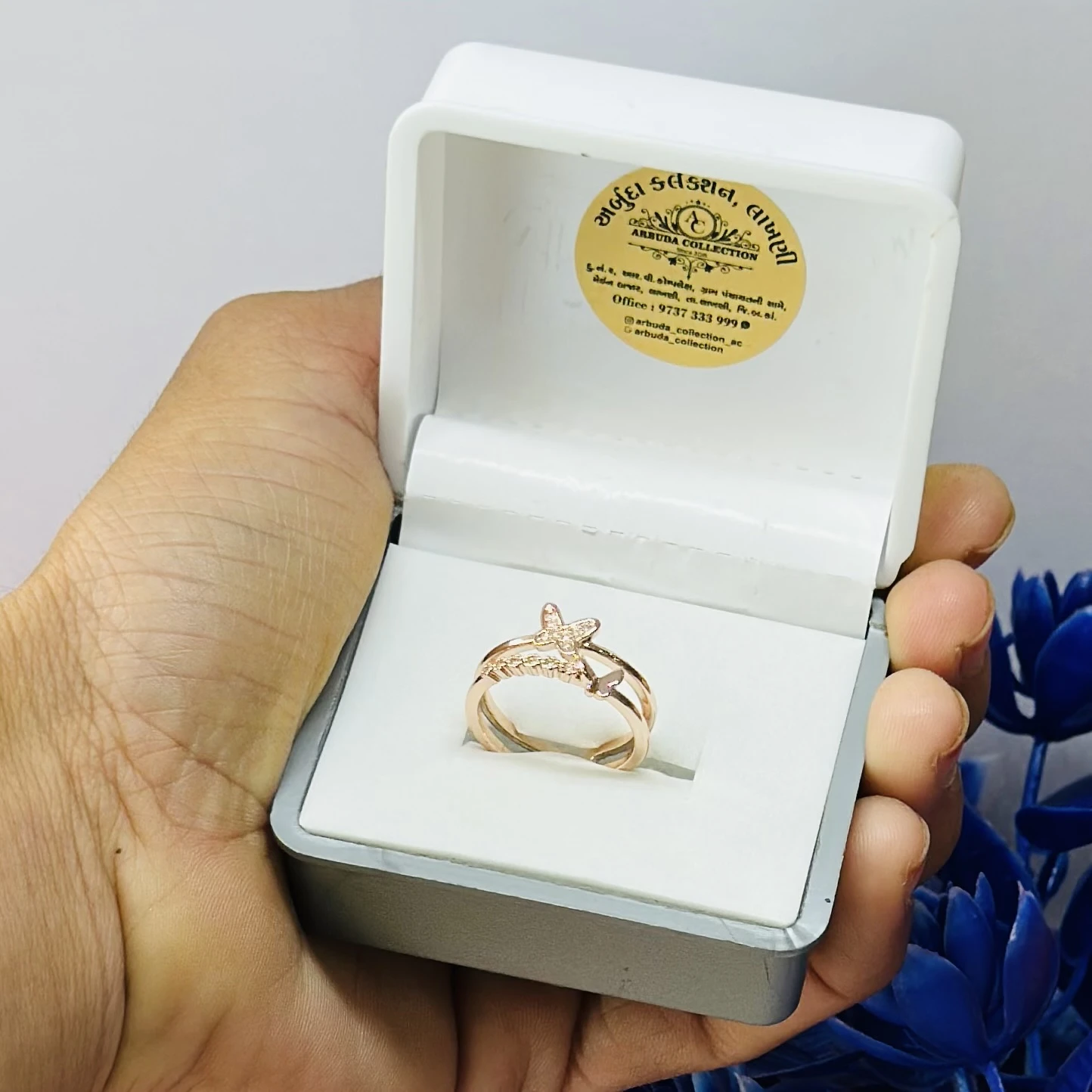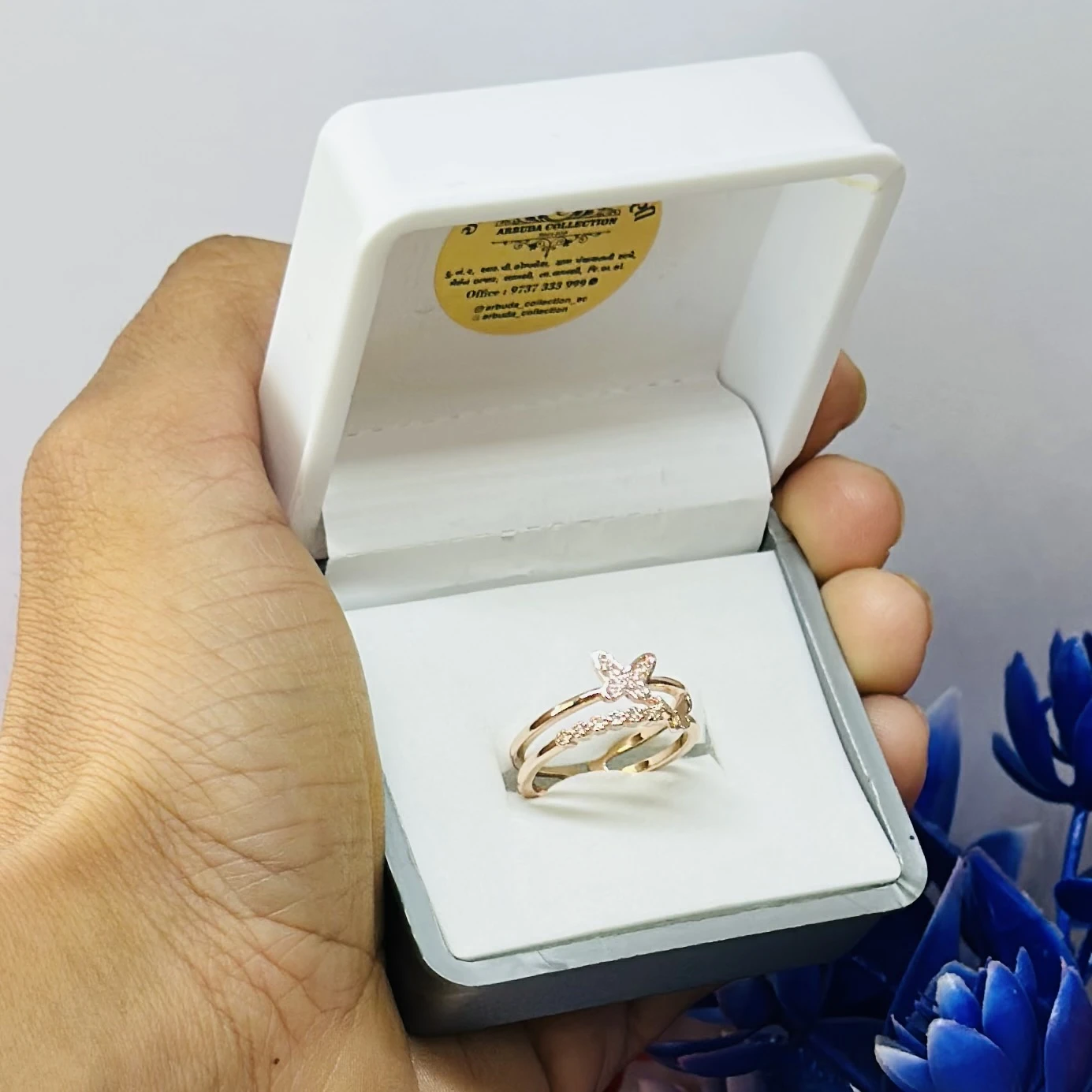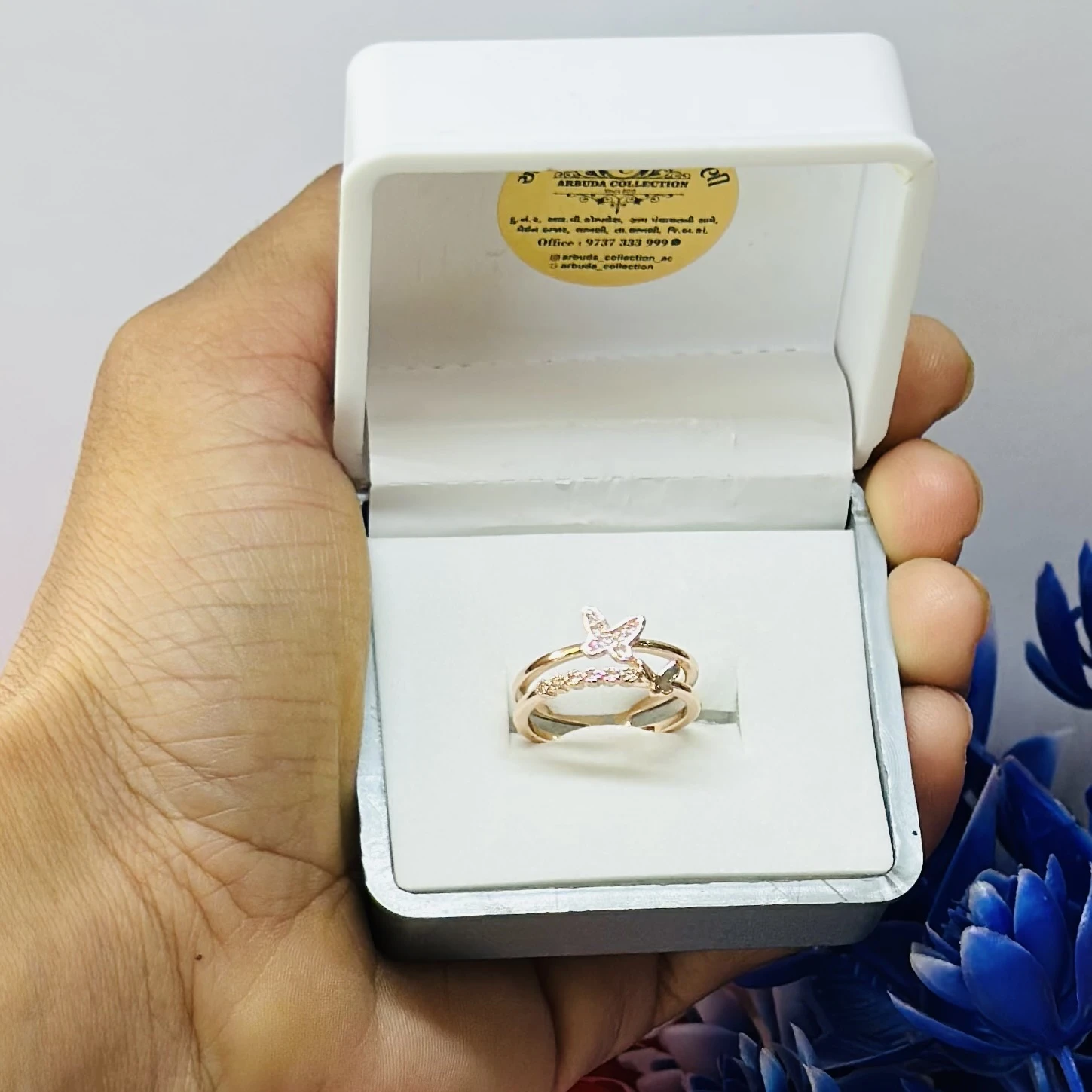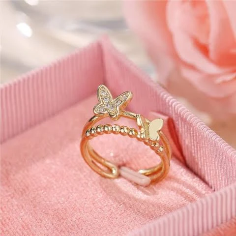 👉 Theme :- Rose gold plated cubic zirconia butterfly double band ring.