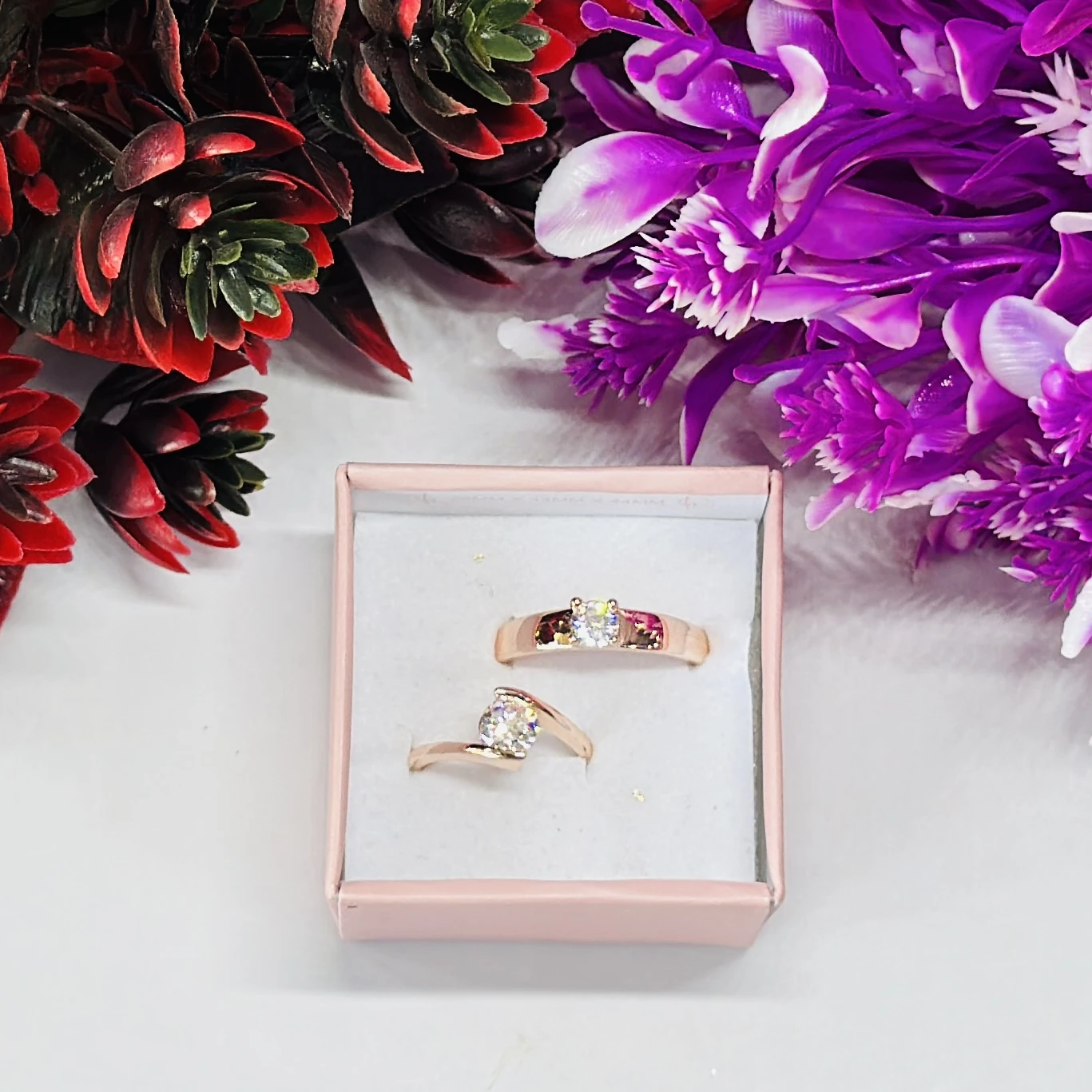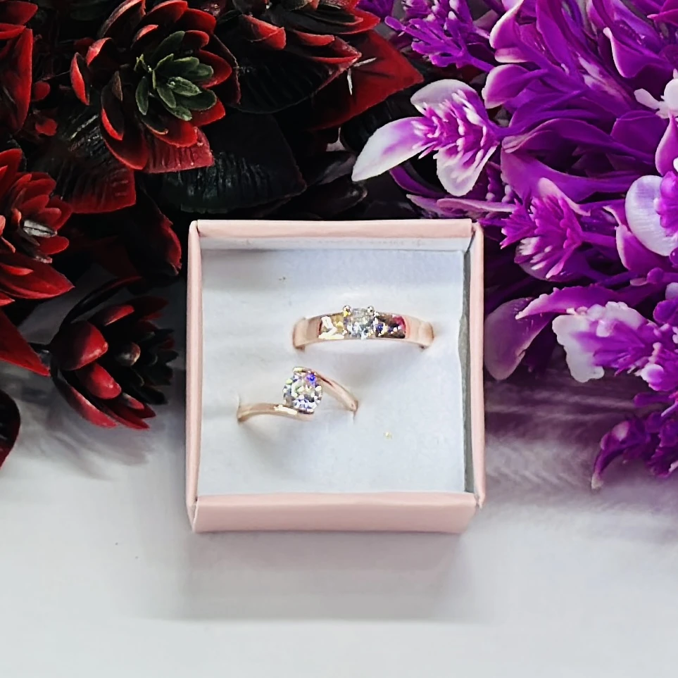 👉 Theme :- Rose gold-plated cubic zirconia couple rings.