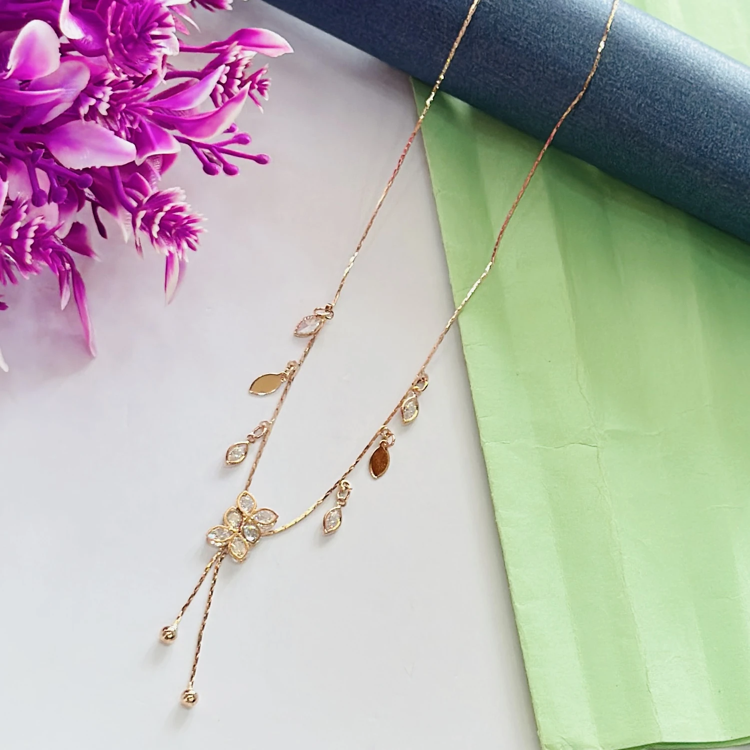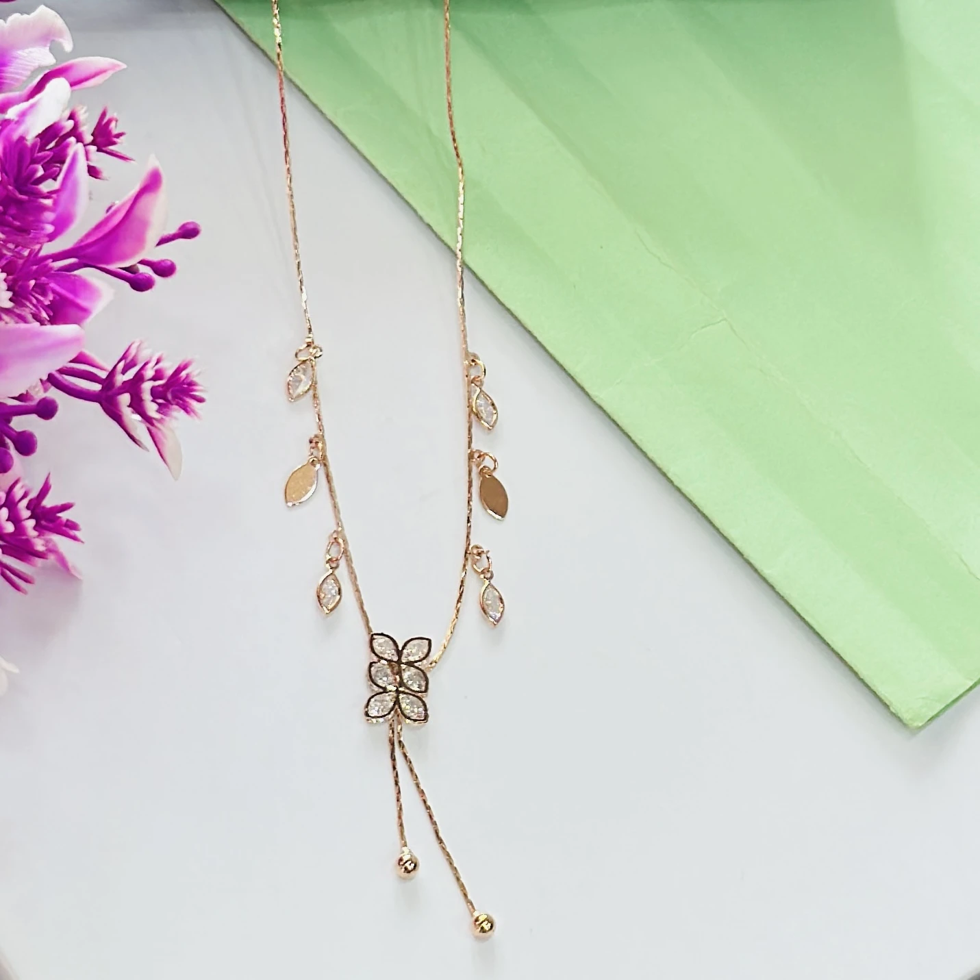 👉Theme :-  Rose gold-plated floral drop pendant