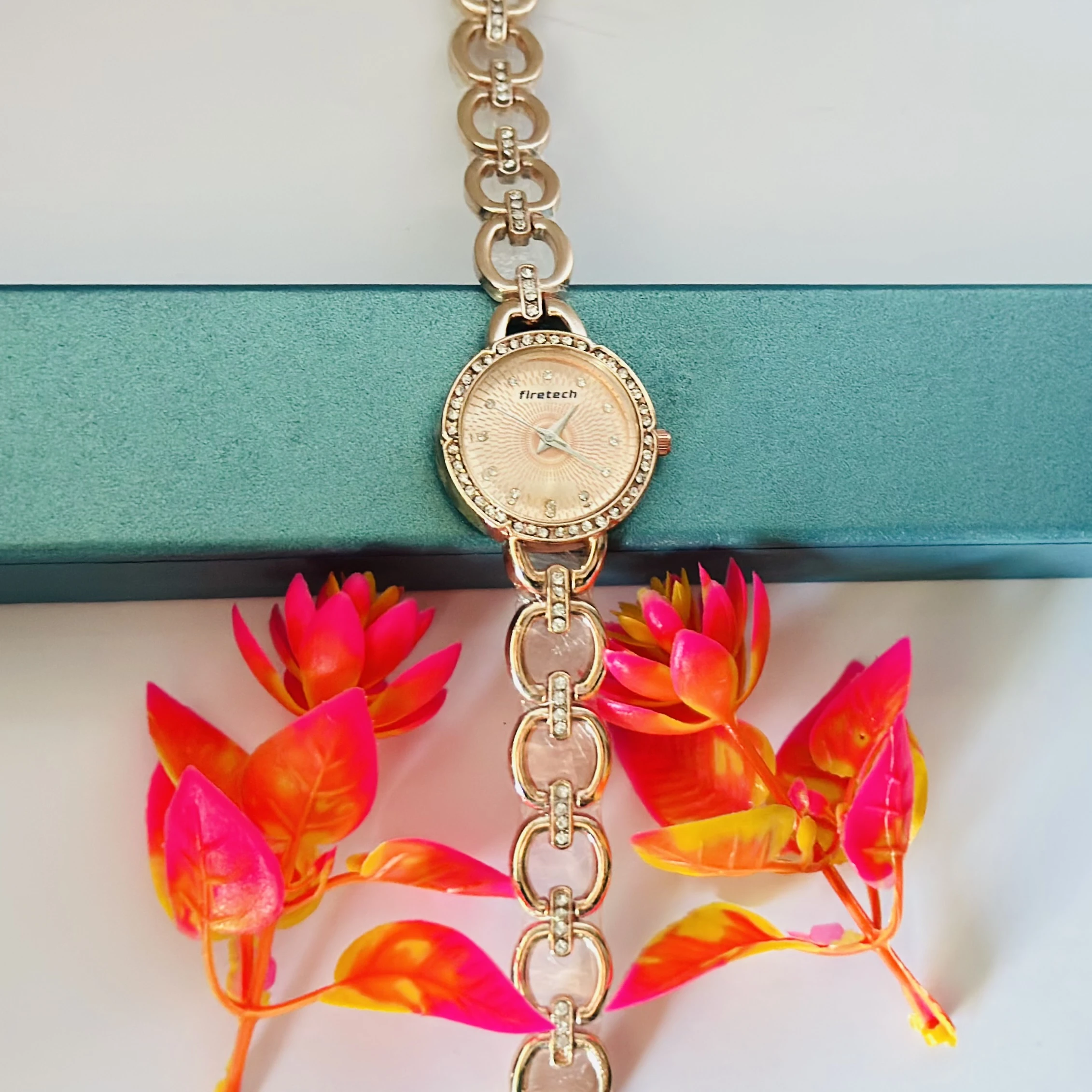 👉 Theme :- Rose gold-tone alloy bracelet watch