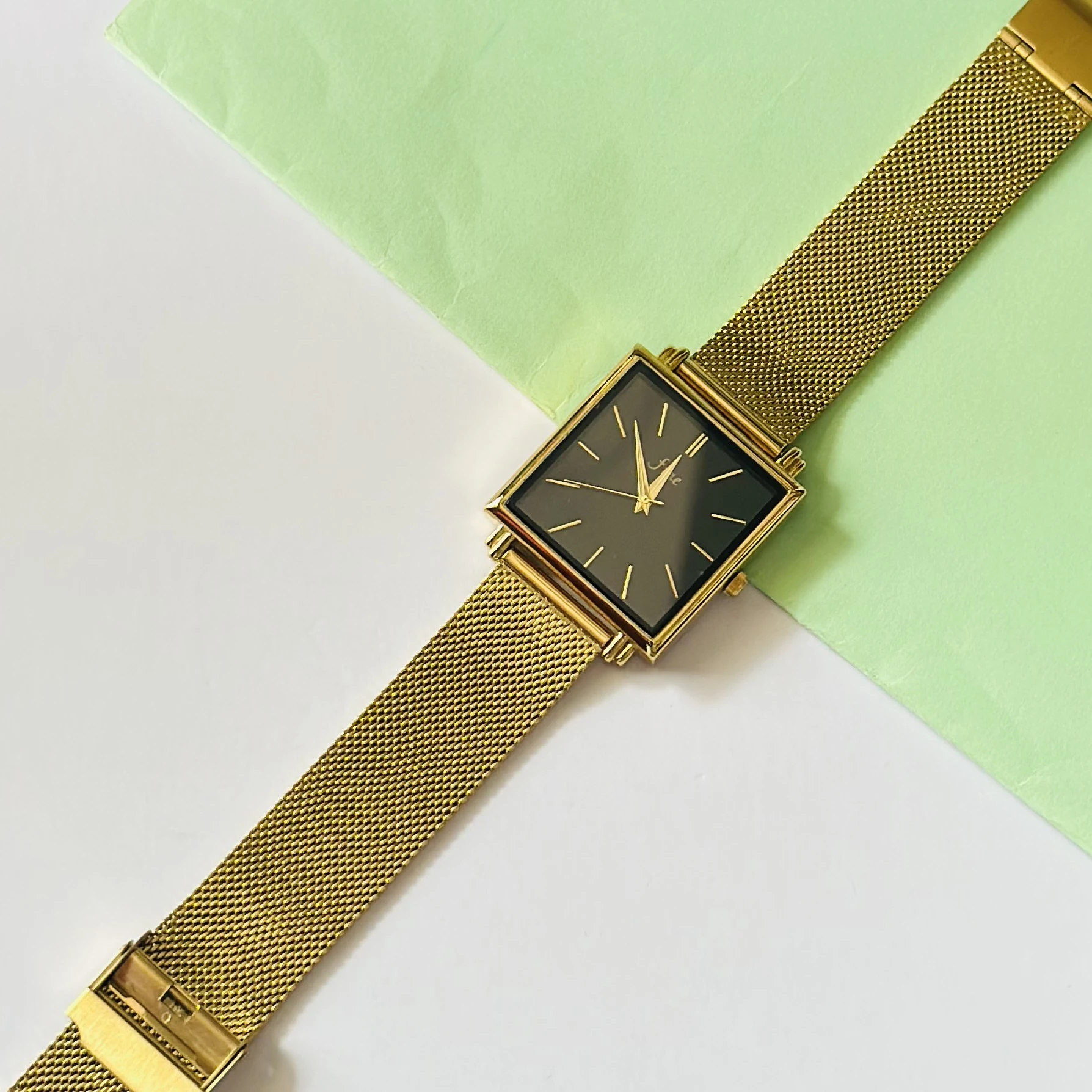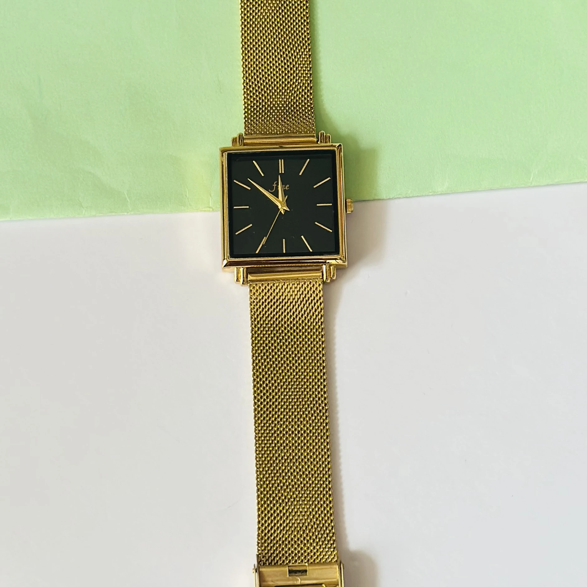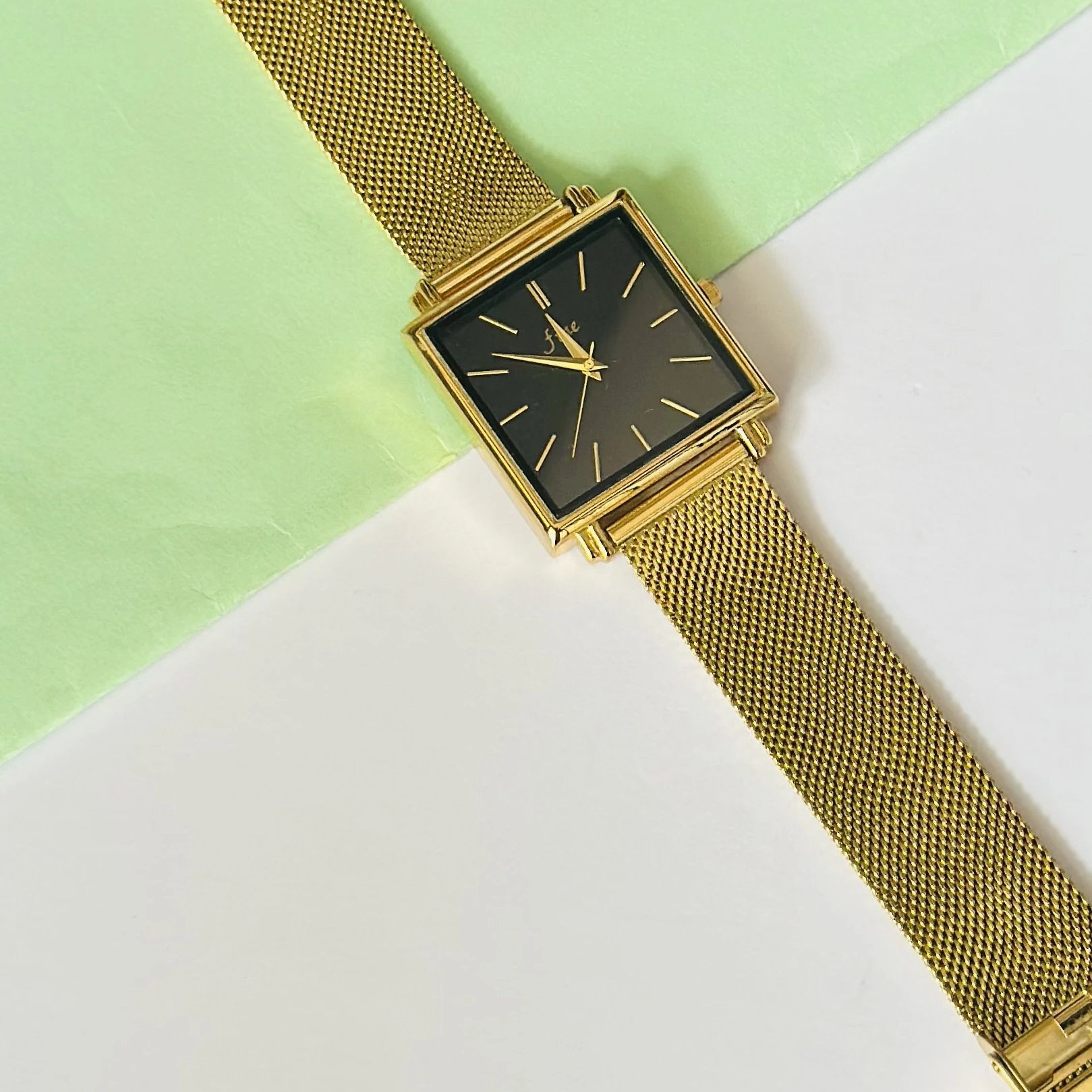 👉 Theme :- Rosefield The Boxy gold watch with a black dial.