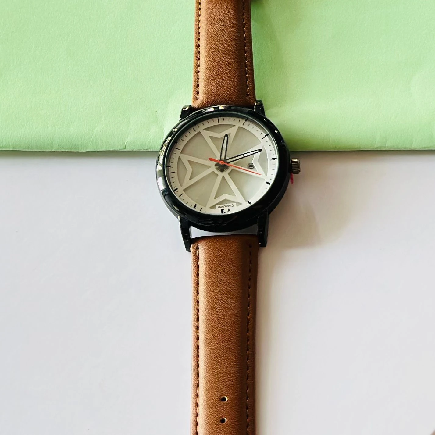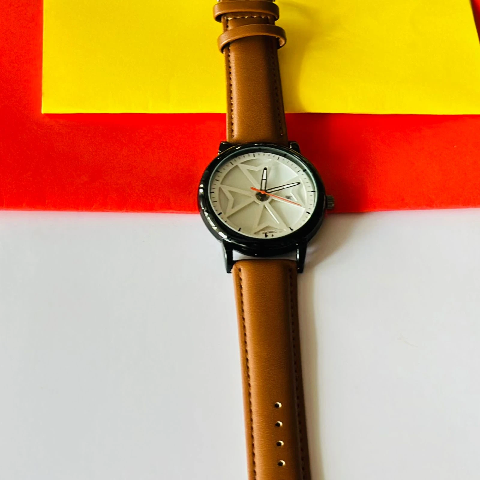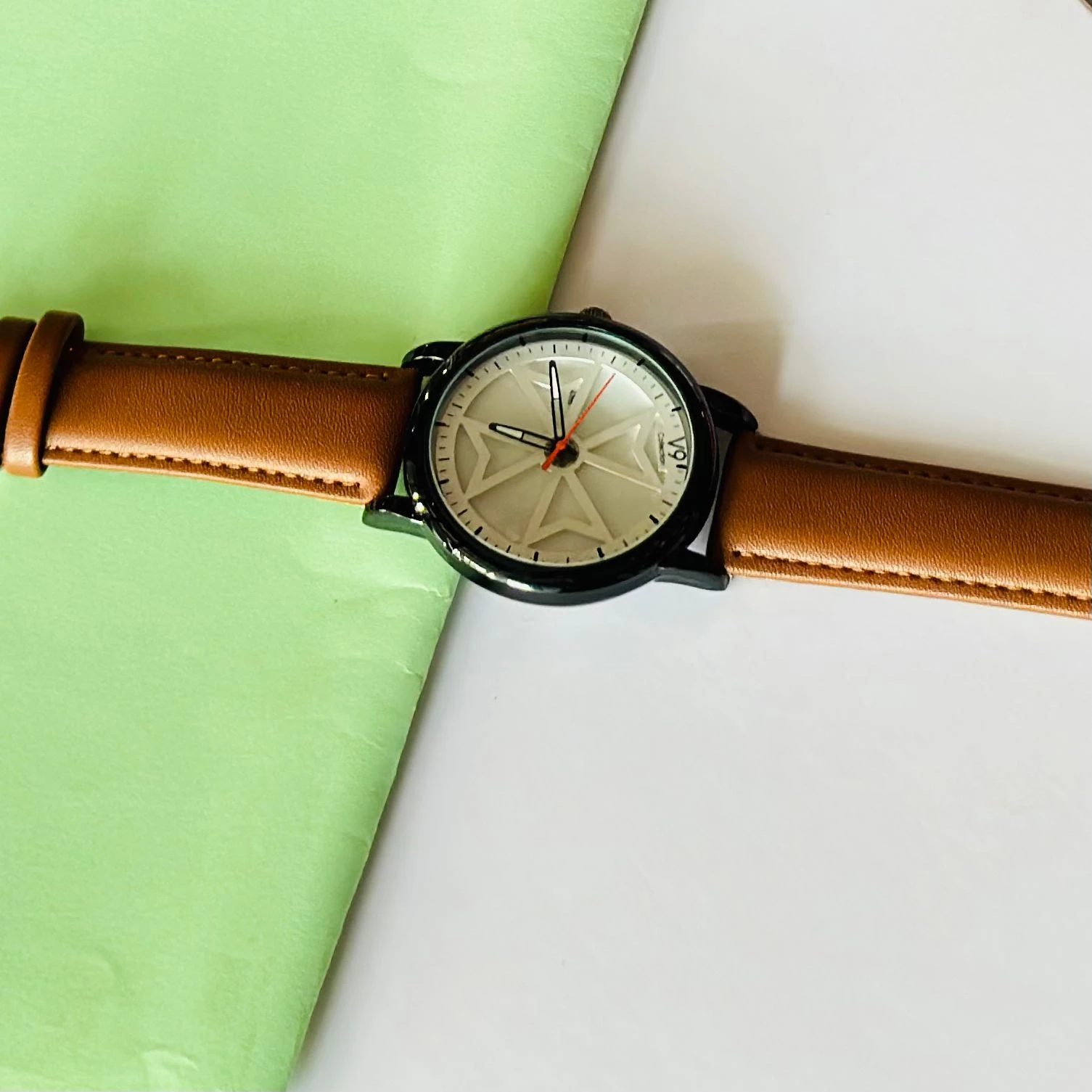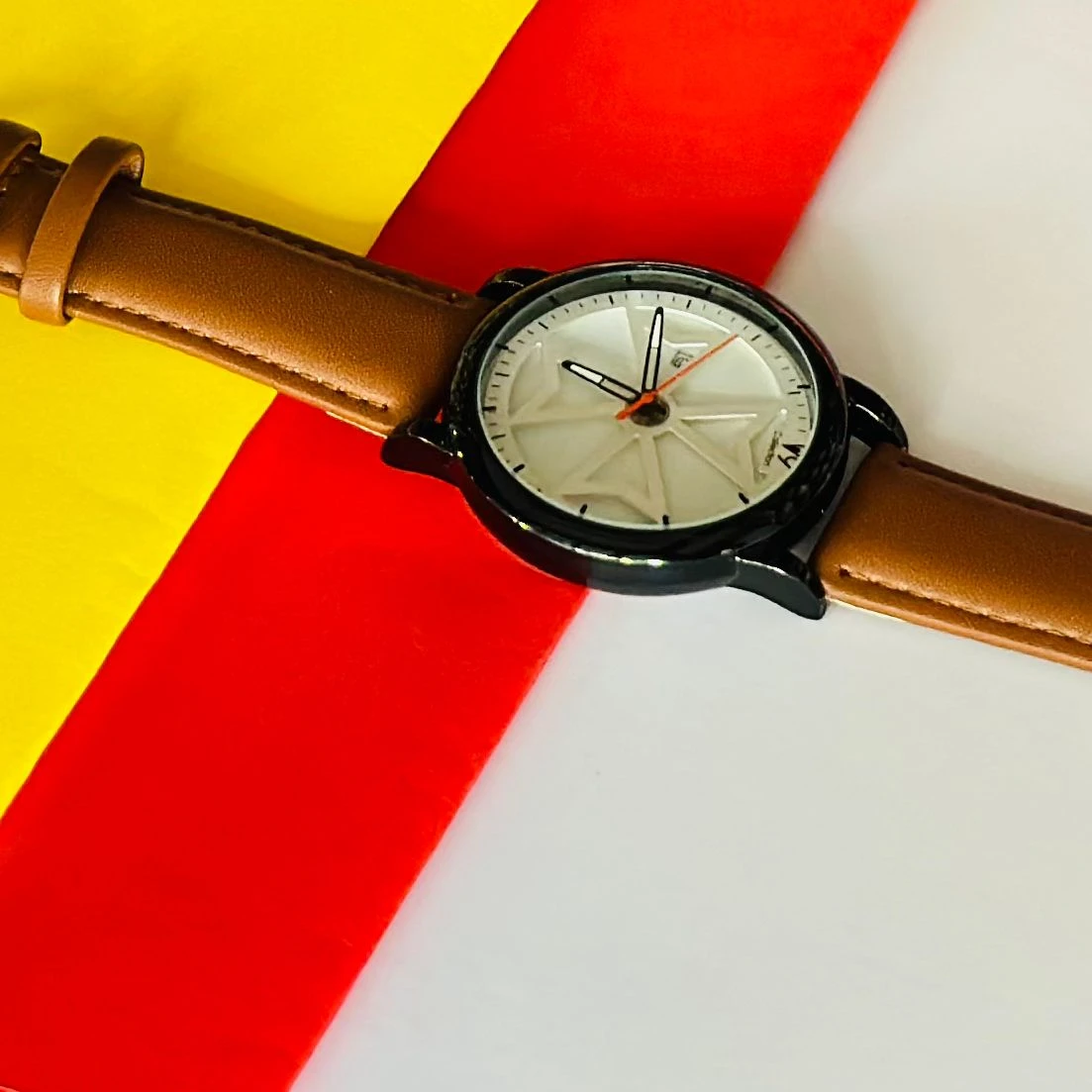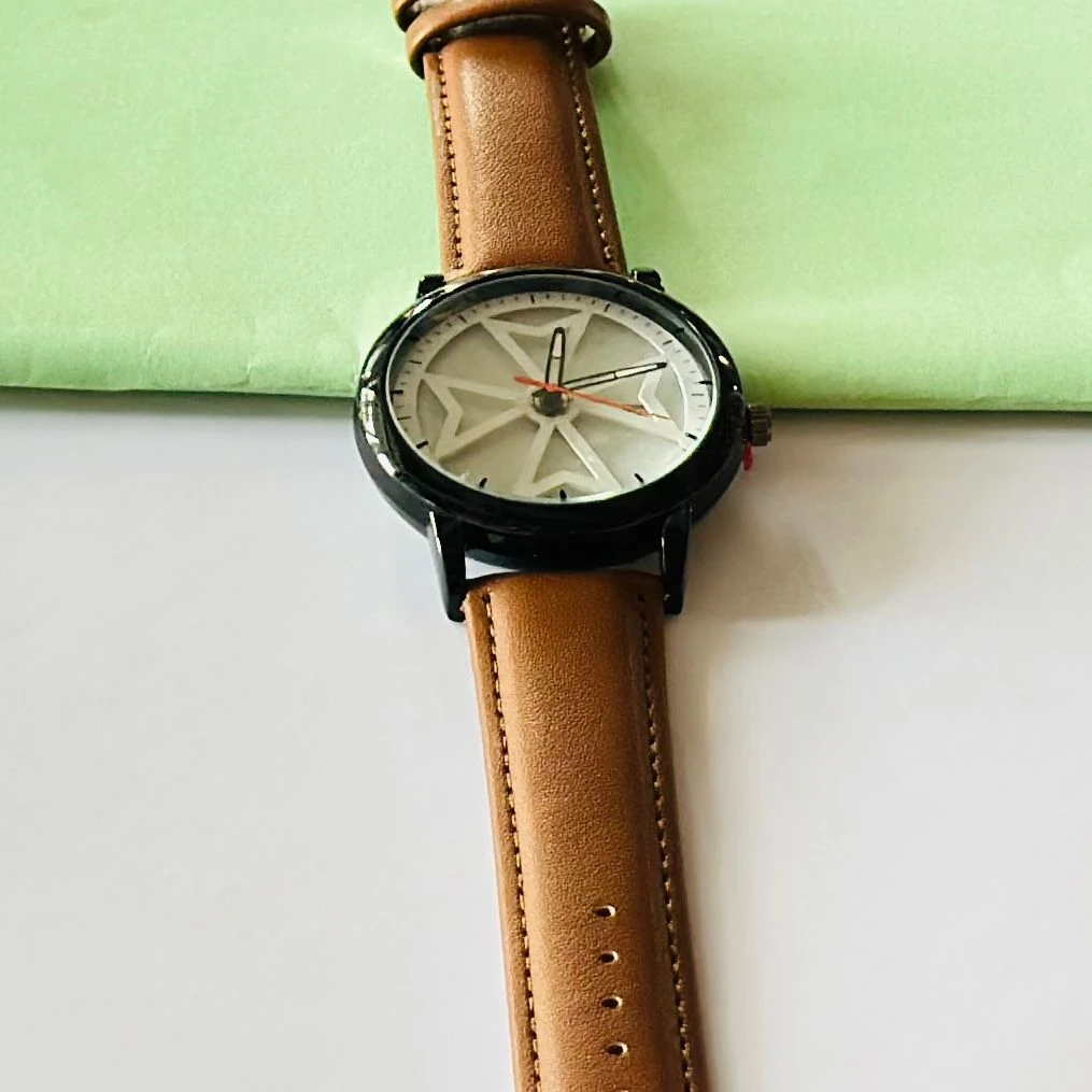 👉 Theme :- Round analog watch with a brown leather strap