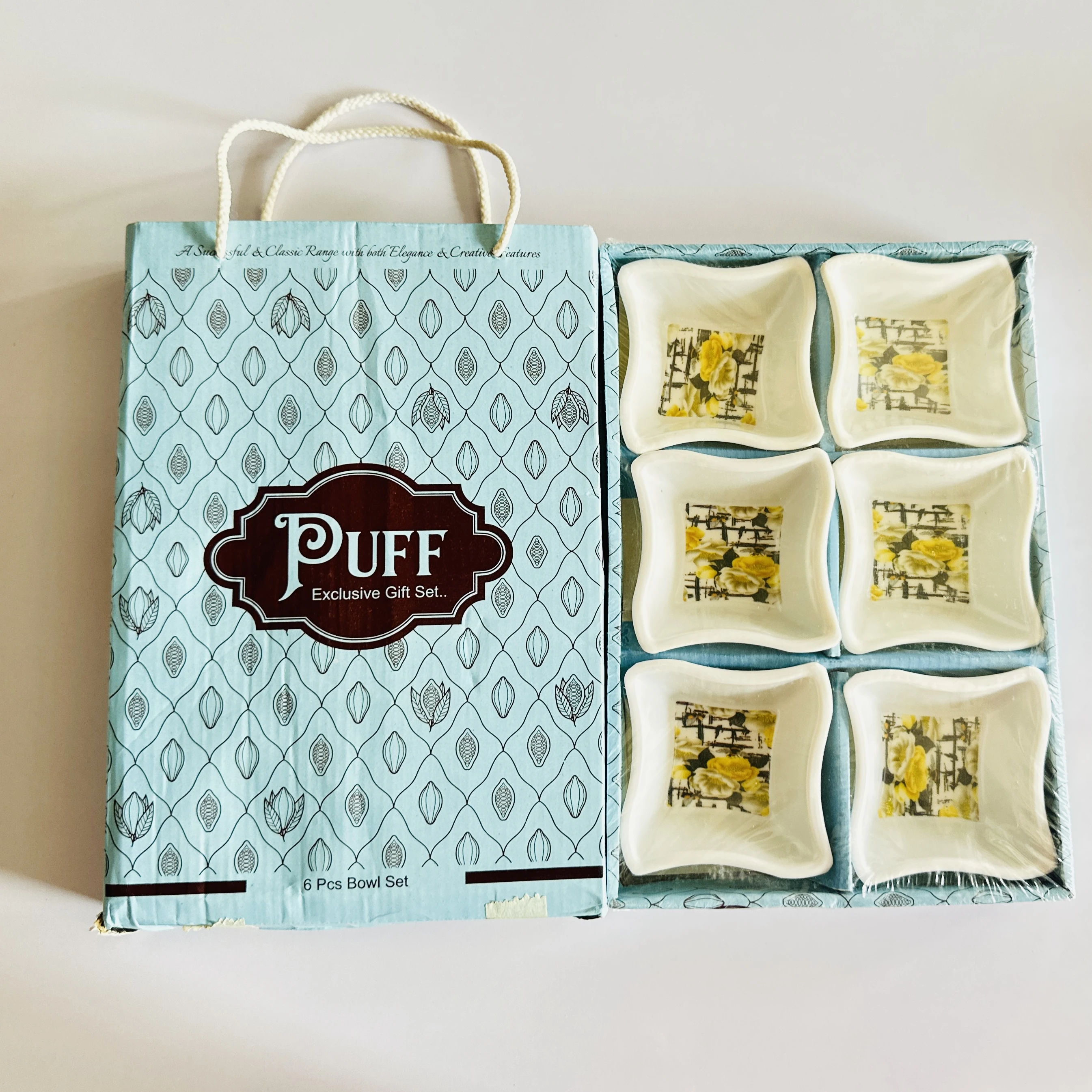 👉 Theme :- Puff Exclusive Gift Set features a 6-piece ceramic bowl set