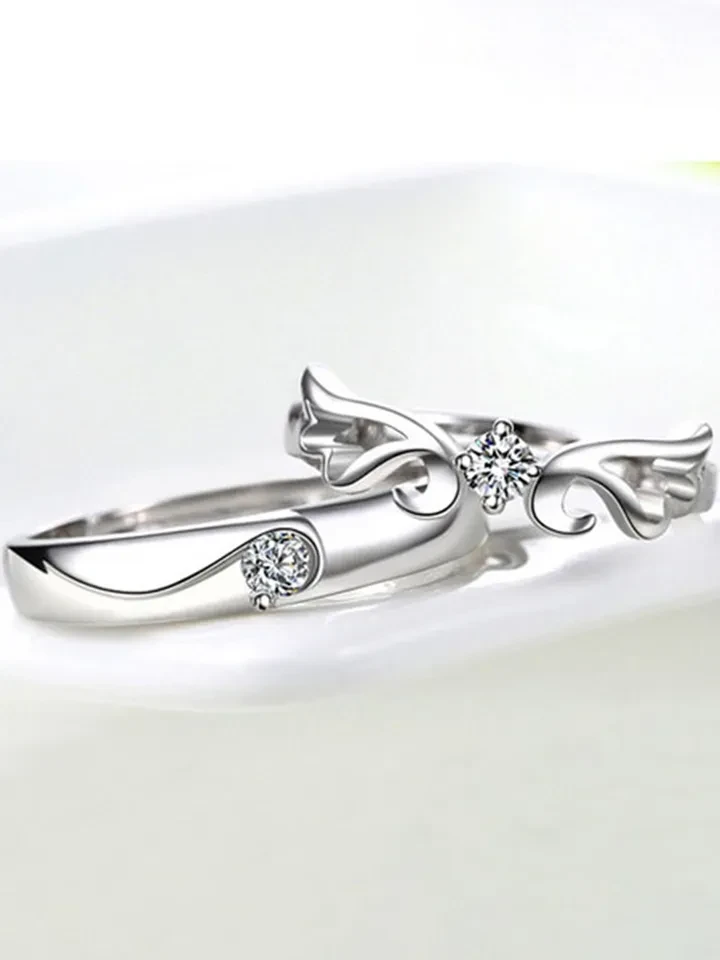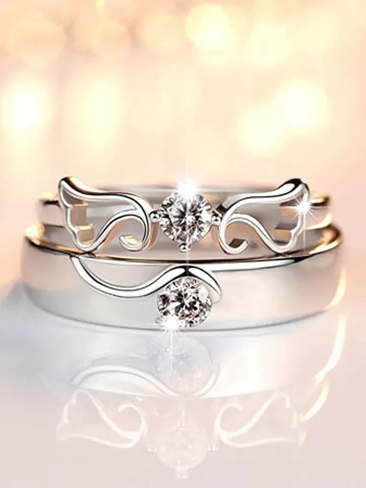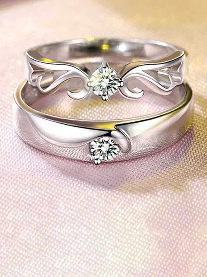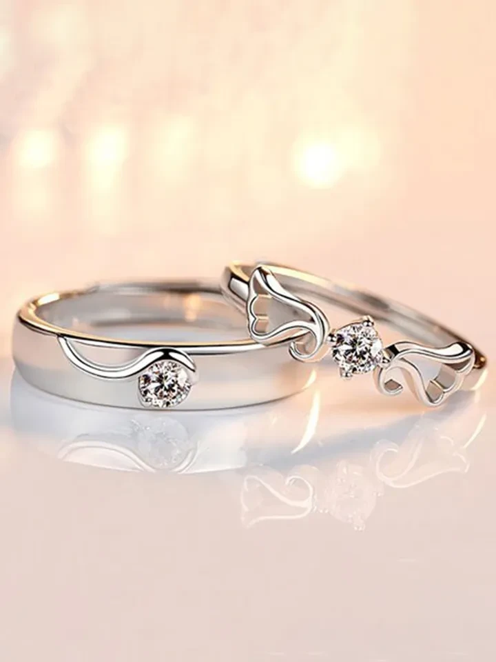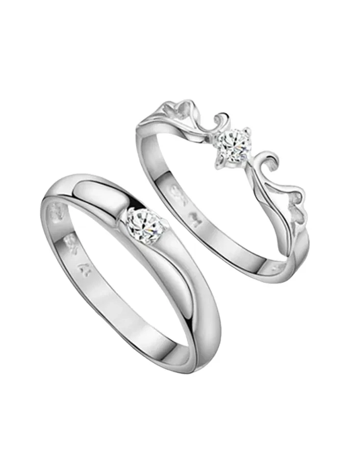 👉 Theme :- set of adjustable silver-plated couple rings with cubic zirconia stones.