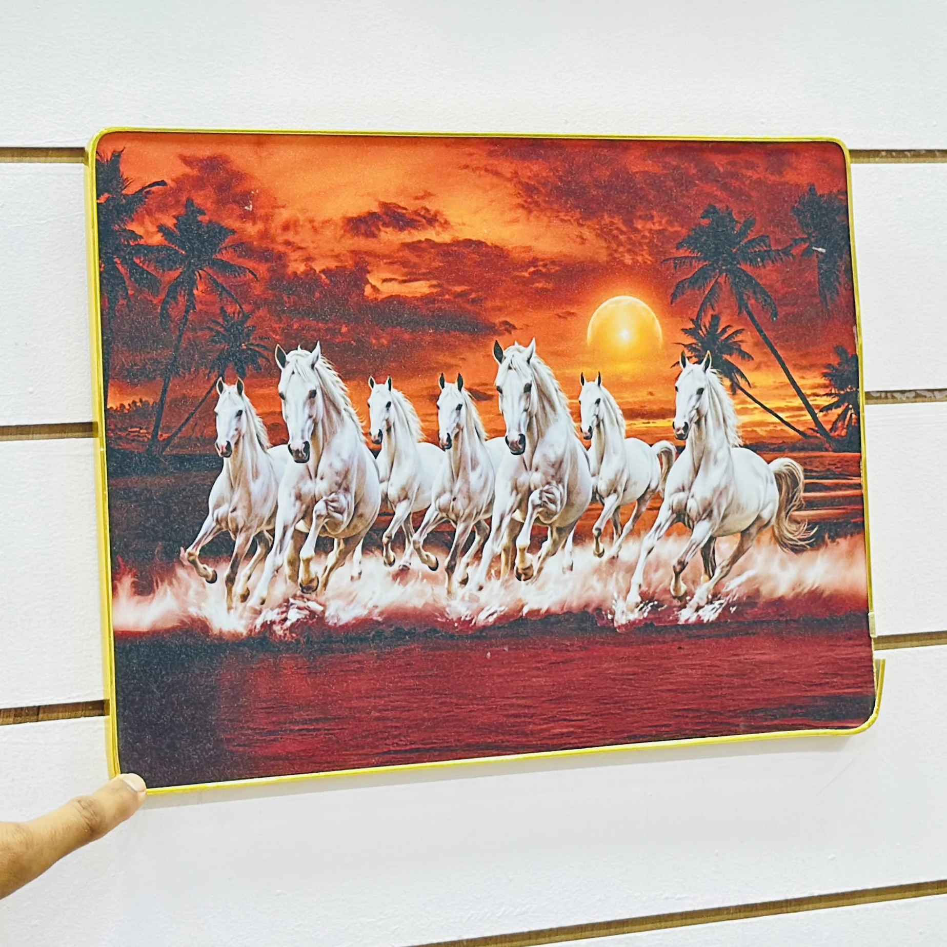 👉 Theme :- Shubh Sanket Vastu 7 Horse Running Textured Home Decorative Painting.