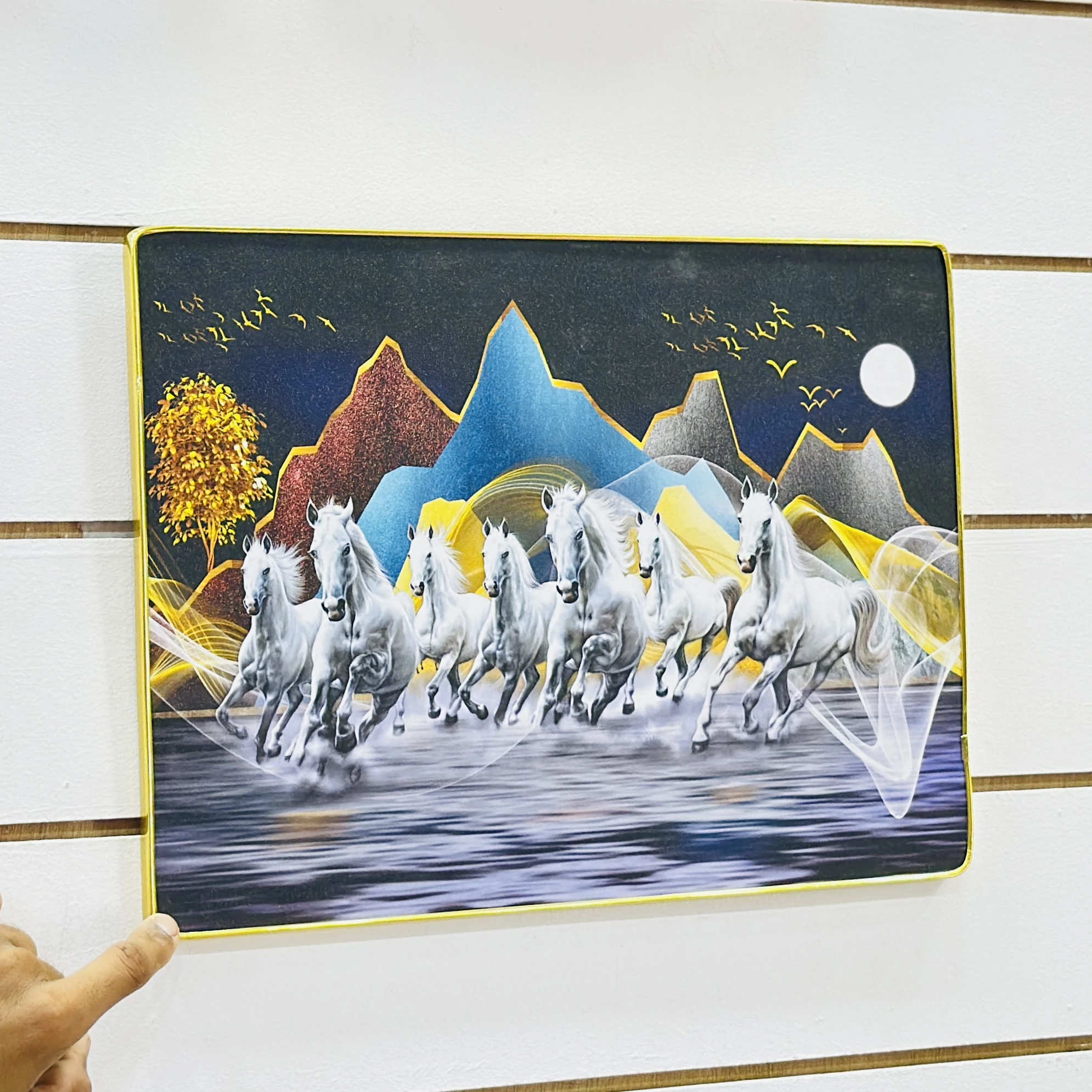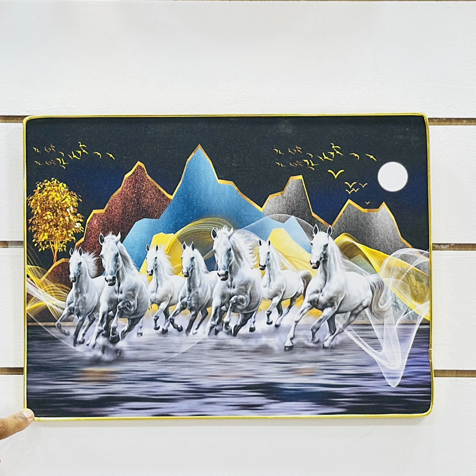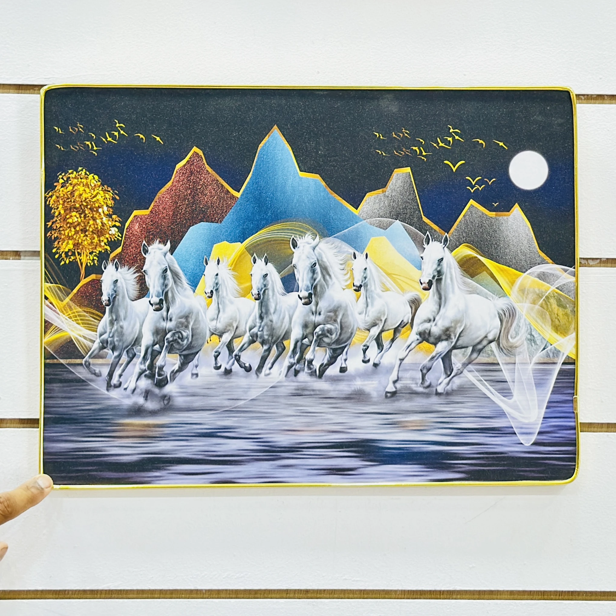 👉 Theme :- Shubh Sanket Vastu 7 Horse Running Textured Home Decorative Painting.