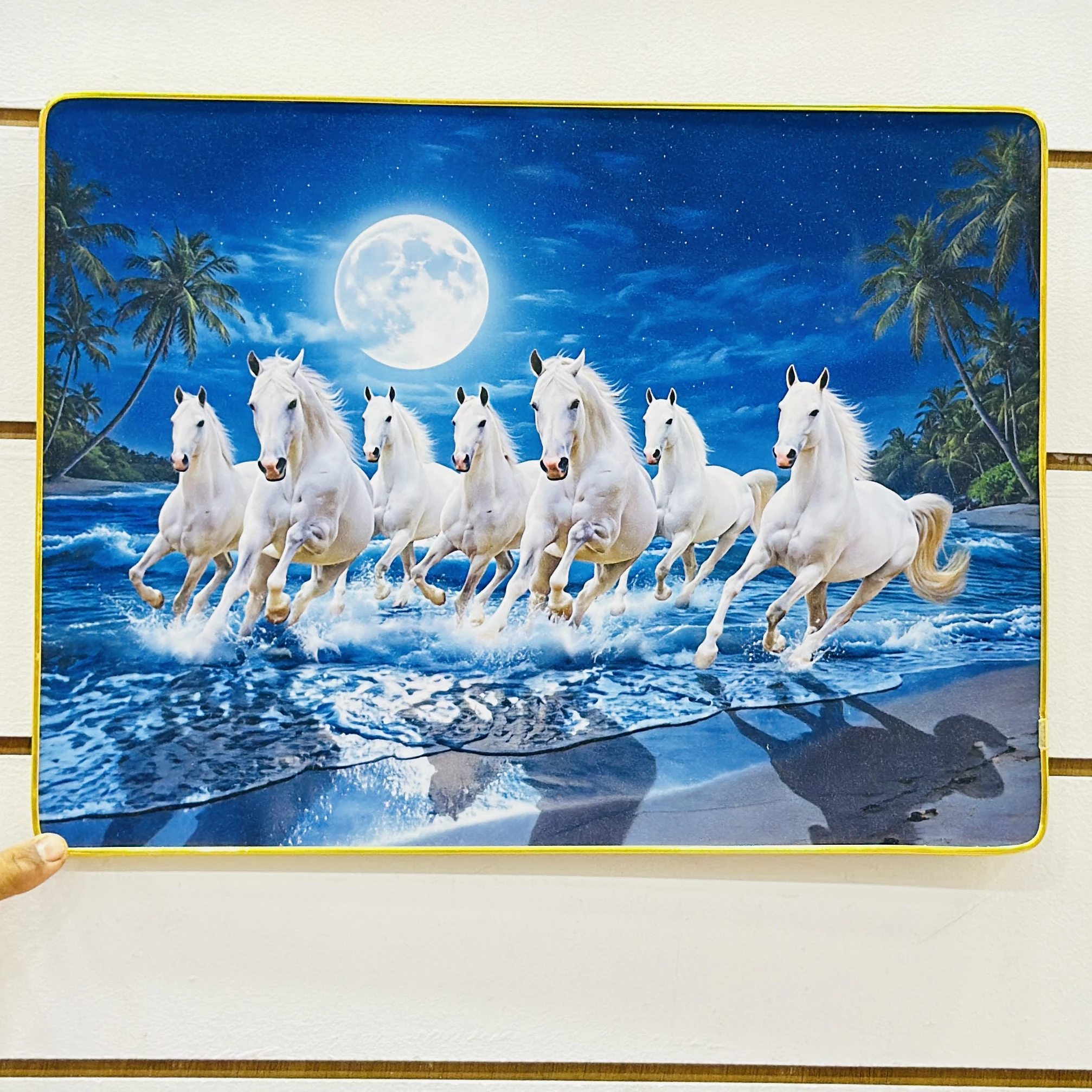 👉 Theme :- Shubh Sanket Vastu 7 Horse Running Textured Home Decorative Painting.