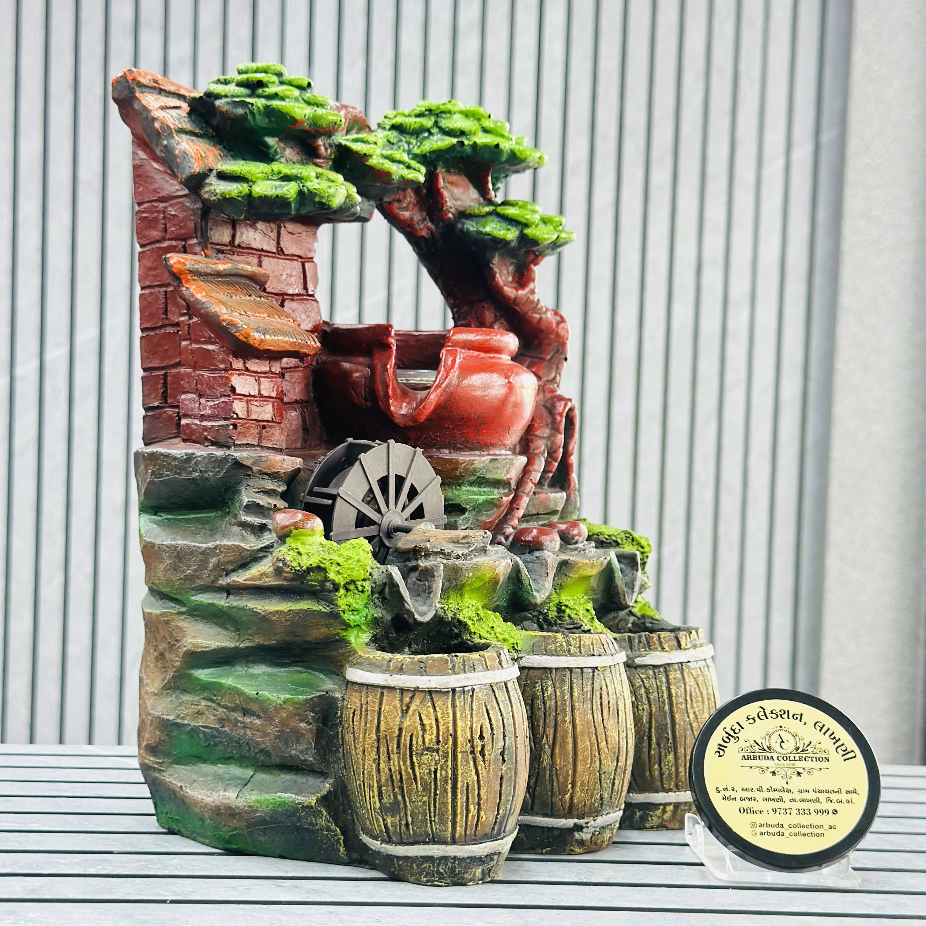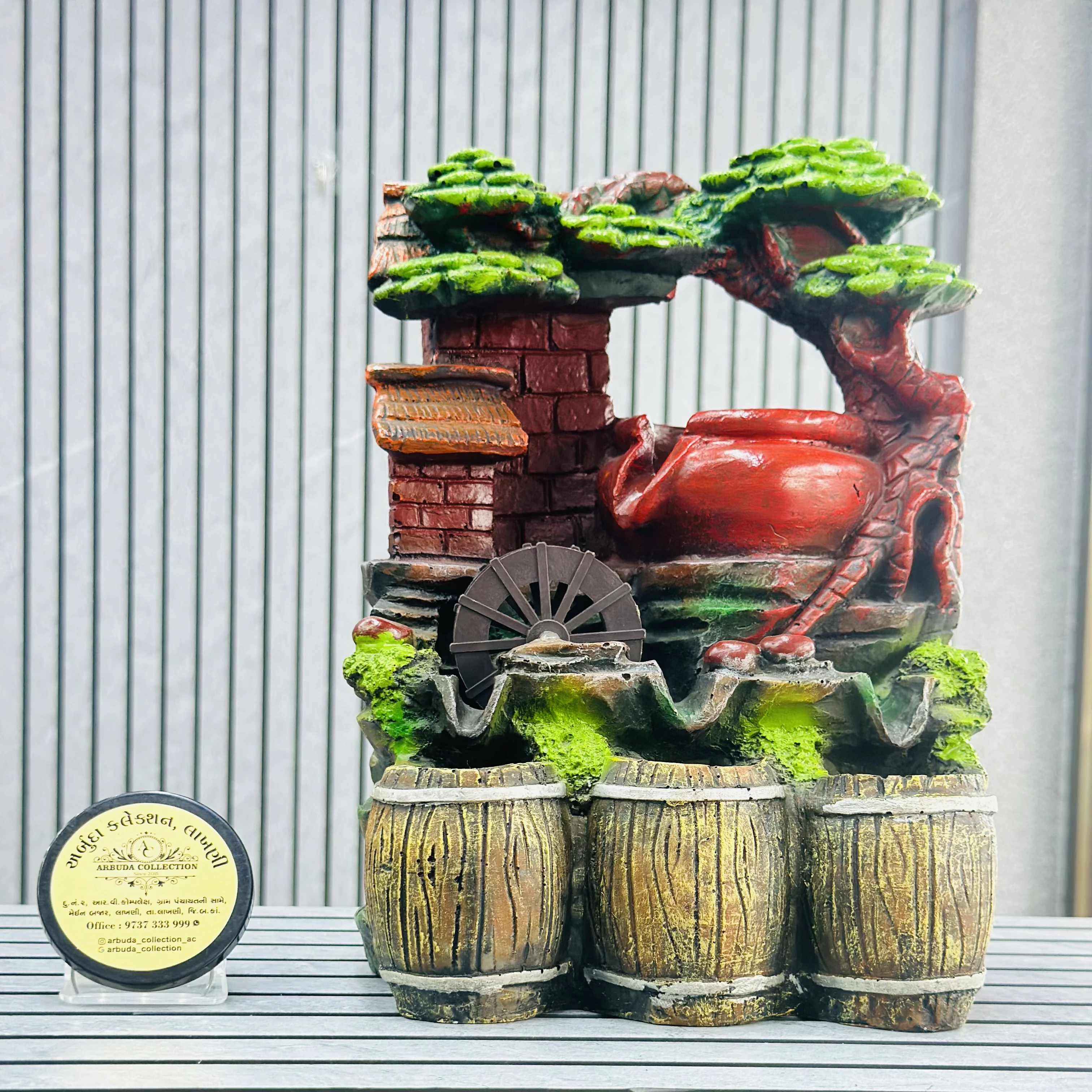 *✅ ARBUDA COLLECTION ✅* *✅9737333999✅* Theme :- showkeen store water fountain Brand :- arbuda collection lakhani Colour:- mixed Style:- Designer Fancy look Material:- Typically crafted from durable materials like polyresin or fiber. Dimensions :- 13 hight, 6 width Uses :- They are suitable for various, including homes , gardens, office and even large space like hotels and resorts. Cleaning:- wipe clean with a dry cloth Origin:- made in India by local artists Other words:- limited addition…