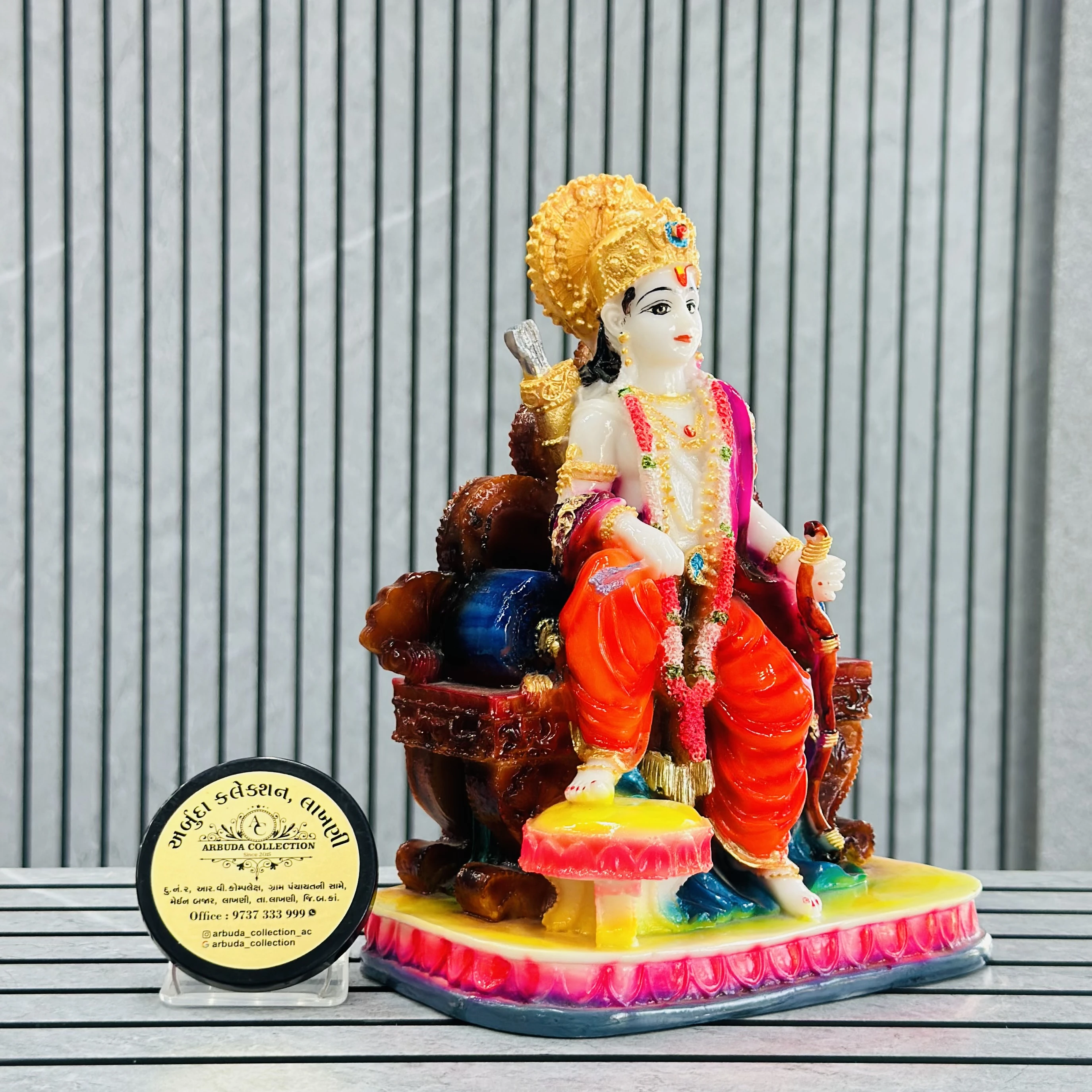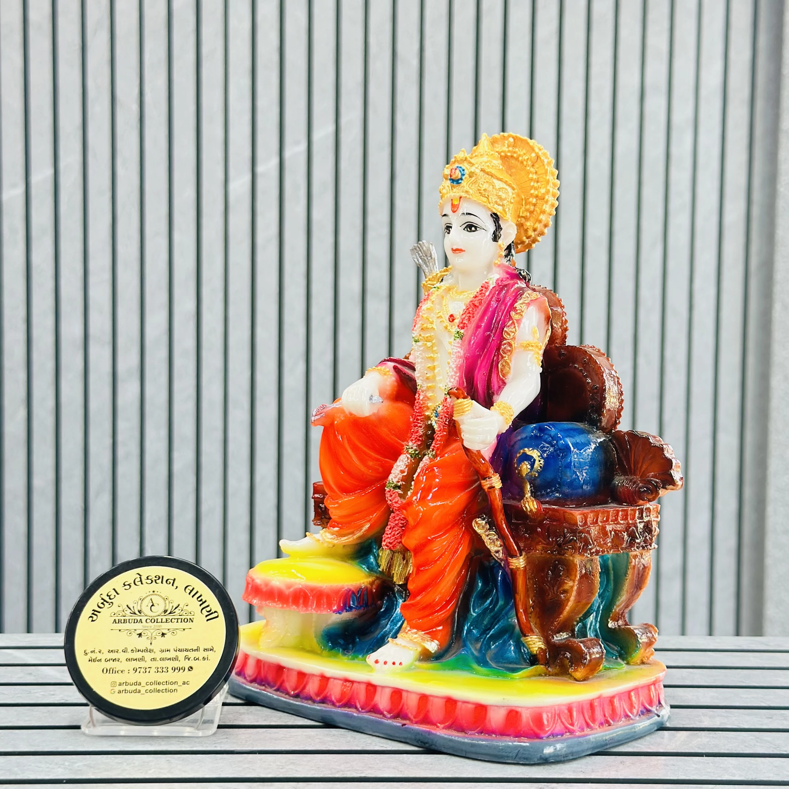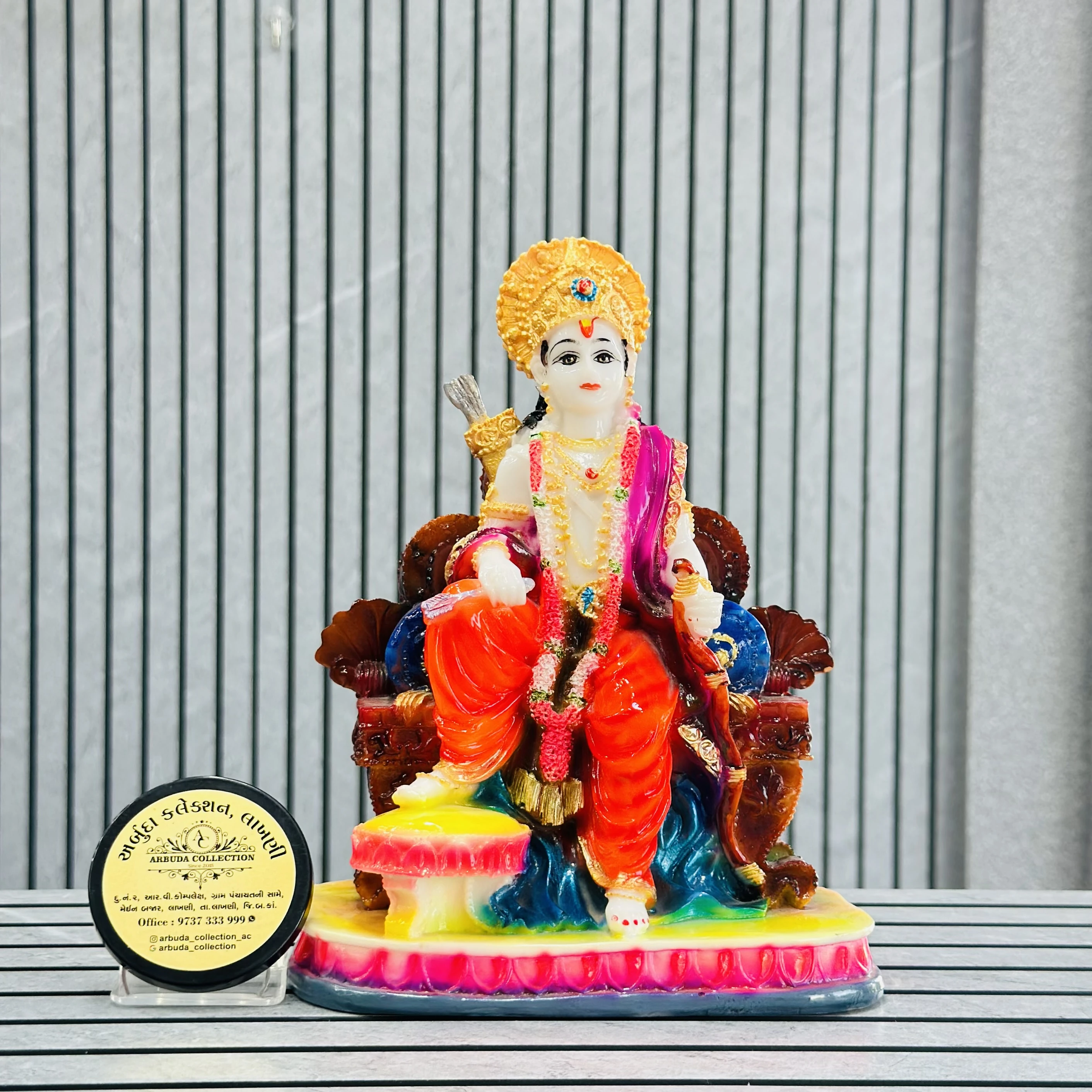*✅ ARBUDA COLLECTION ✅* *✅9737333999✅* Theme :- Shri Ram murti Brand :- arbuda collection lakhani Colour:- mixed Style:- traditional Material:- imported cality Dimensions :- 11 hight, 7 width Uses :- office desk,mandir, pooja Room… Cleaning:- wipe clean with a dry cloth Origin:- made in India by local artists Other words:- limited addition…