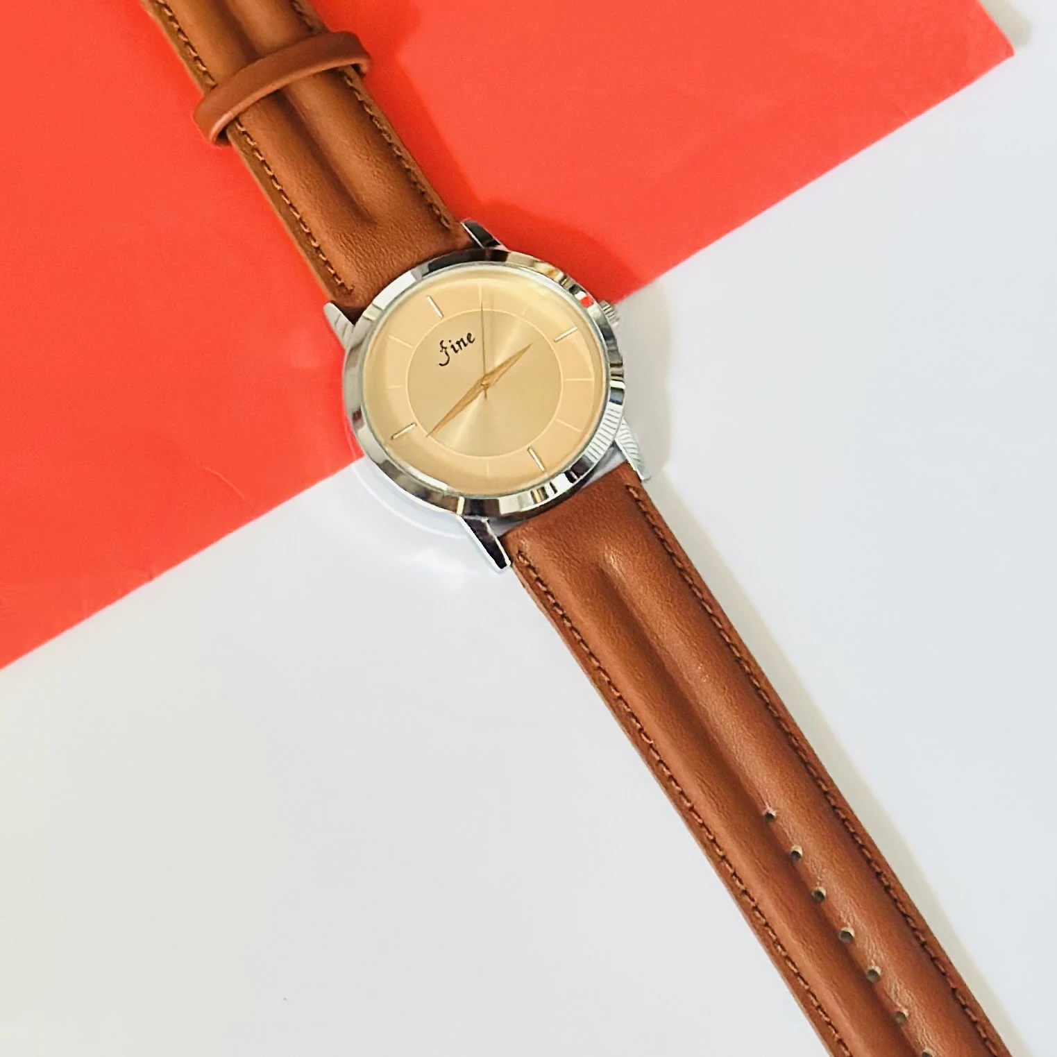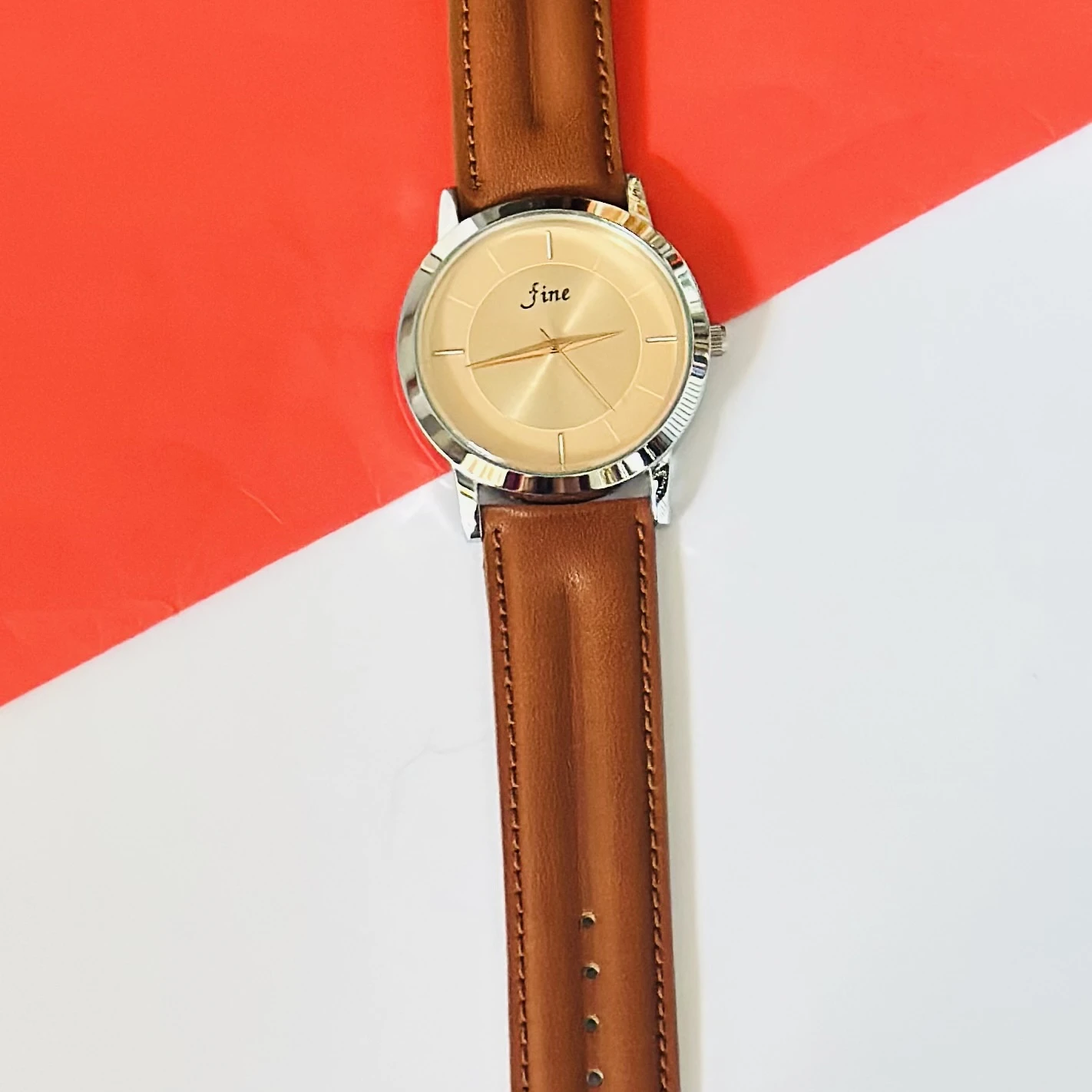 👉 Theme :- Silver Dial Brown Leather Strap Analog Wrist Watch for Men.