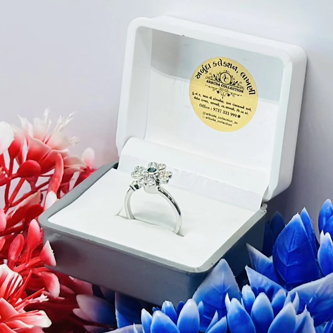 👉 Theme :- silver flower toe ring with a green center and diamond details.