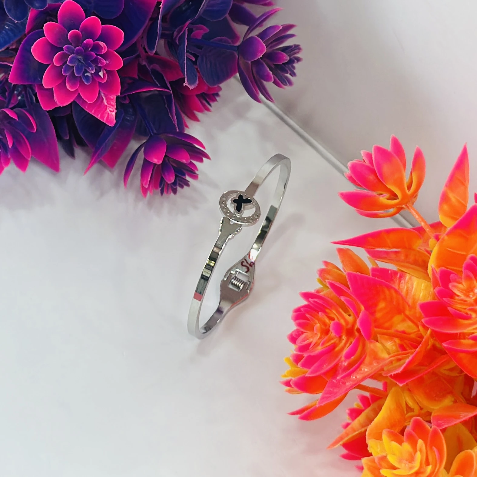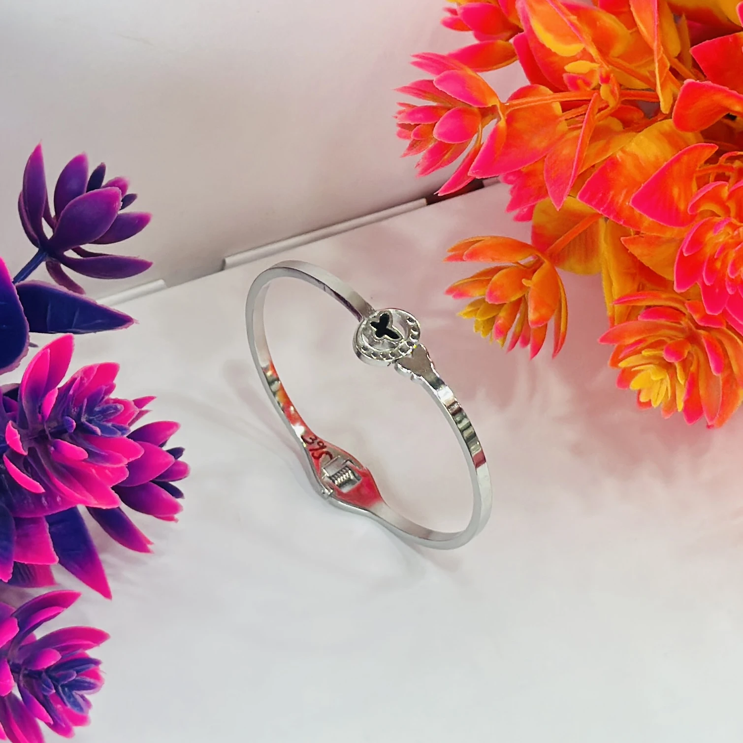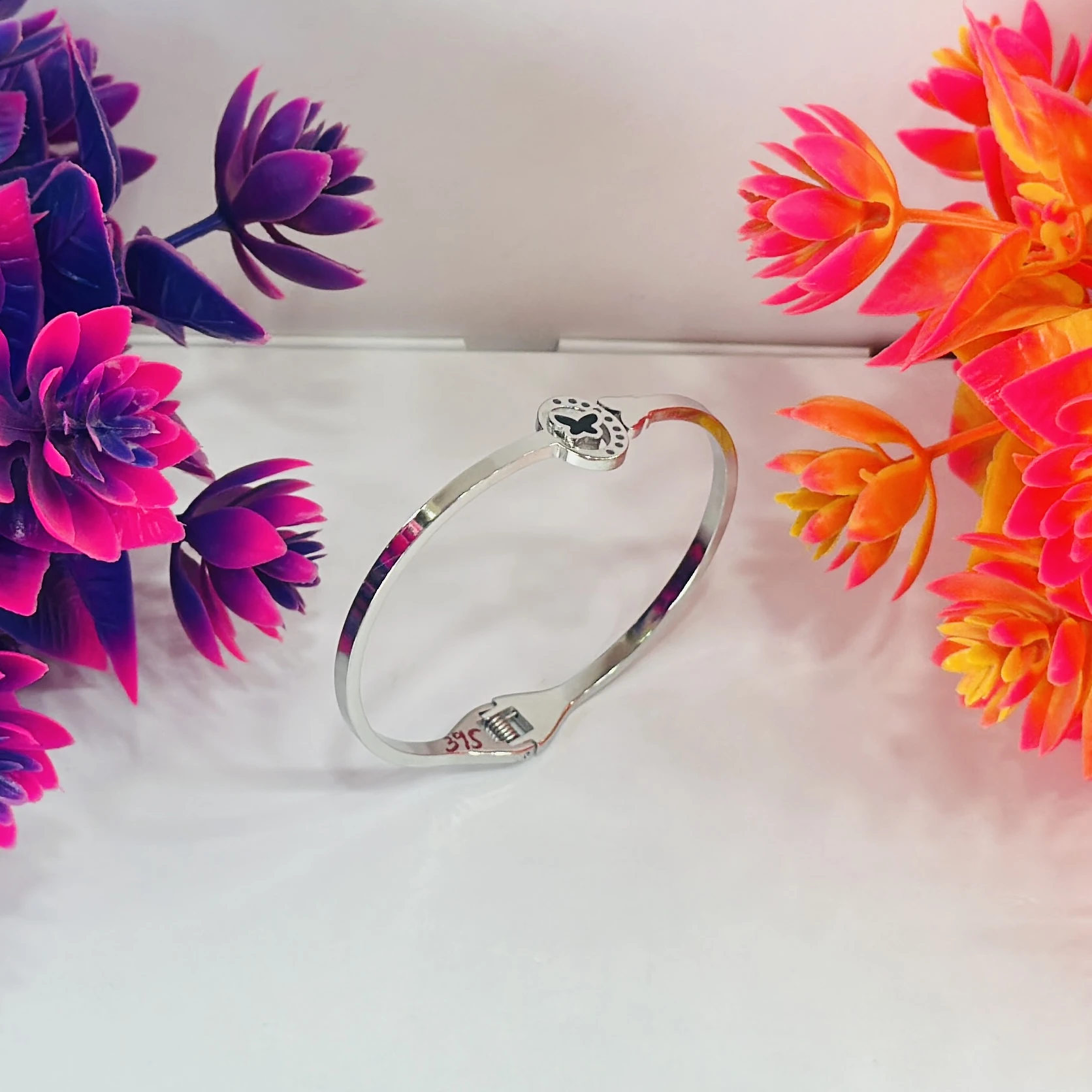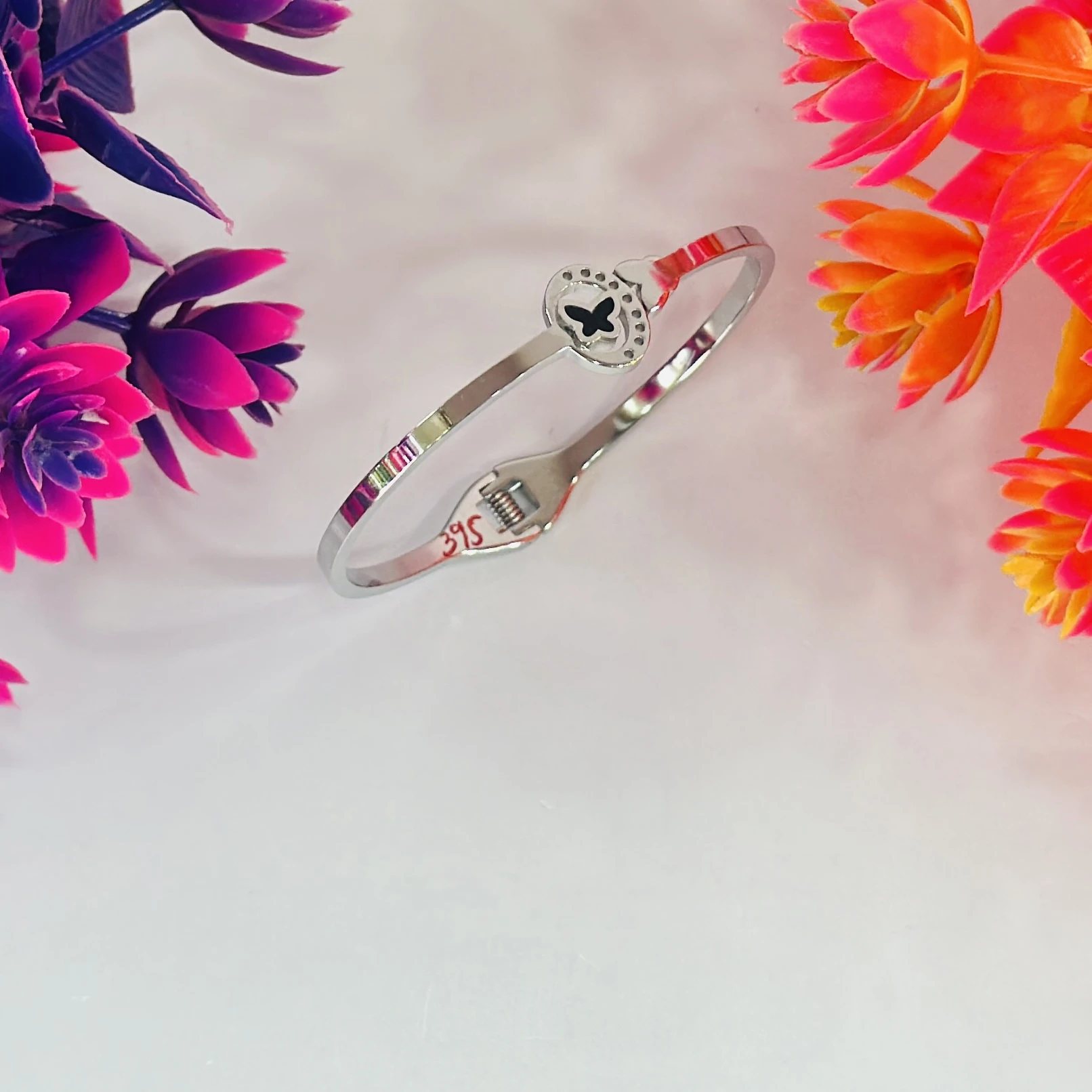 👉Theme :- Silver kada bracelet with a small butterfly charm.