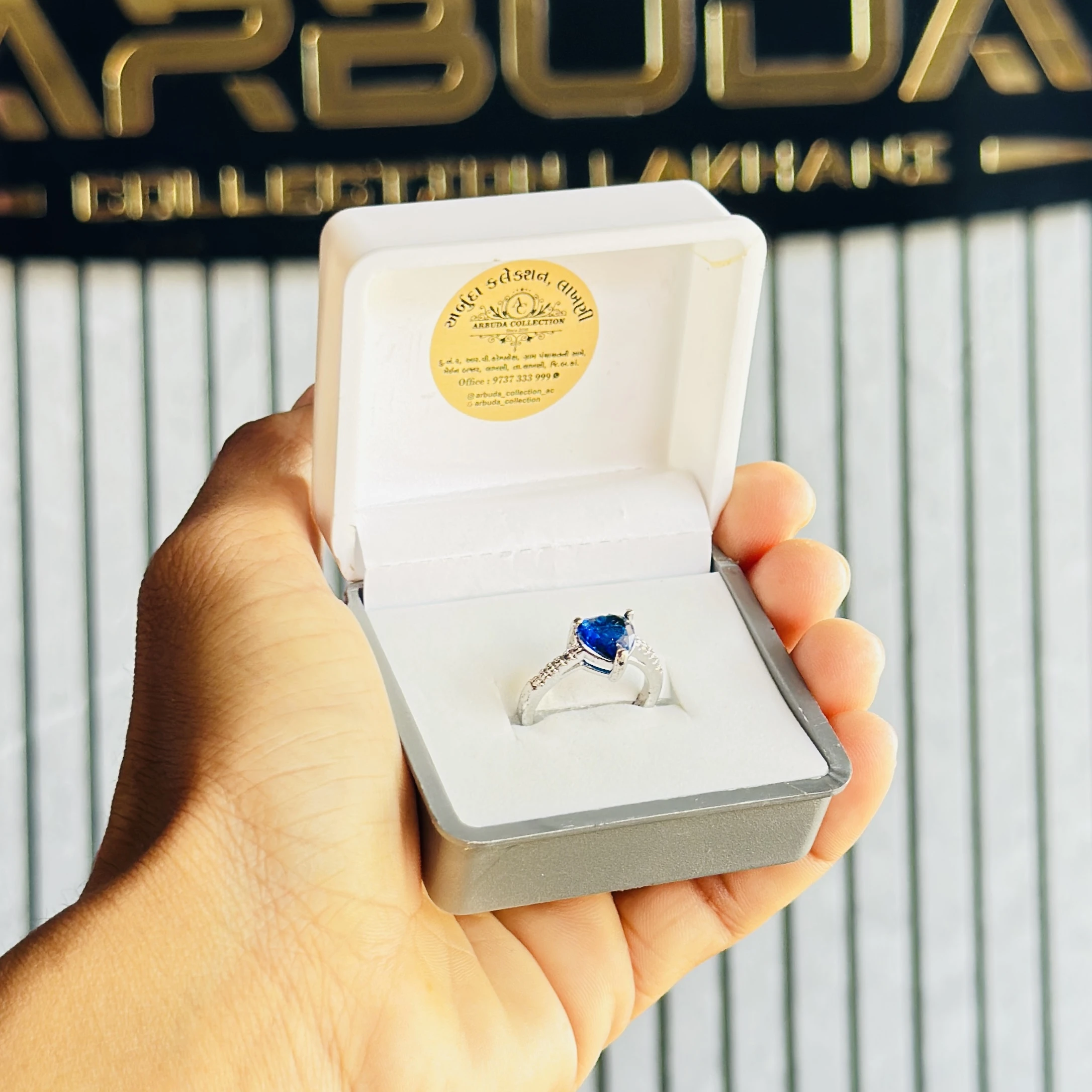 silver-plated ring featuring a heart-shaped blue artificial stone