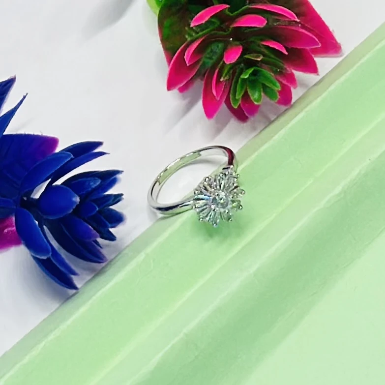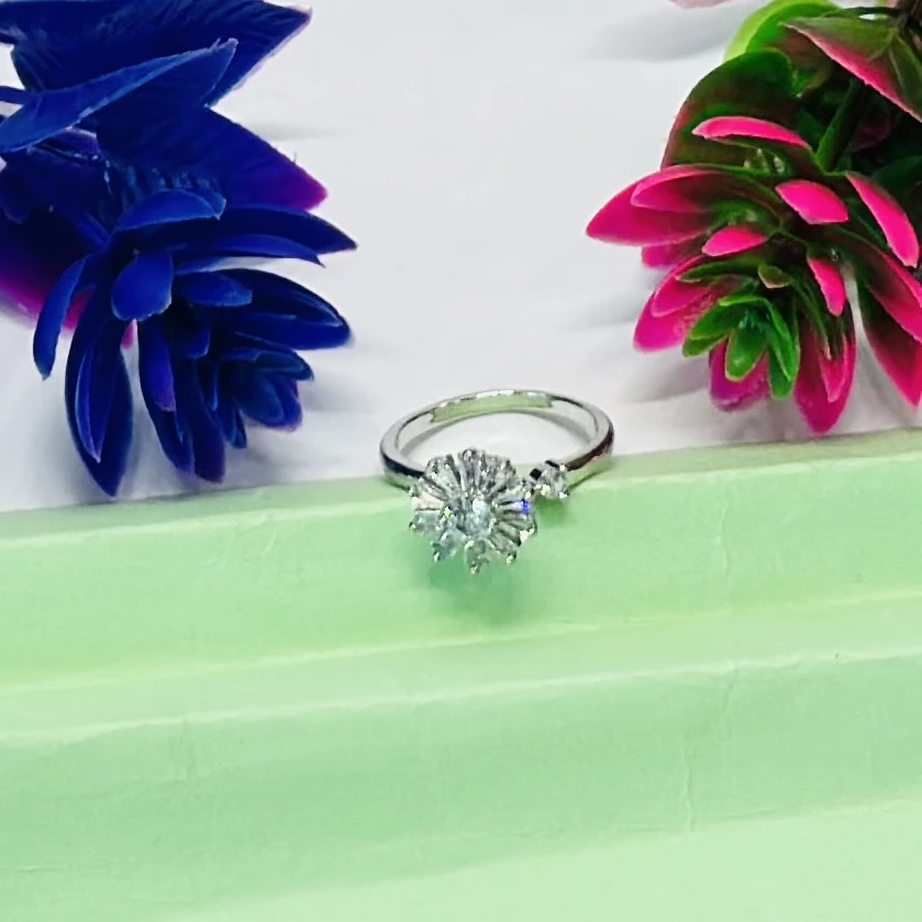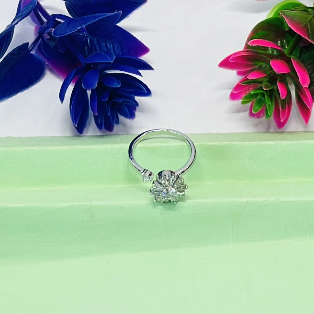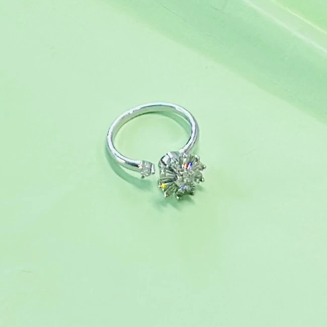 👉 Theme :- Silver toe ring featuring a white zircon floral design.
