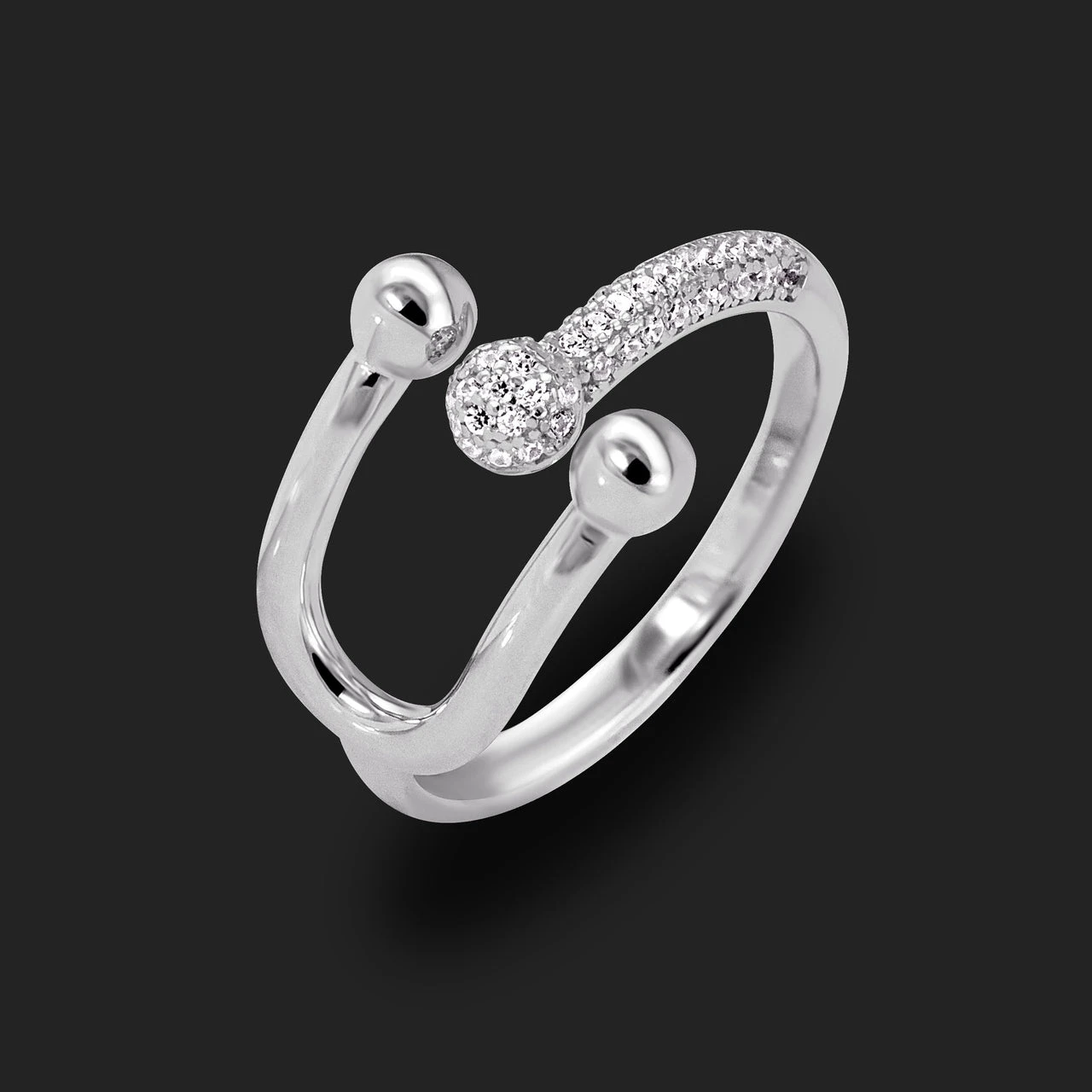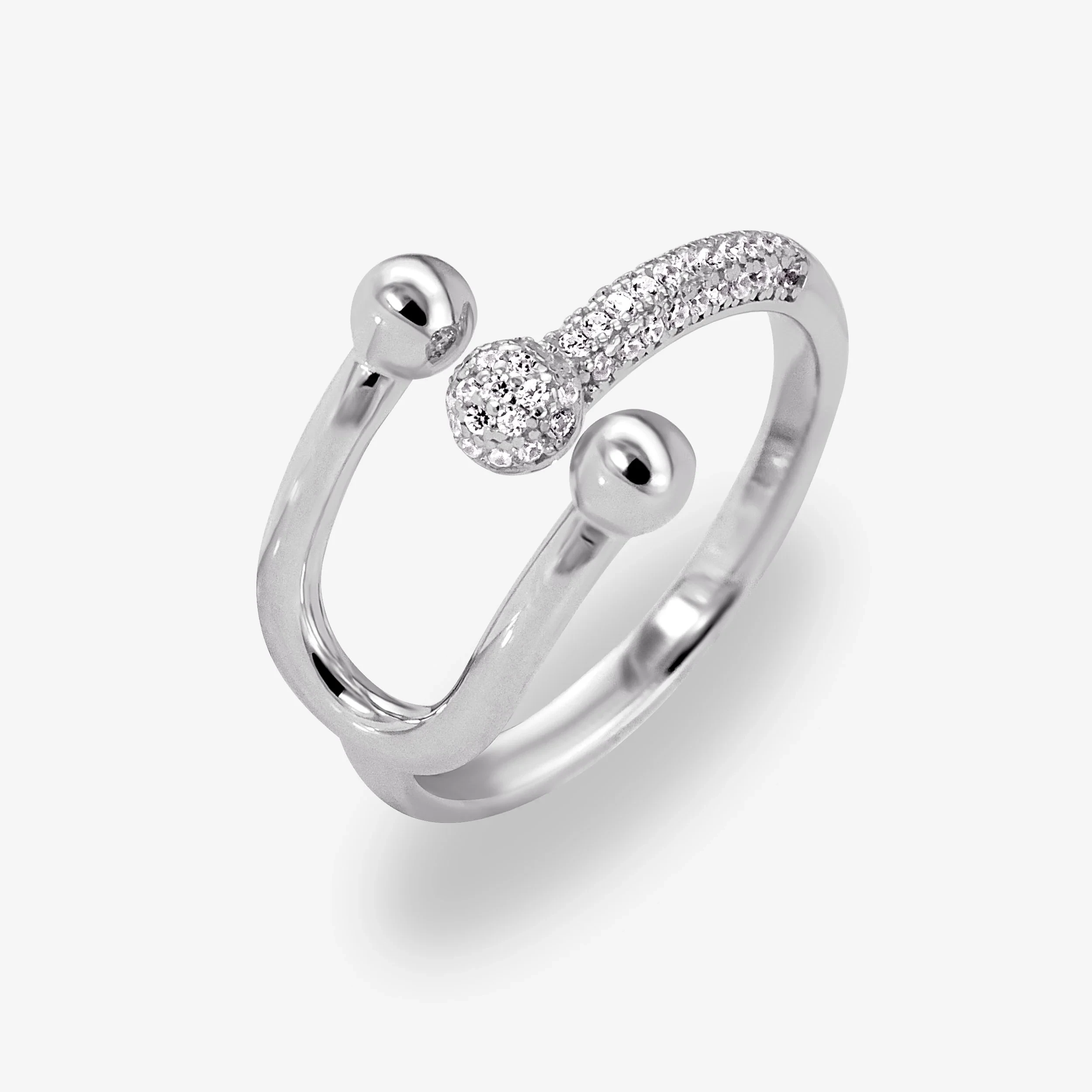 silver-toned adjustable ring with cubic zirconia stones.