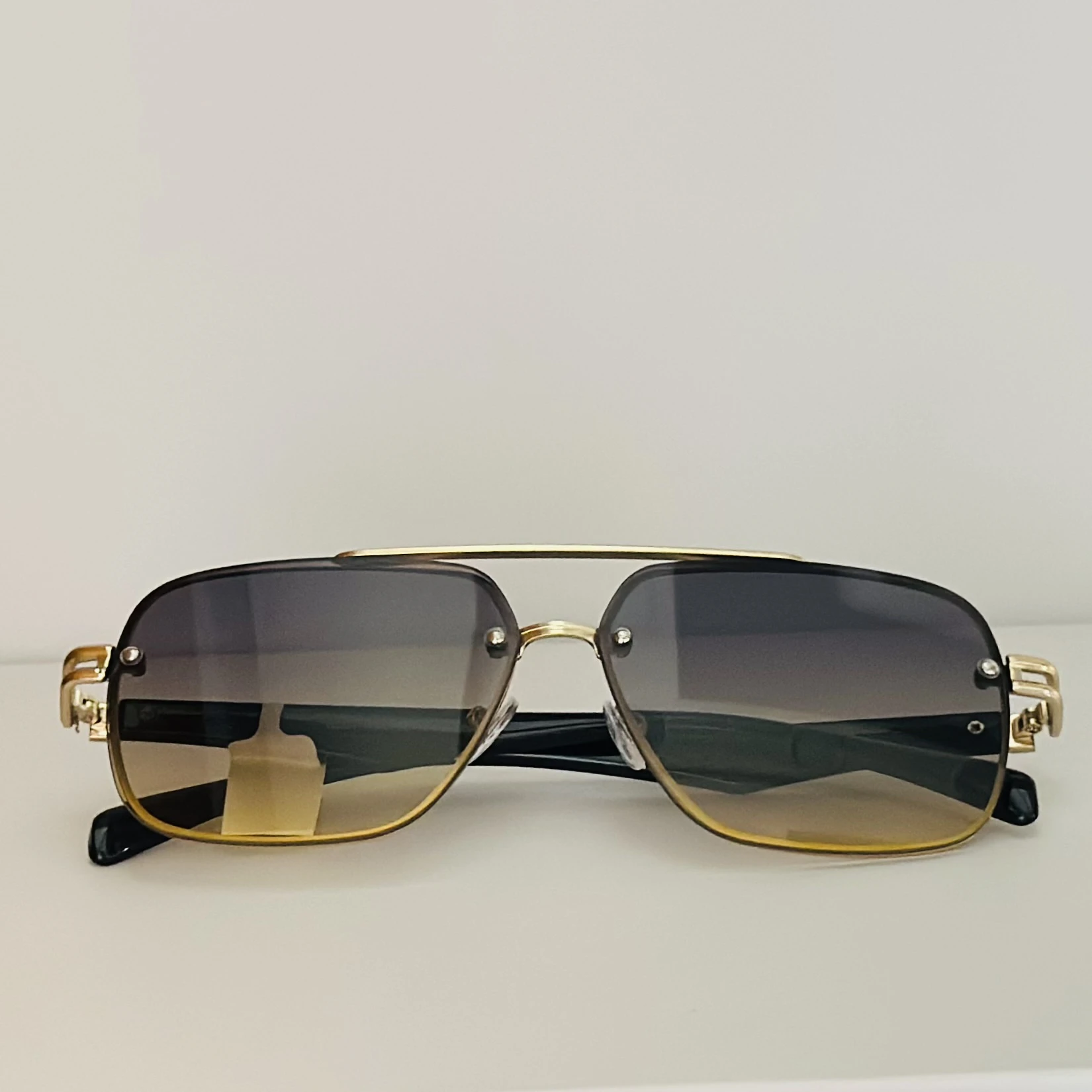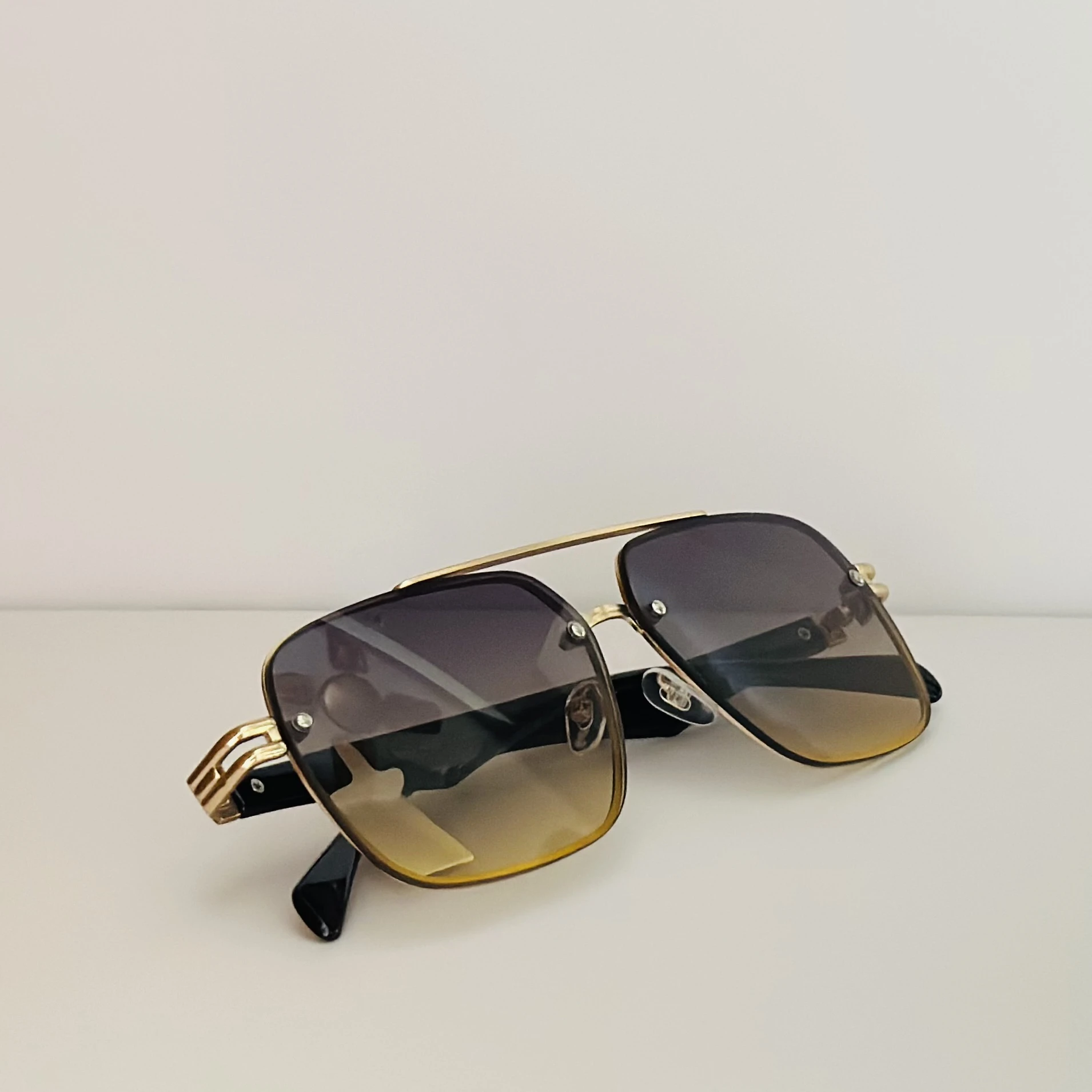 👉 Theme :- square aviator sunglasses with a gold-toned metal frame and brown gradient lenses