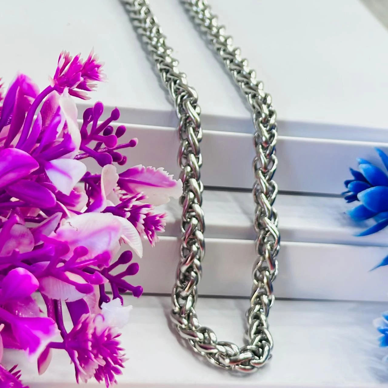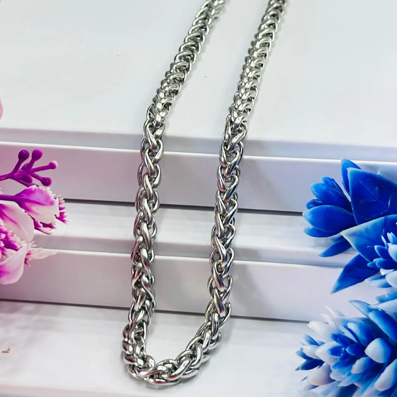 👉 Theme :- Stainless Steel Silver Wheat Chain