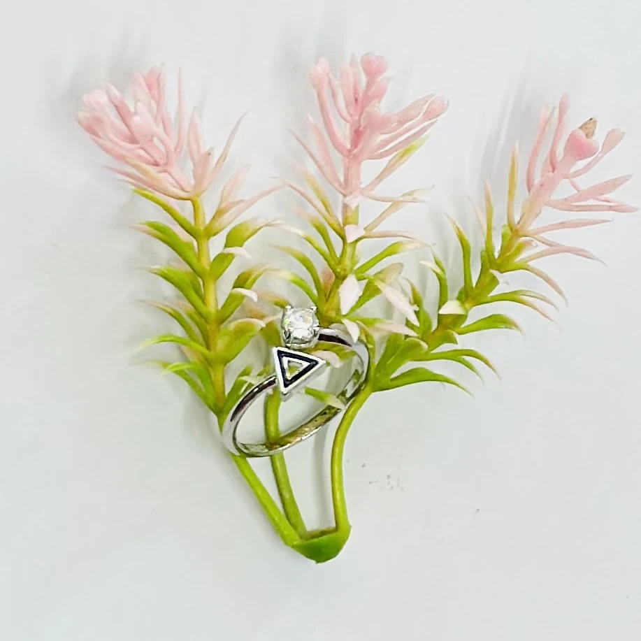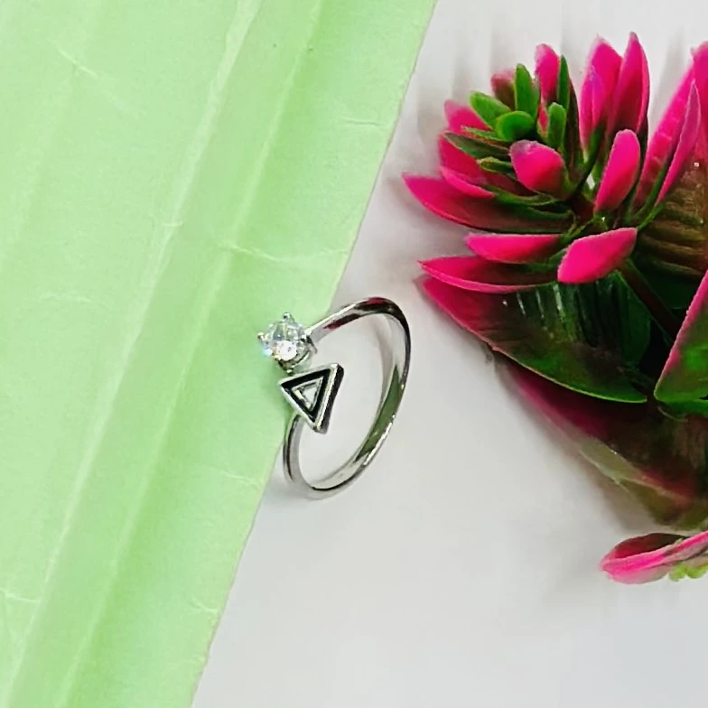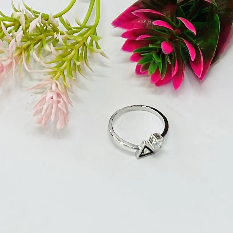 👉 Theme :- sterling silver clear cubic zirconia triangle stacking ring set.