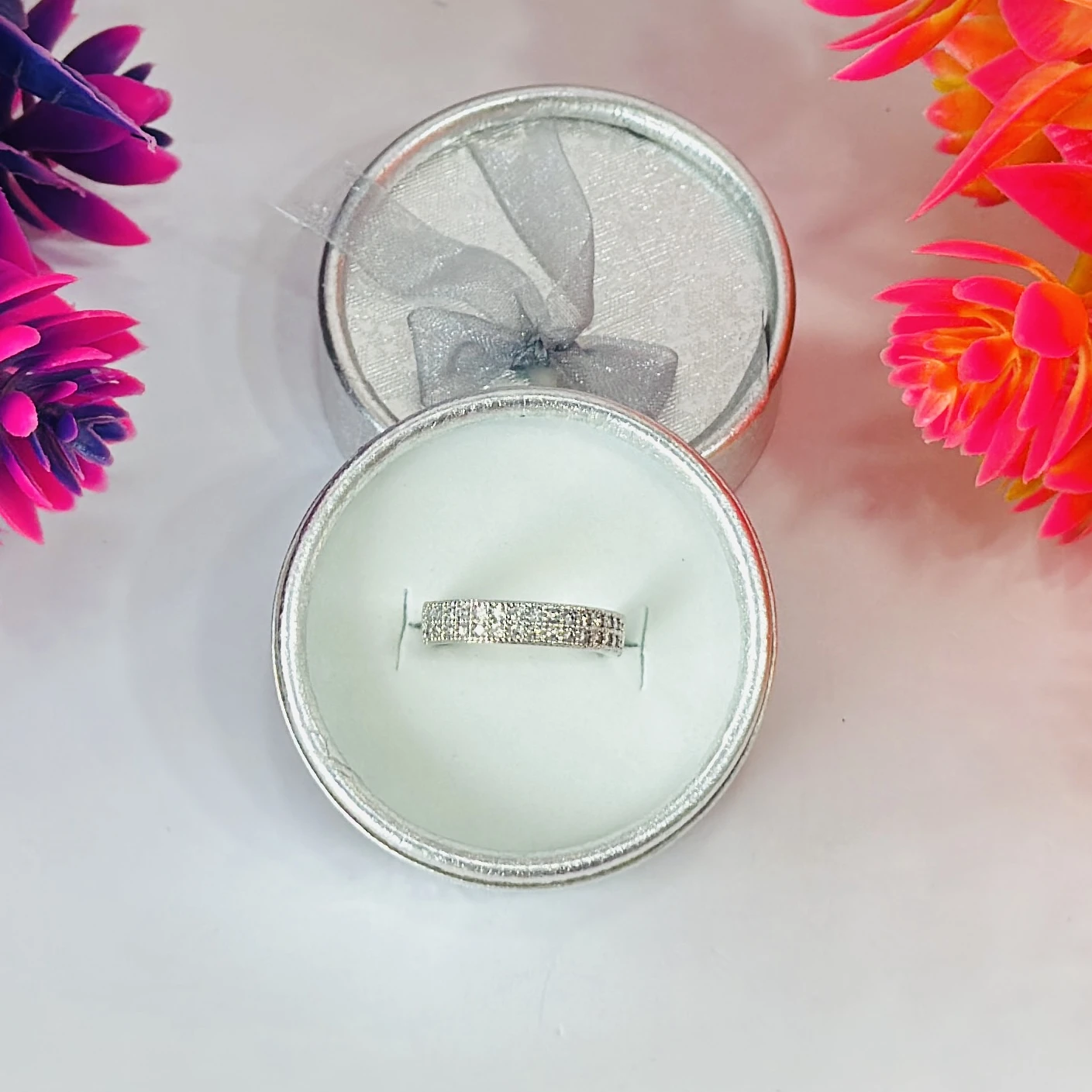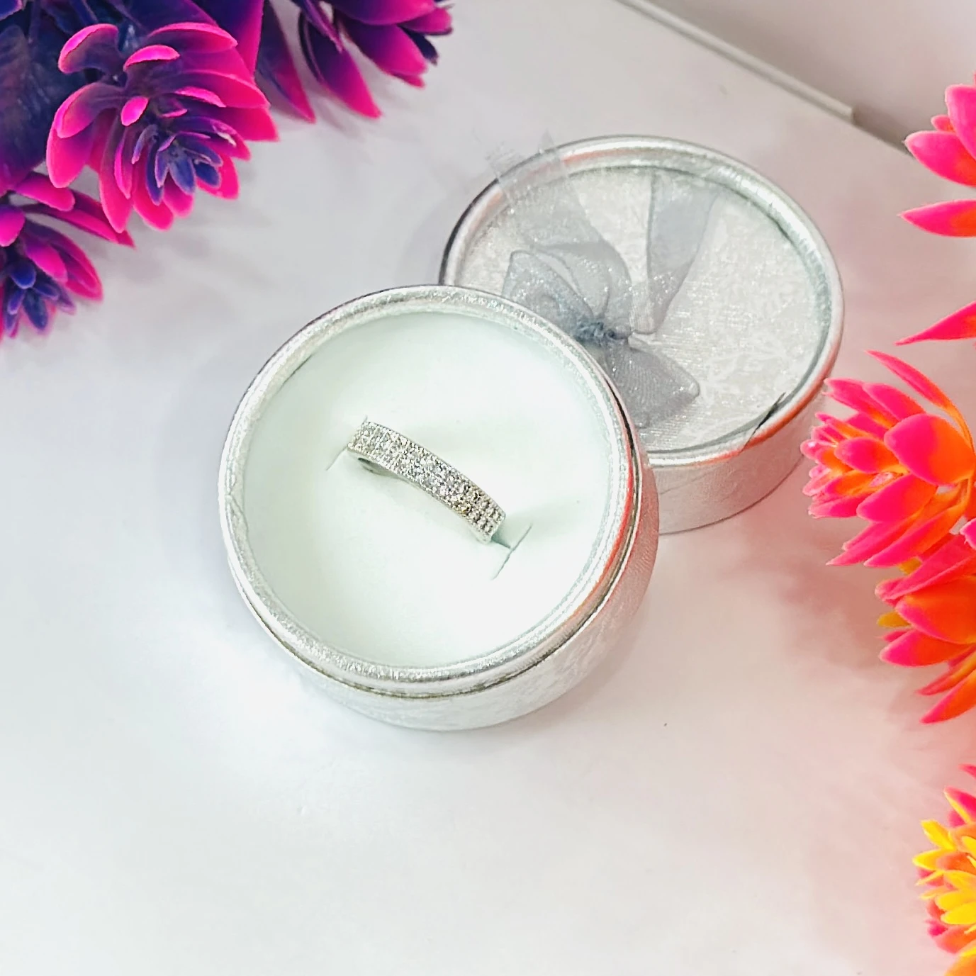 sterling silver, cubic zirconia eternity band ring.