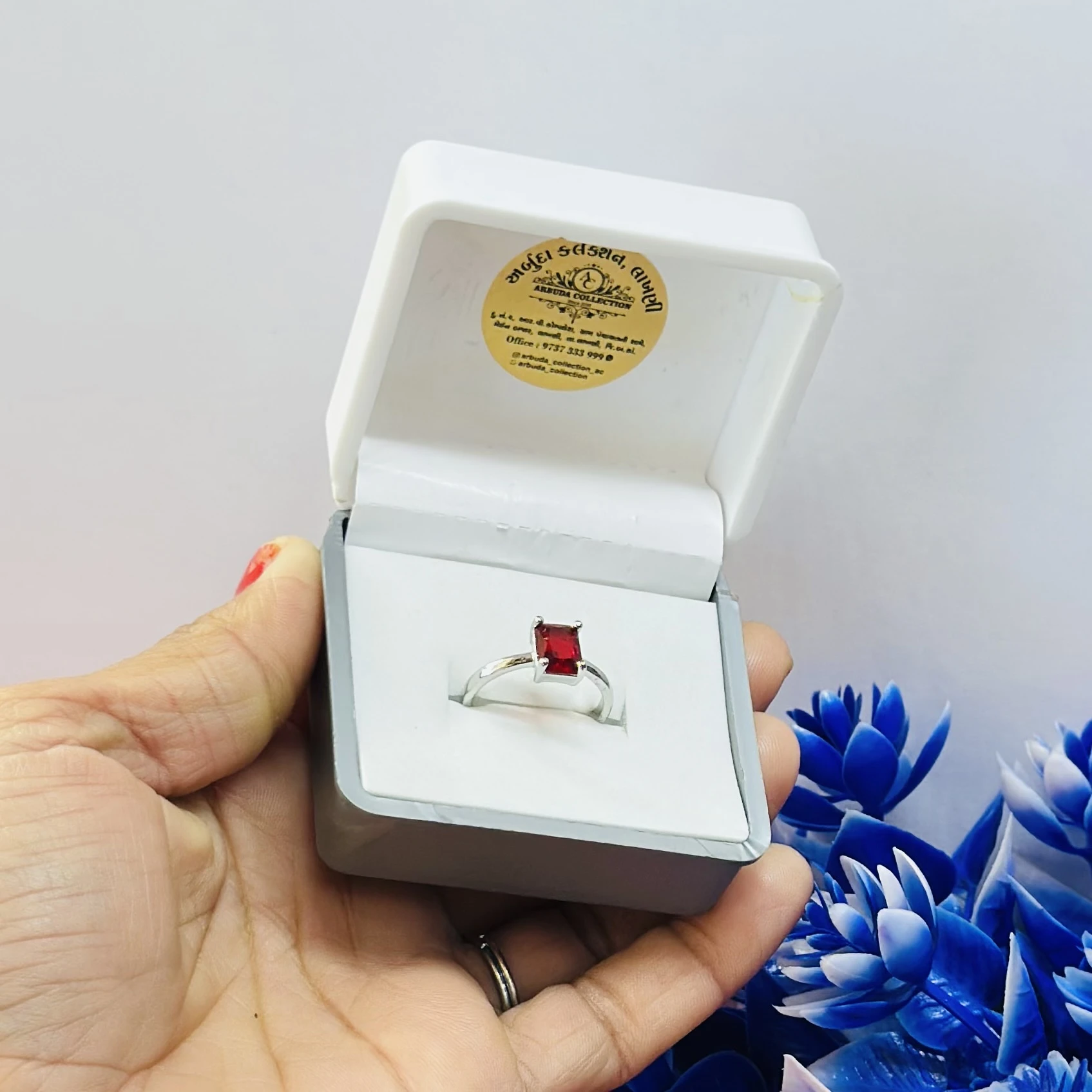 👉 Theme :- sterling silver rectangle cut champagne cubic zirconia ring in a light blue gift box.