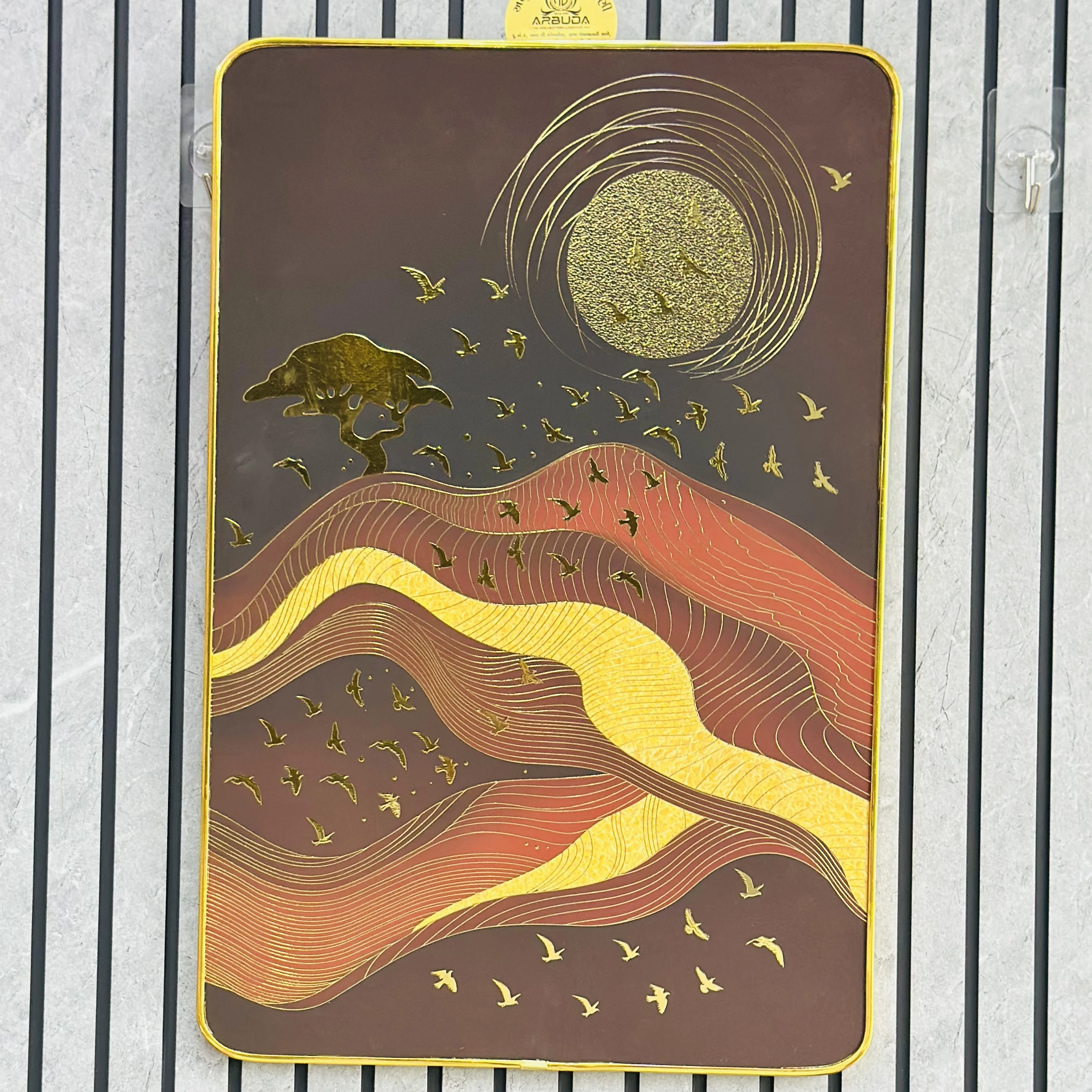 👉 Theme :- sun, mountains, a tree, and birds.