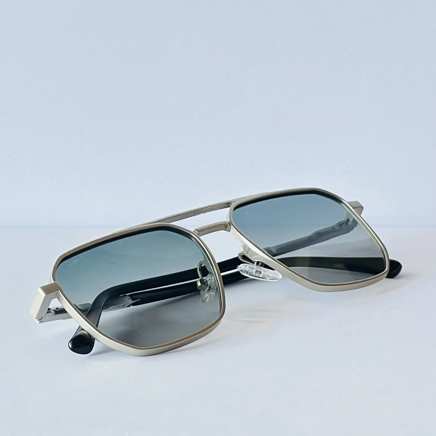 sunglasses featuring a metallic silver frame and gradient lenses.
