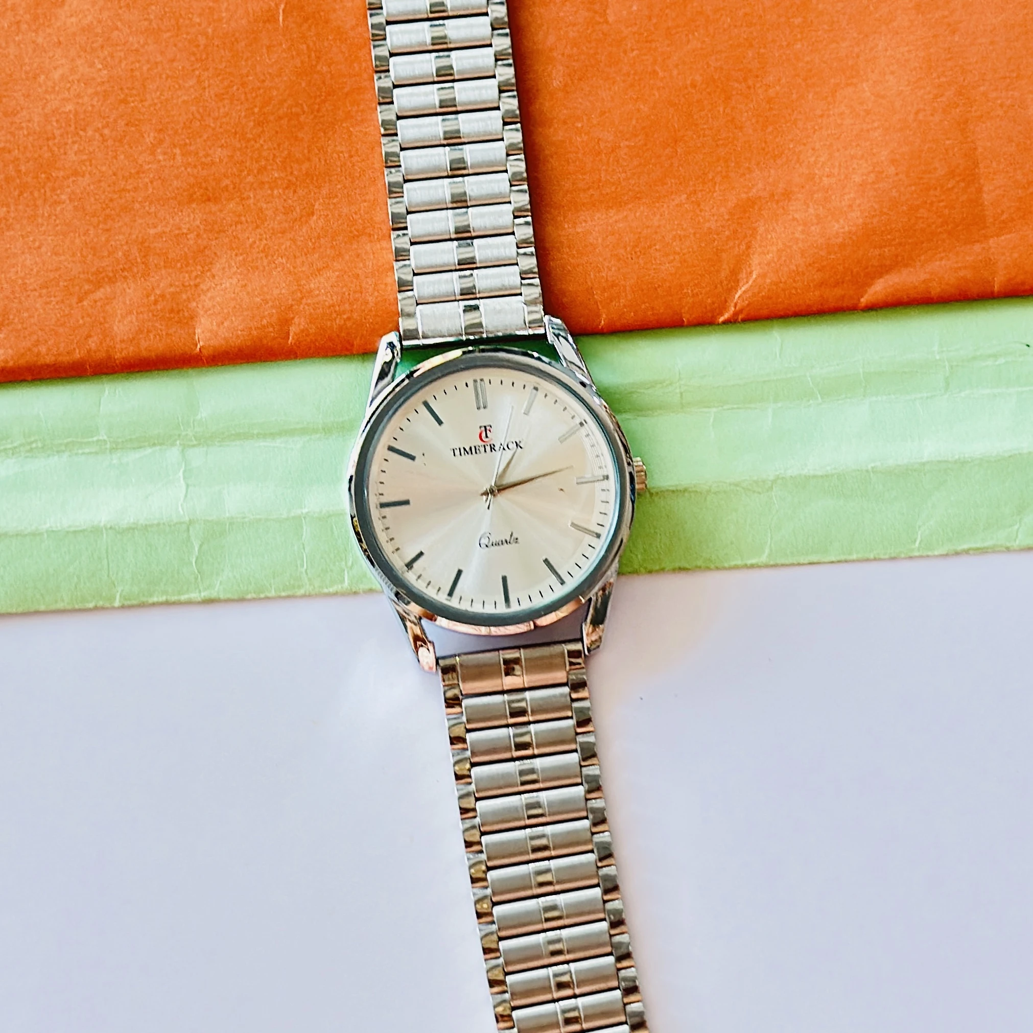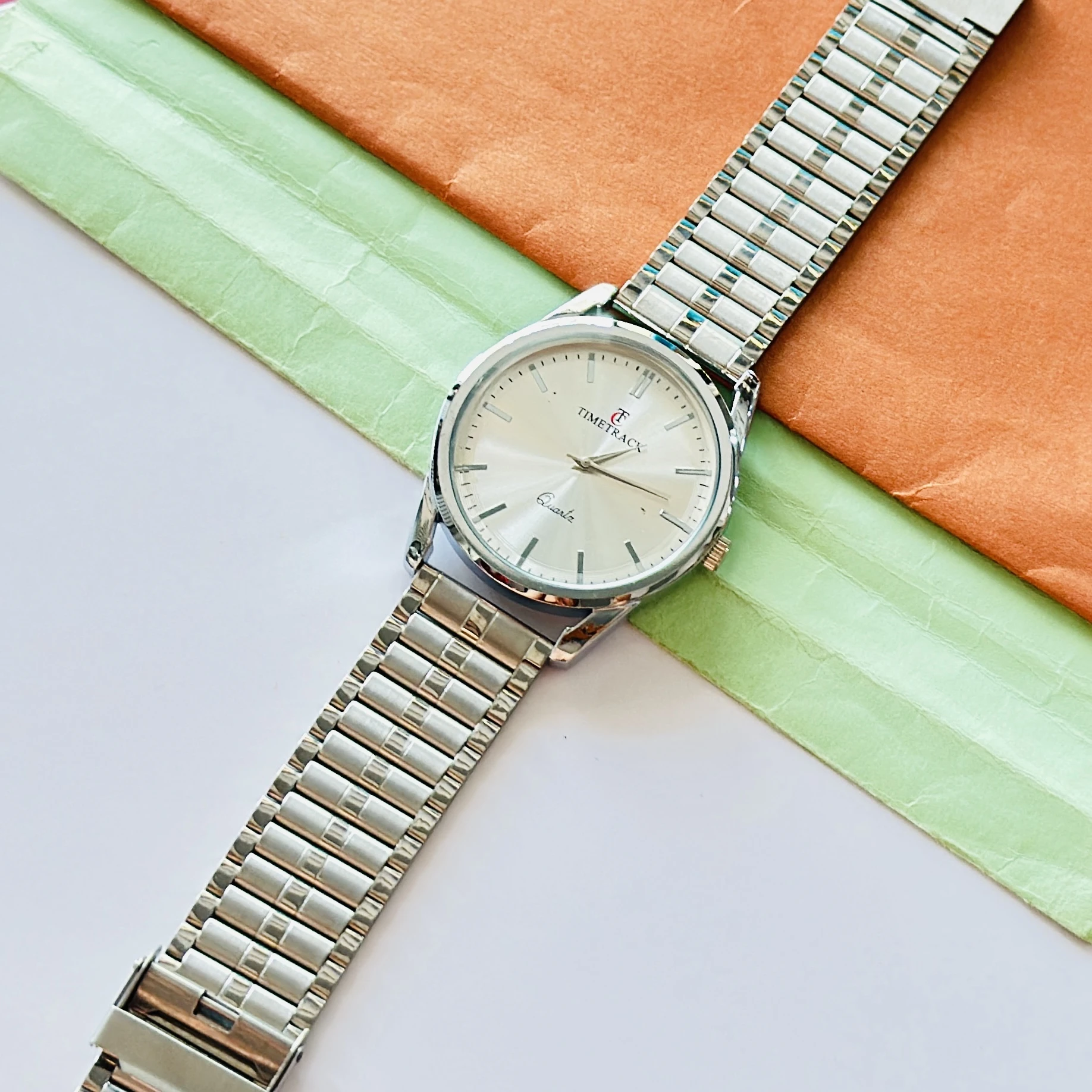 👉 Theme :- Time Track Men's Brass Silver Wrist Watch