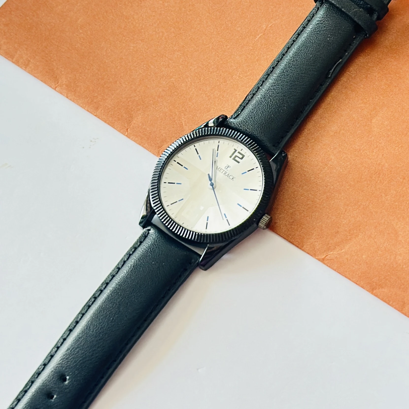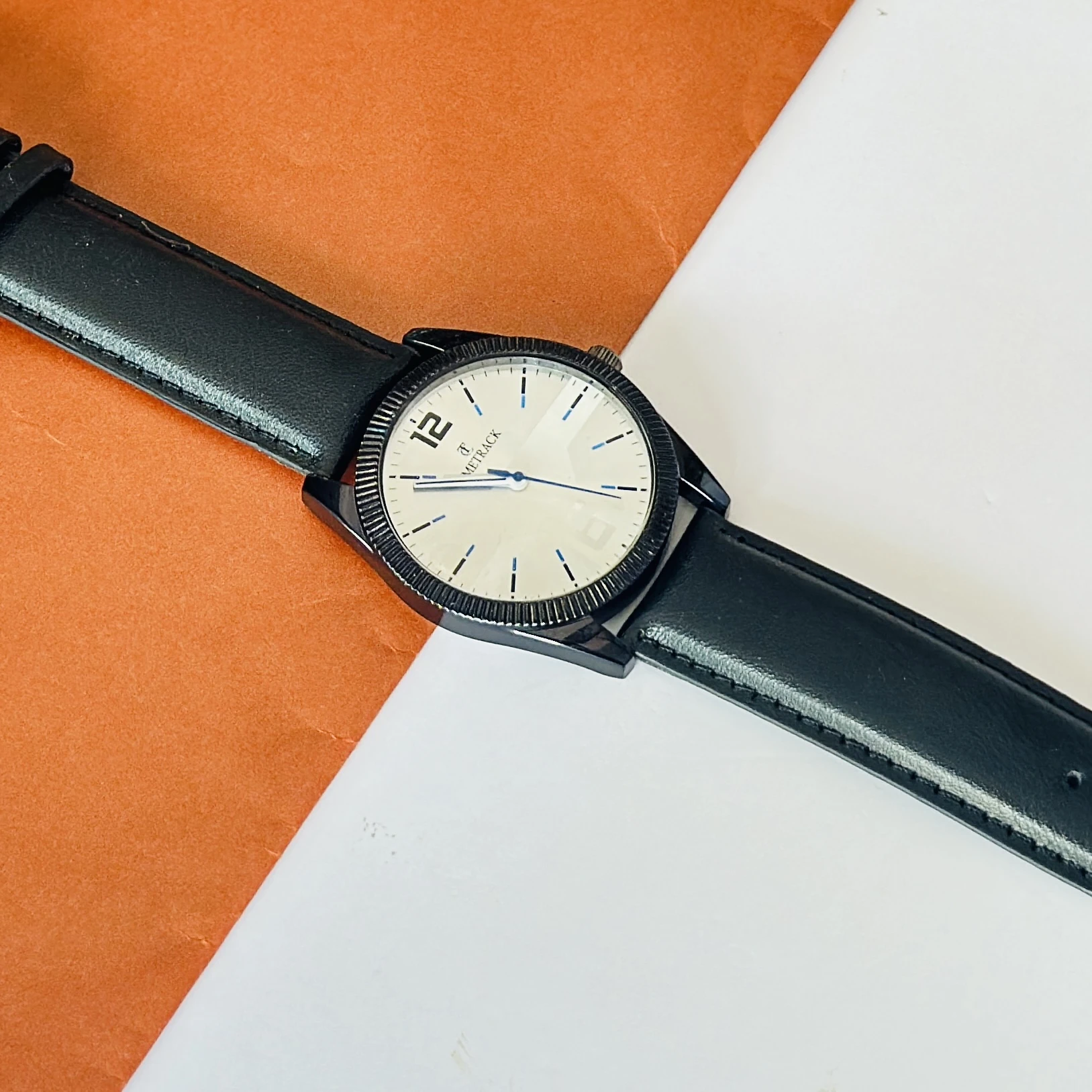 Timrack analog wristwatch featuring a silver-toned bezel, a black dial