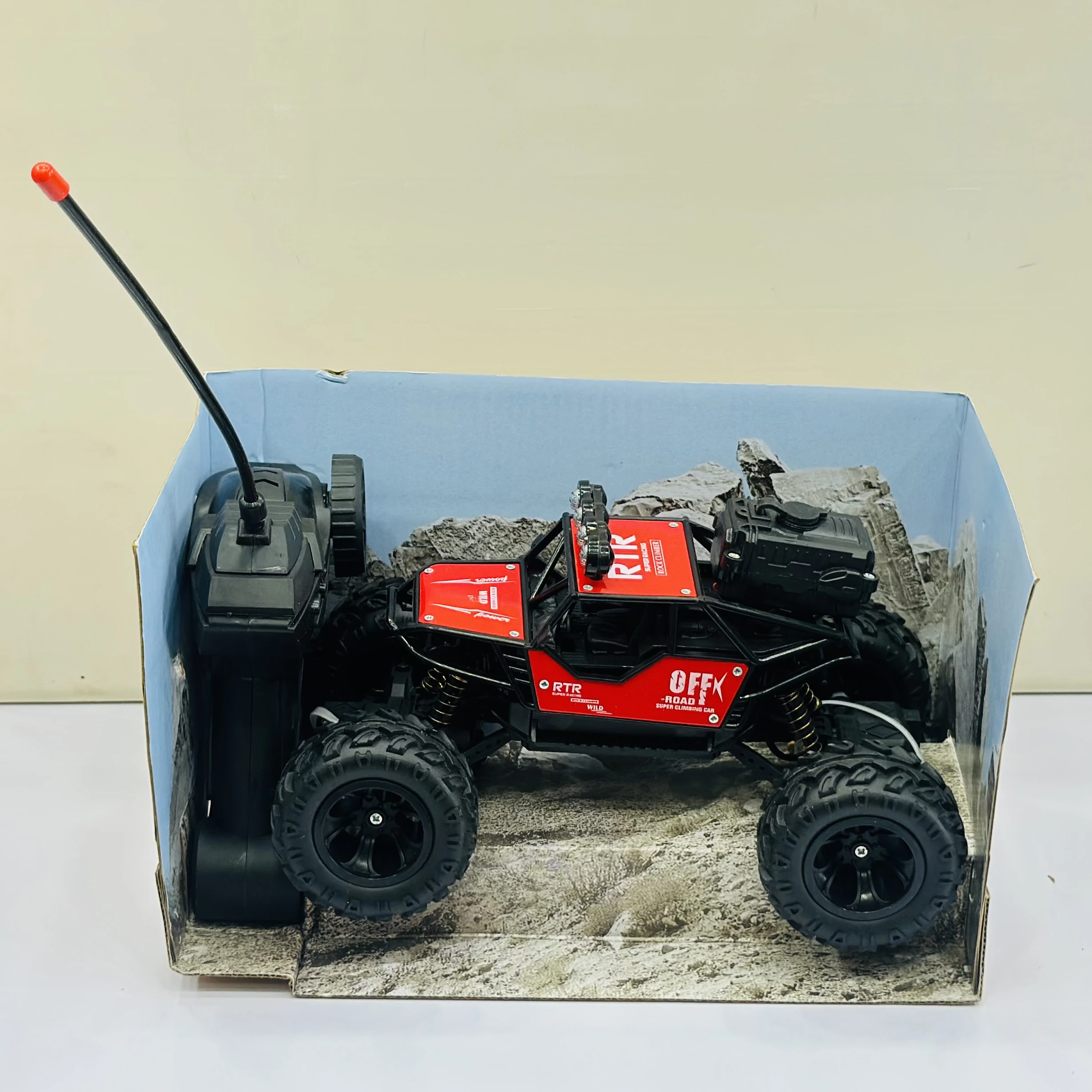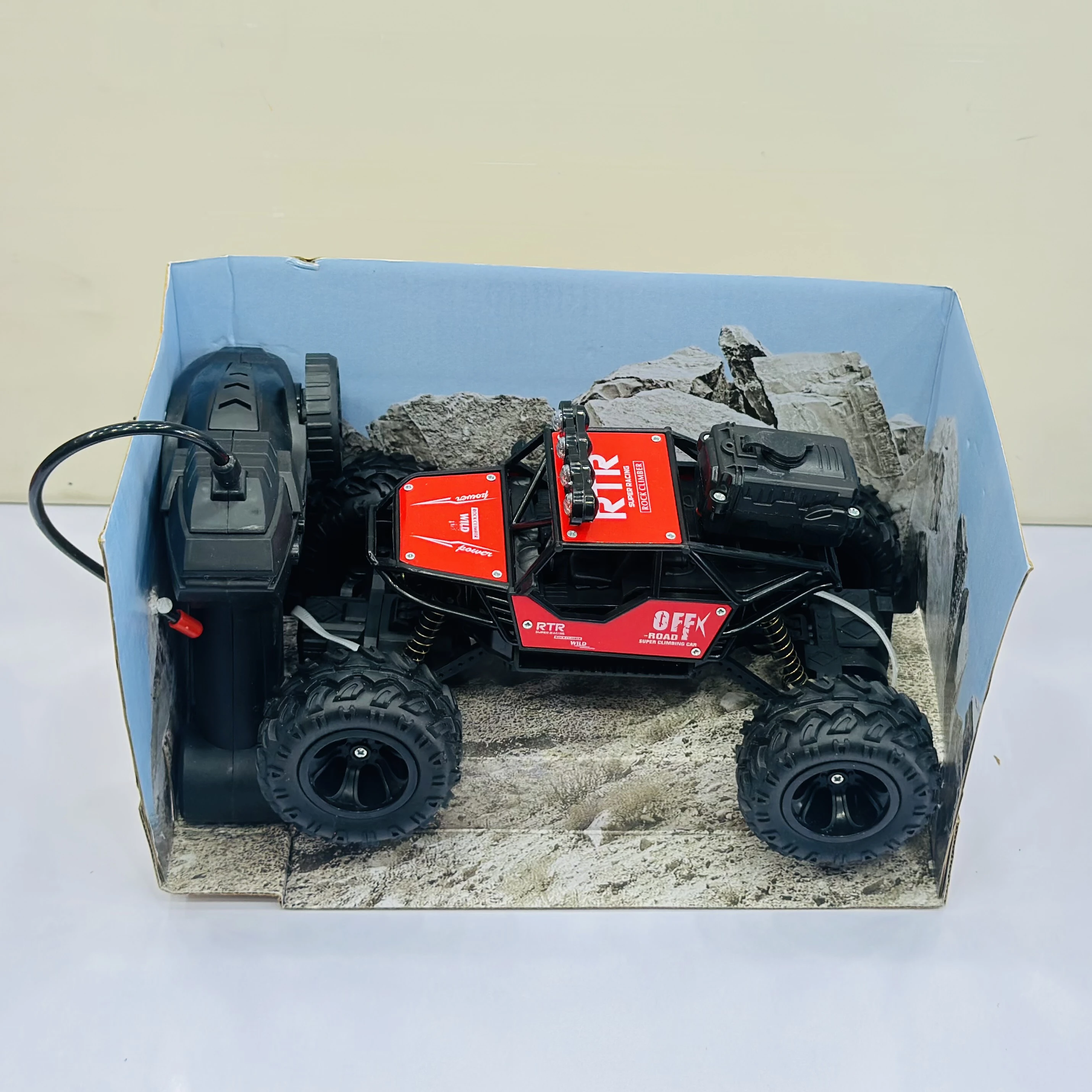 • It is an off-road monster truck with oversized tires, designed to run on various terrains like sand, grass, and small hills.