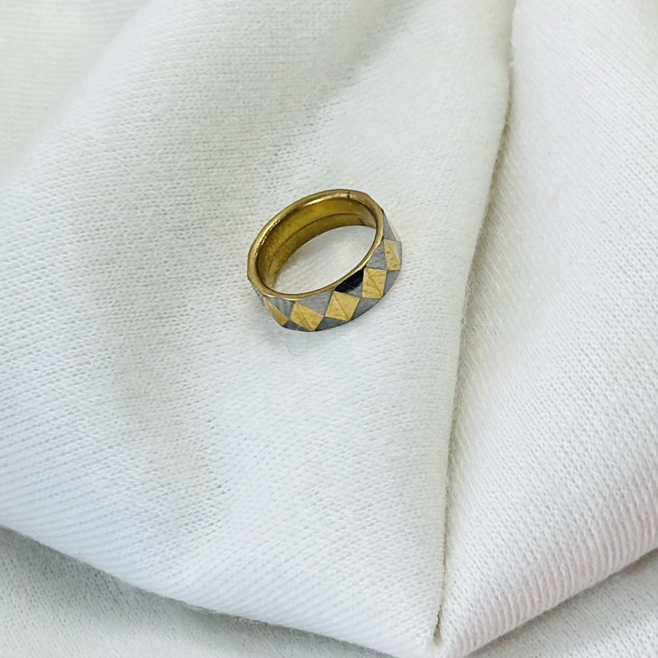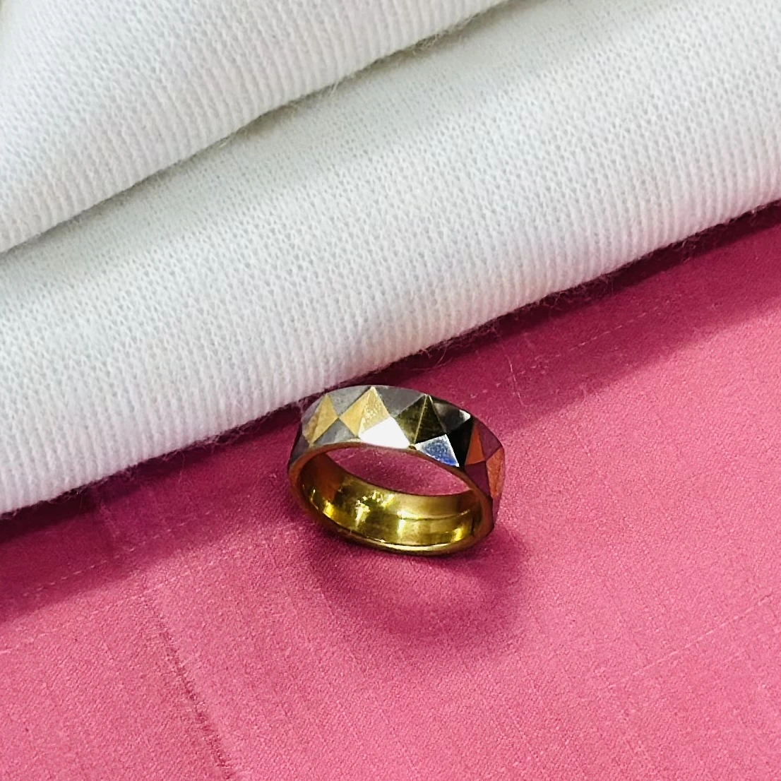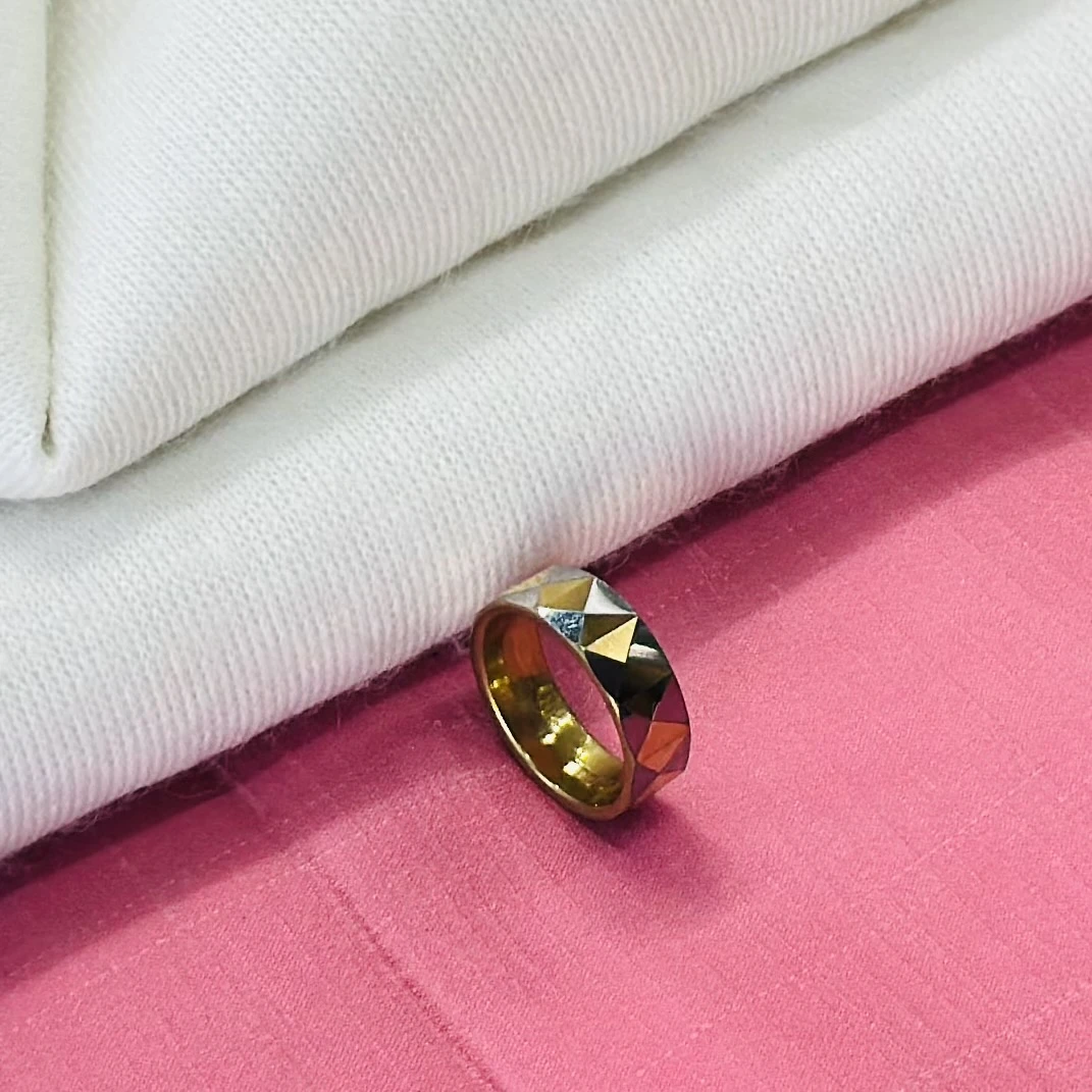 👉 Theme :- Tungsten carbide yellow faceted domed pyramid pattern wedding band ring.