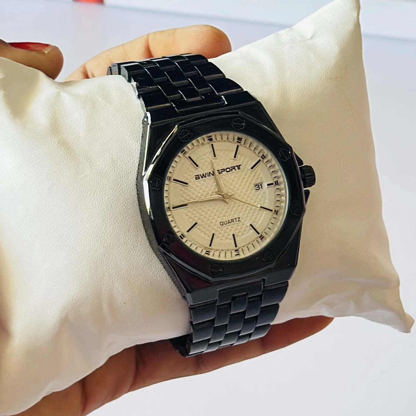 watch is a men's quartz timepiece