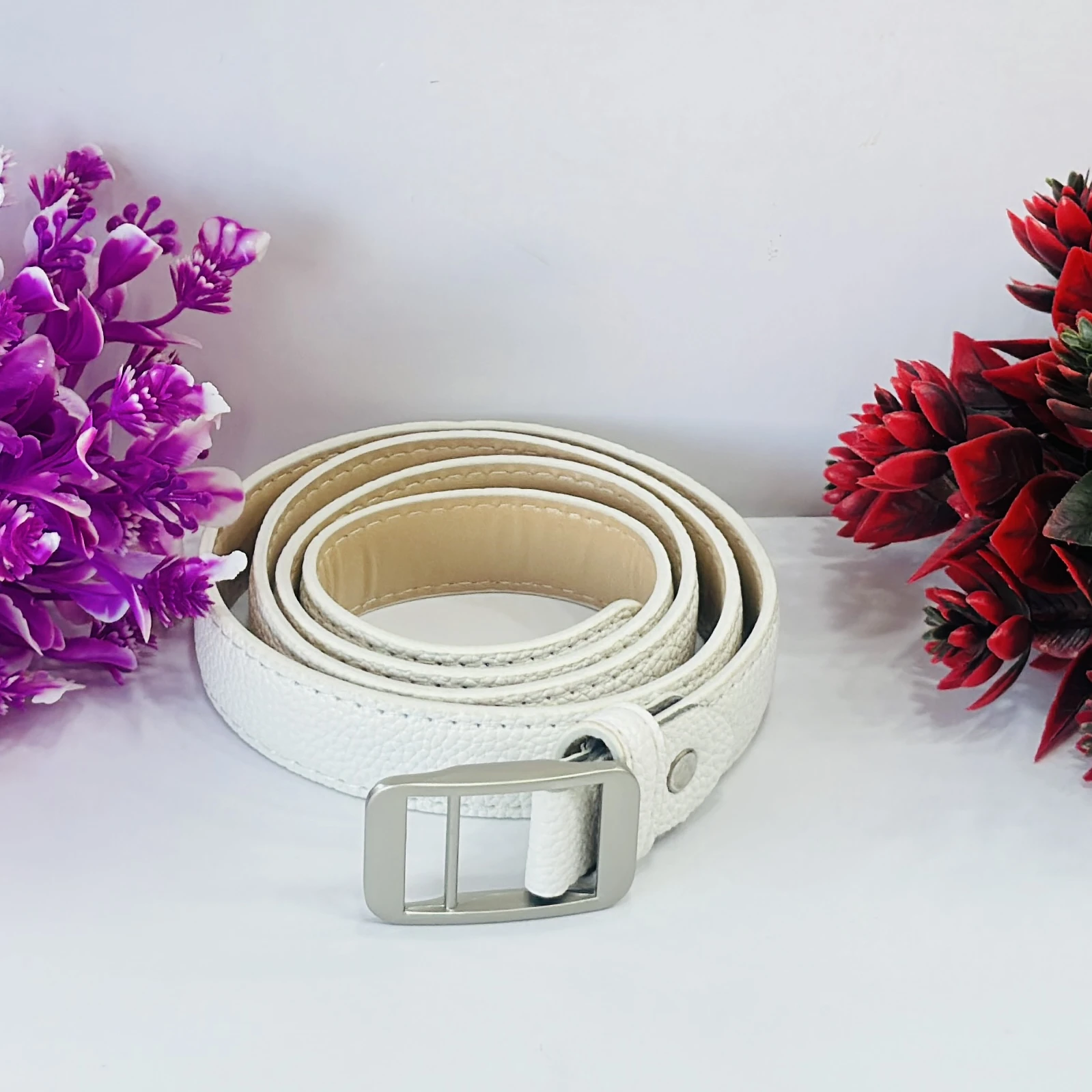 👉 Theme :- white artificial leather belt