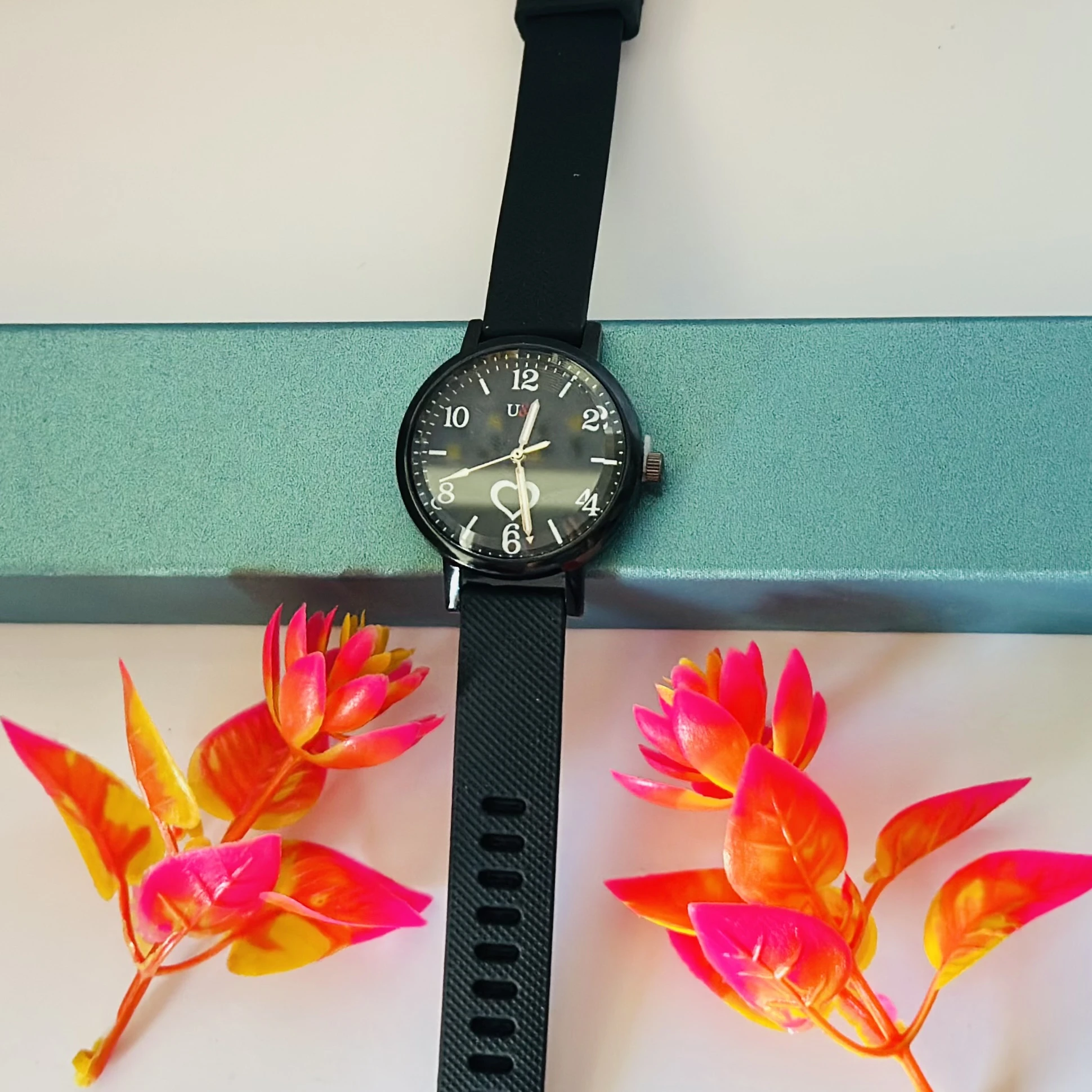 👉 Theme :- women's black silicone strap watch with an easy-to-read dial.