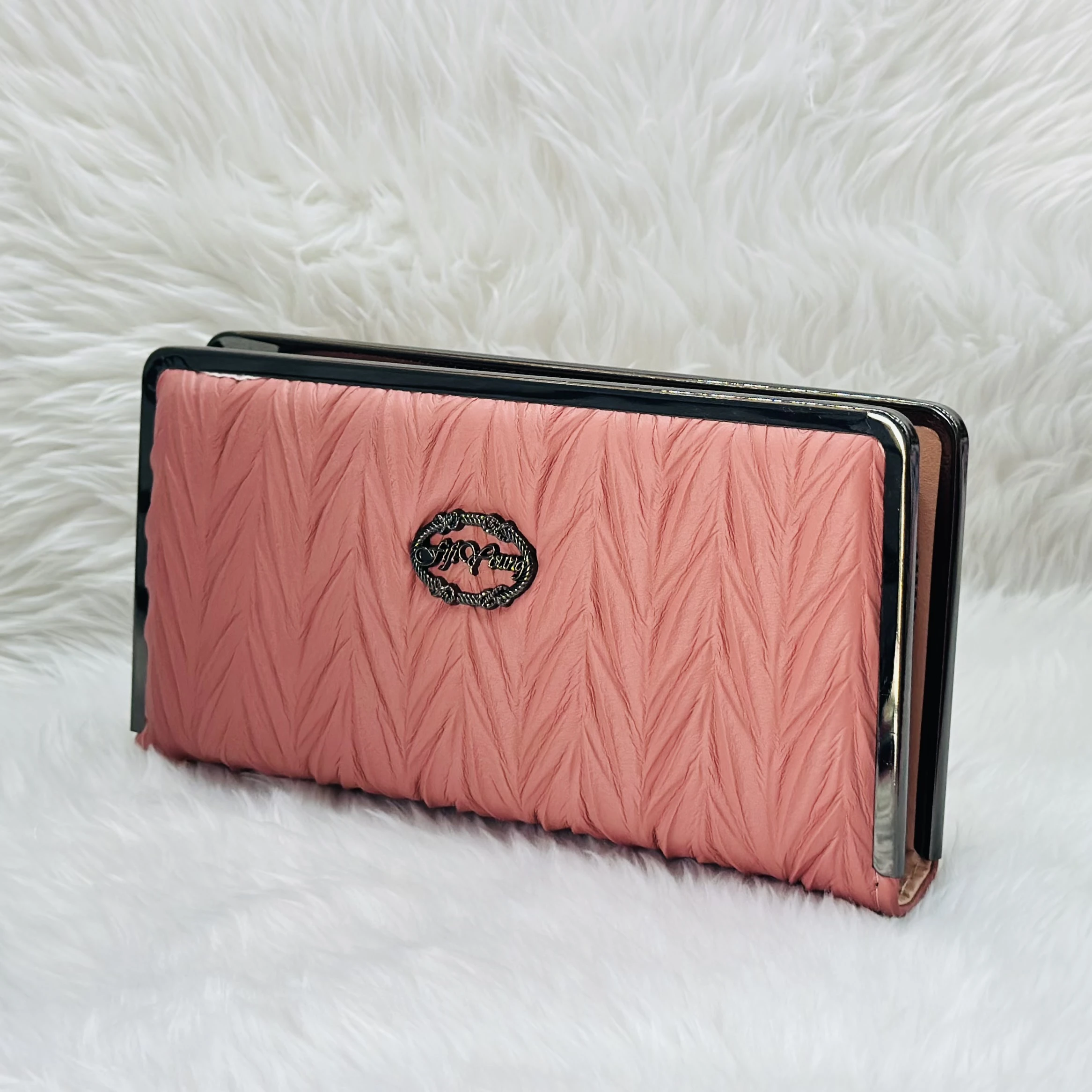 👉 Theme :- Women's PU Leather Hard-Case Clutch in a pink color with a quilted texture and a metal frame and clasp lock.