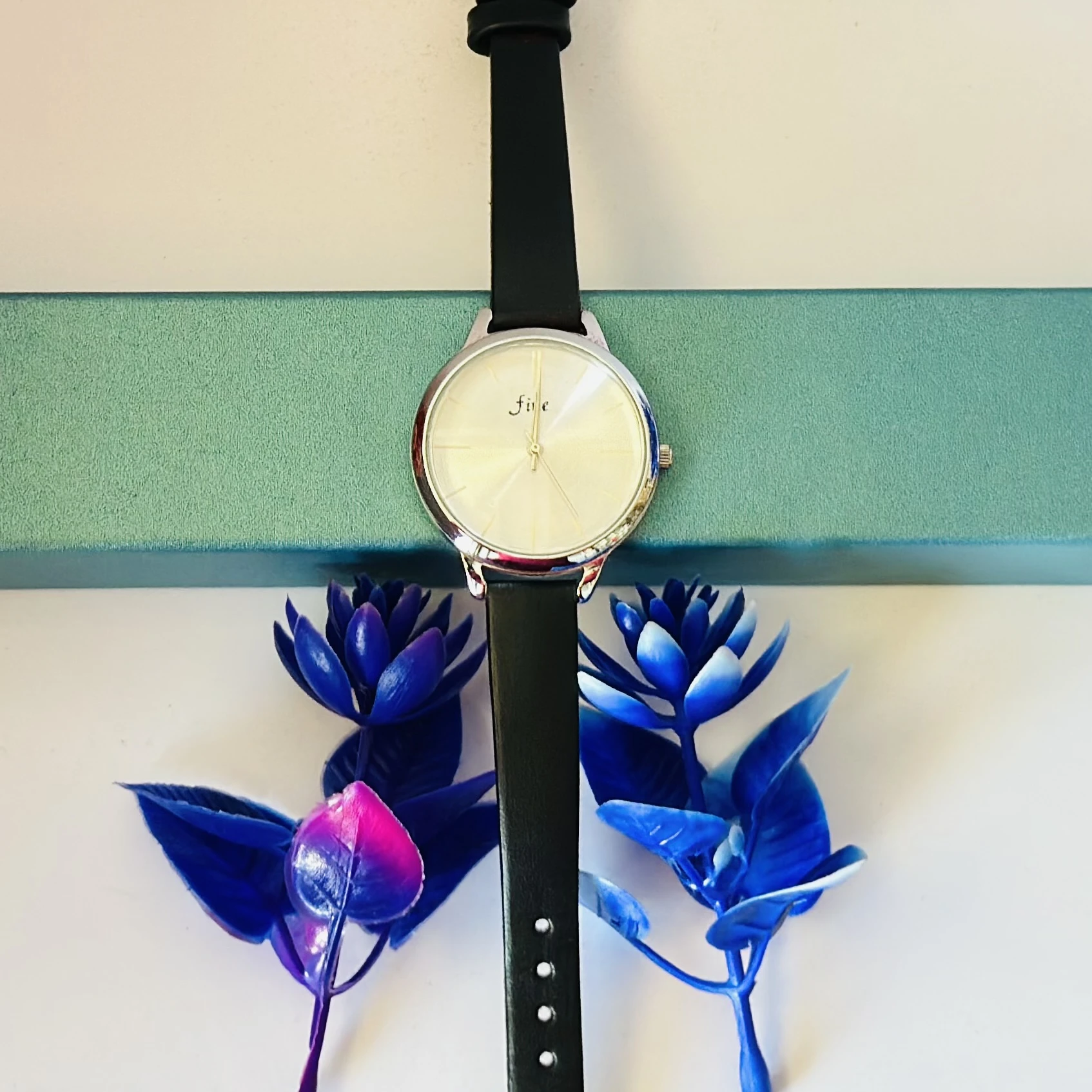 👉 Theme :- women's round leather watch in silver and black with a white dial