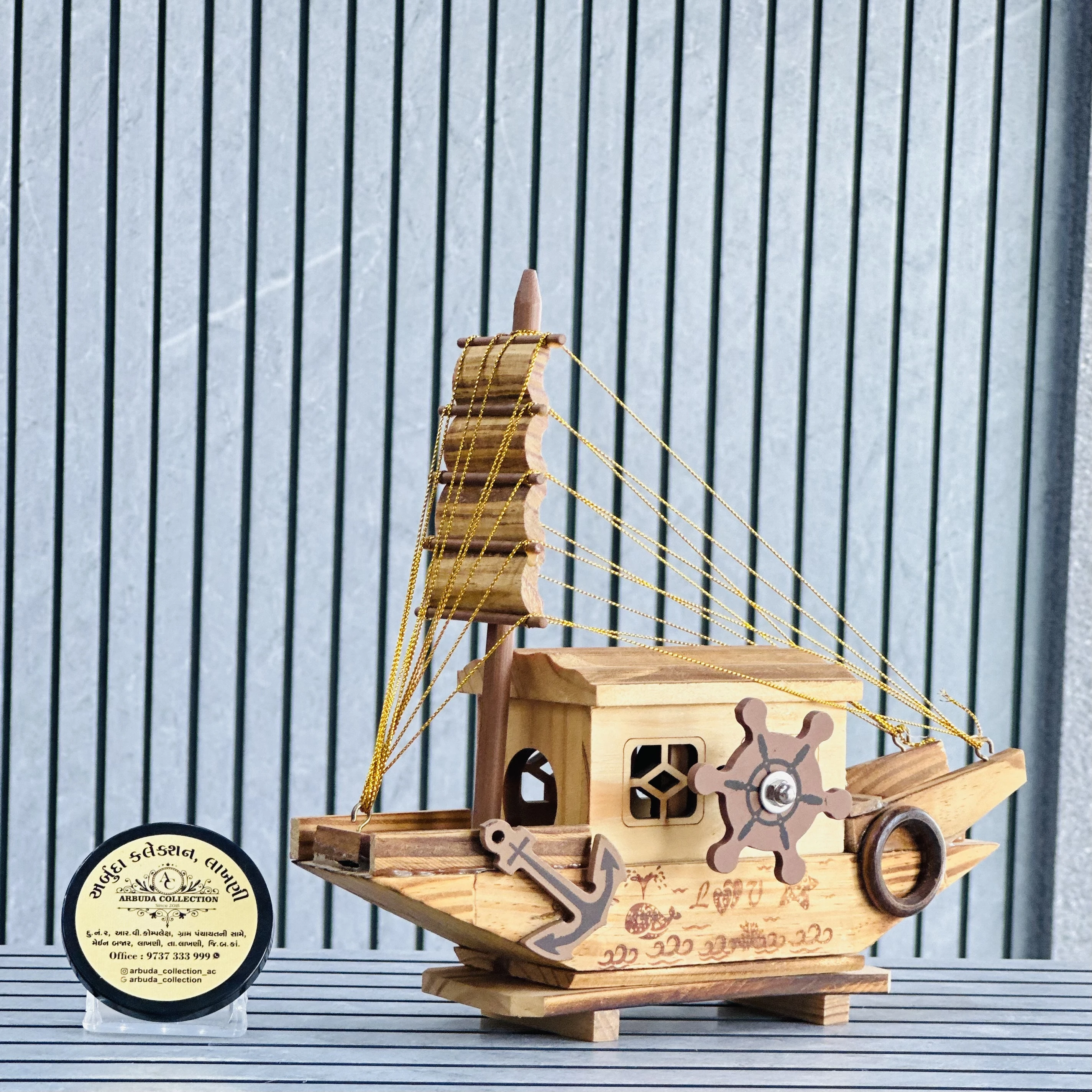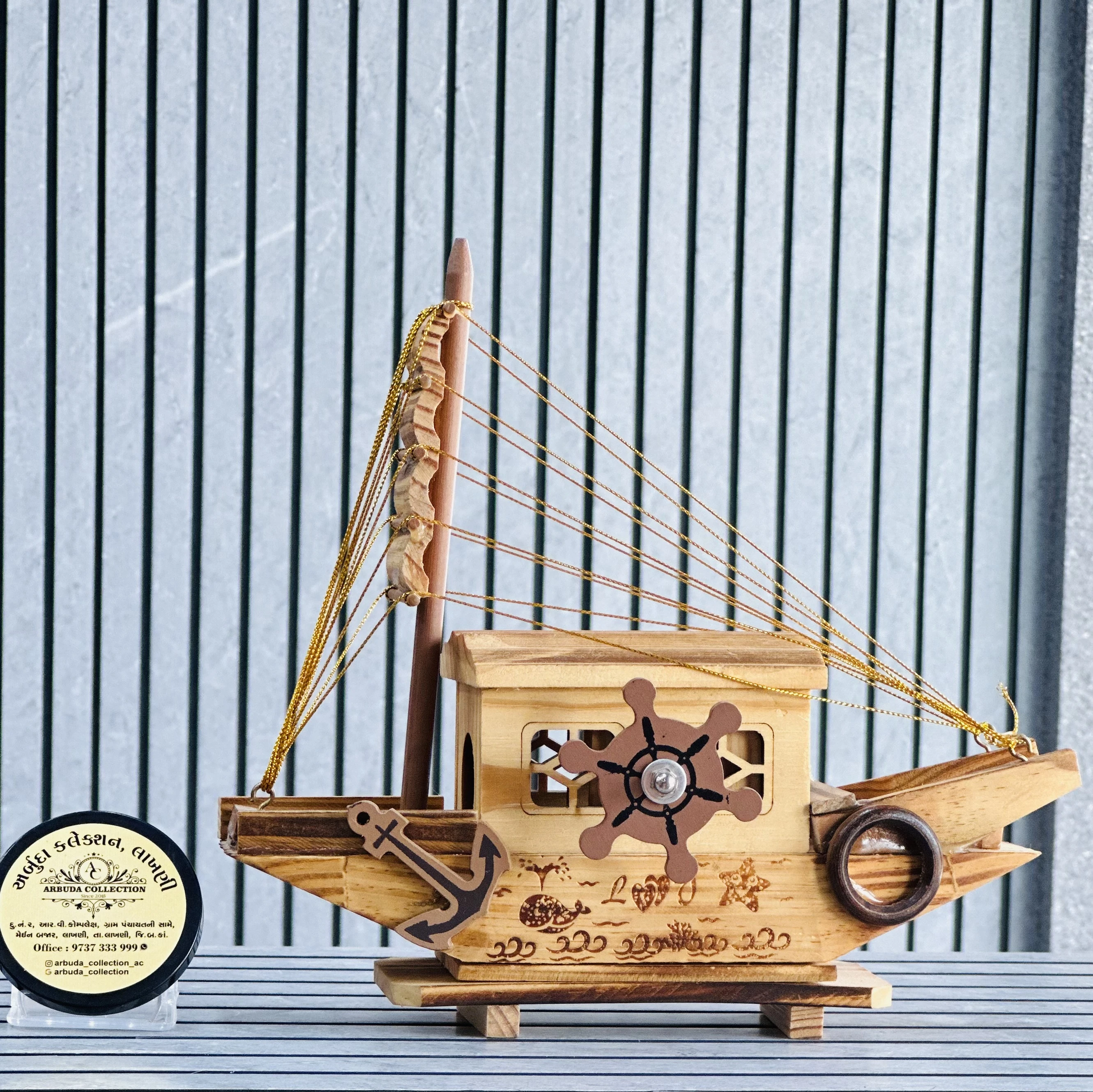 *✅ ARBUDA COLLECTION ✅* *✅9737333999✅* Theme :- Wooden Boat Model Brand :- arbuda collection lakhani Colour:- Brown Style:- Designer Fancy look Material:- It is crafted from wood giving it an antique and rustic aesthetic. Dimensions :- 9 hight, 10 width Uses :- used for home or office decoration, adding a nautical or cultural touch to the space. Cleaning:- wipe clean with a dry cloth Origin:- made in India by local artists Other words:- limited addition…