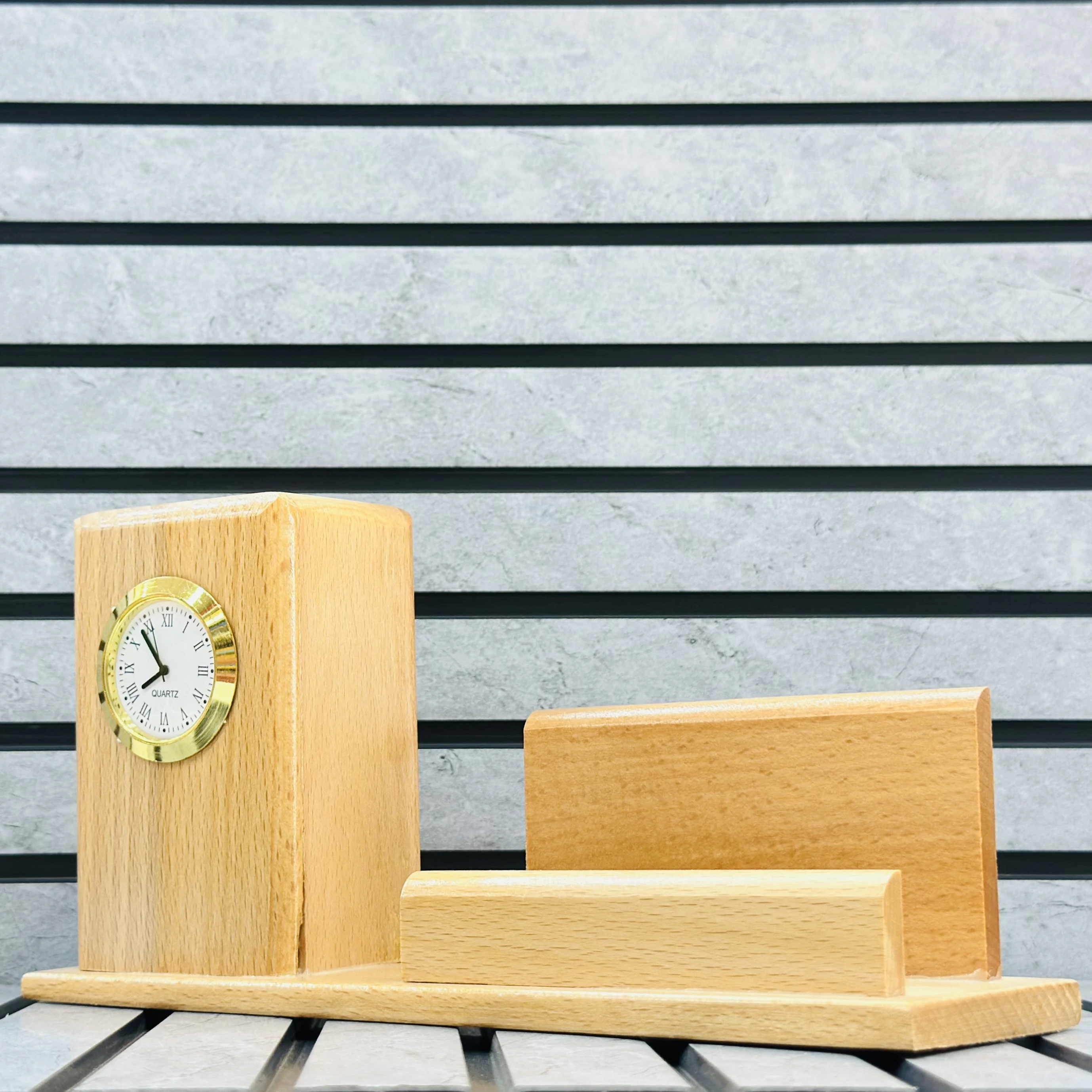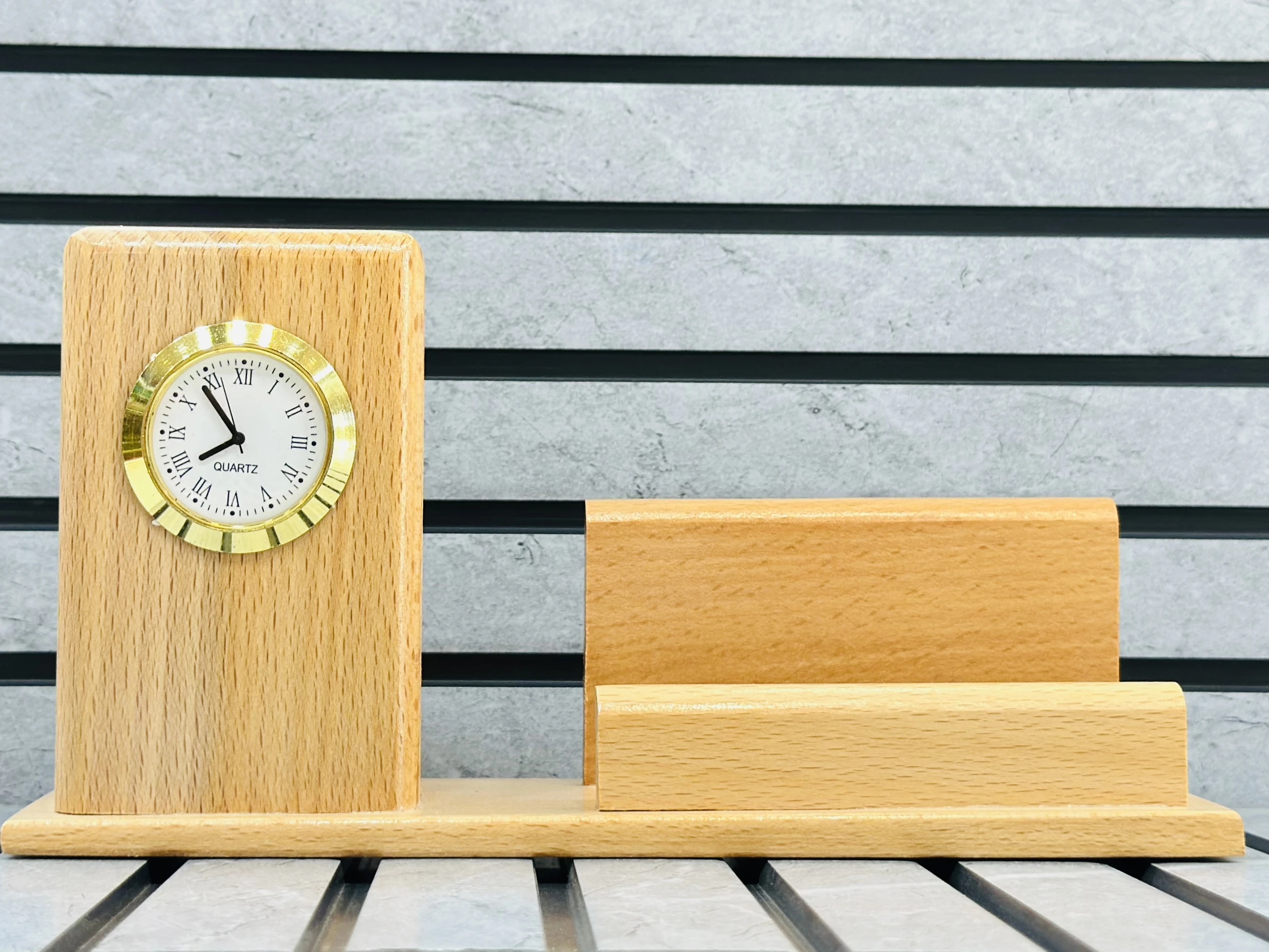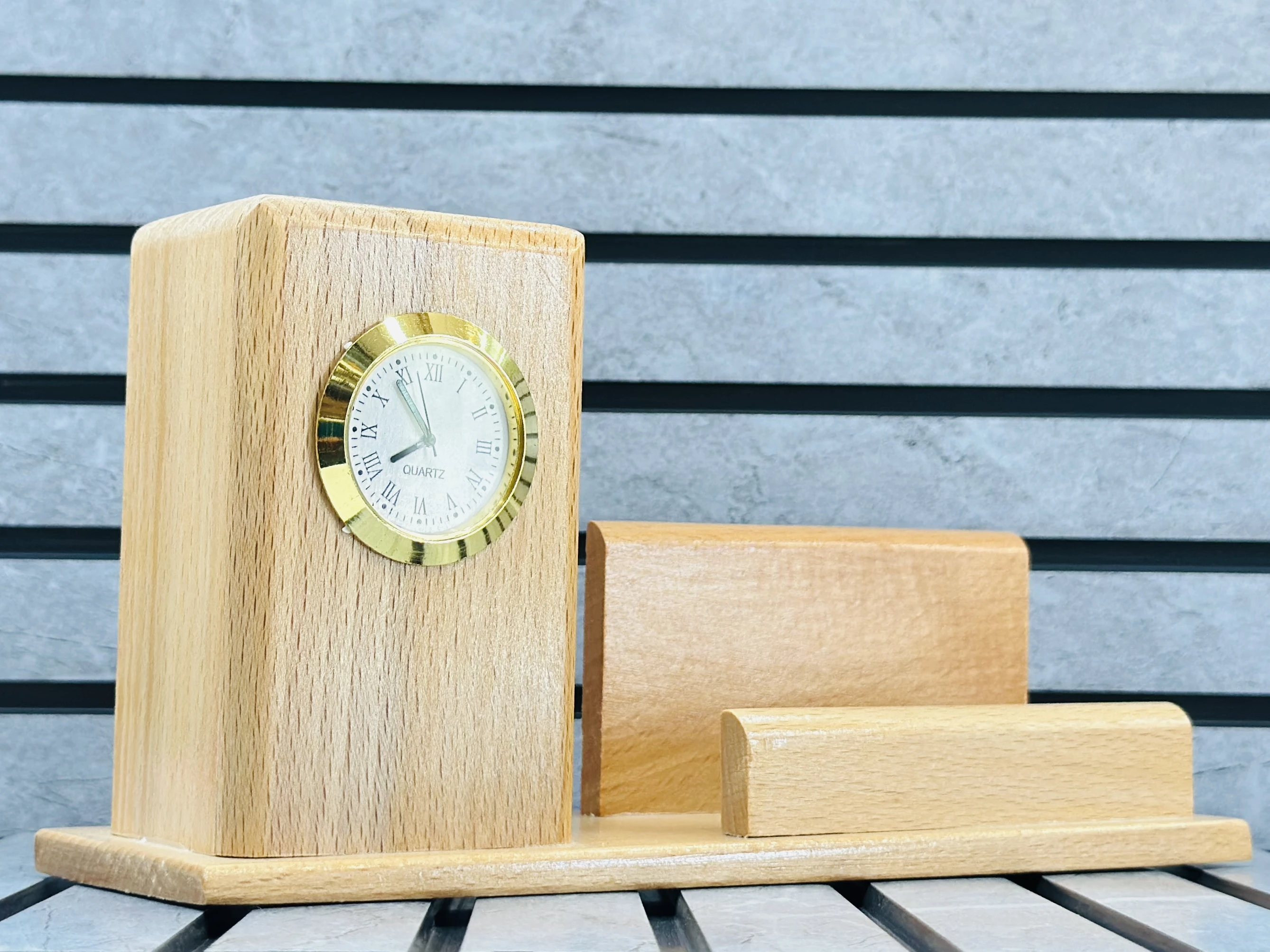 👉 Theme :- wooden desk clock and plaque, likely intended as a gift or promotional item