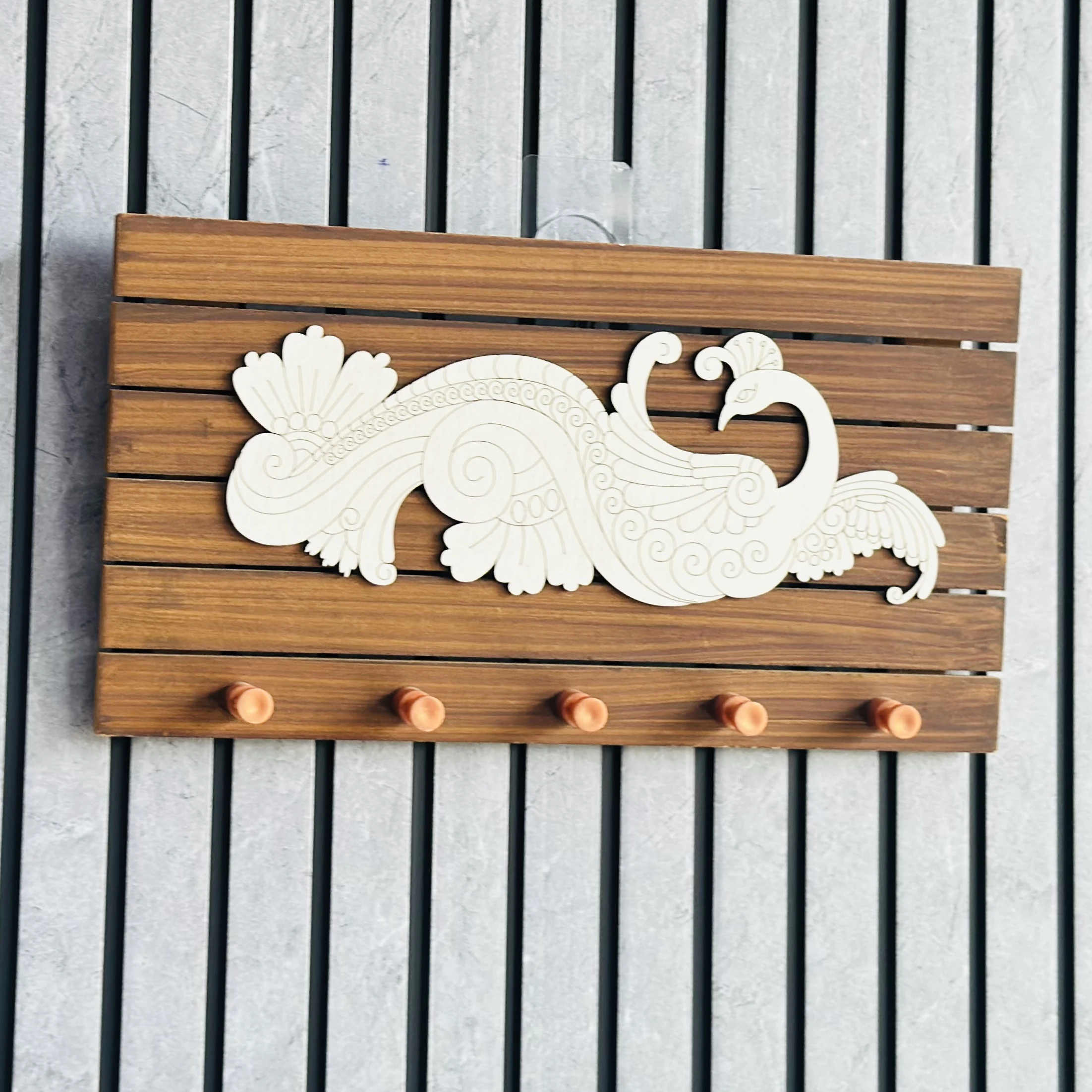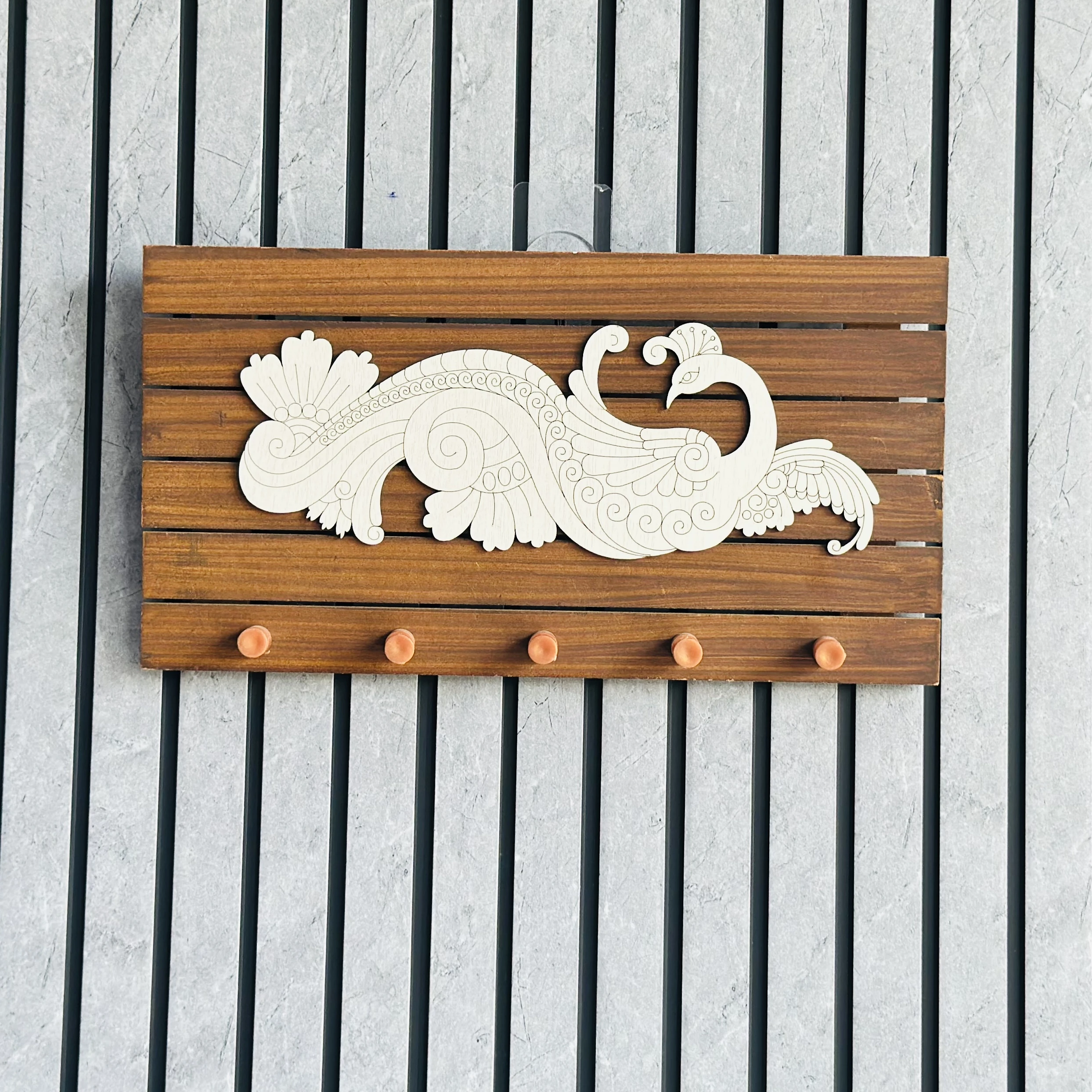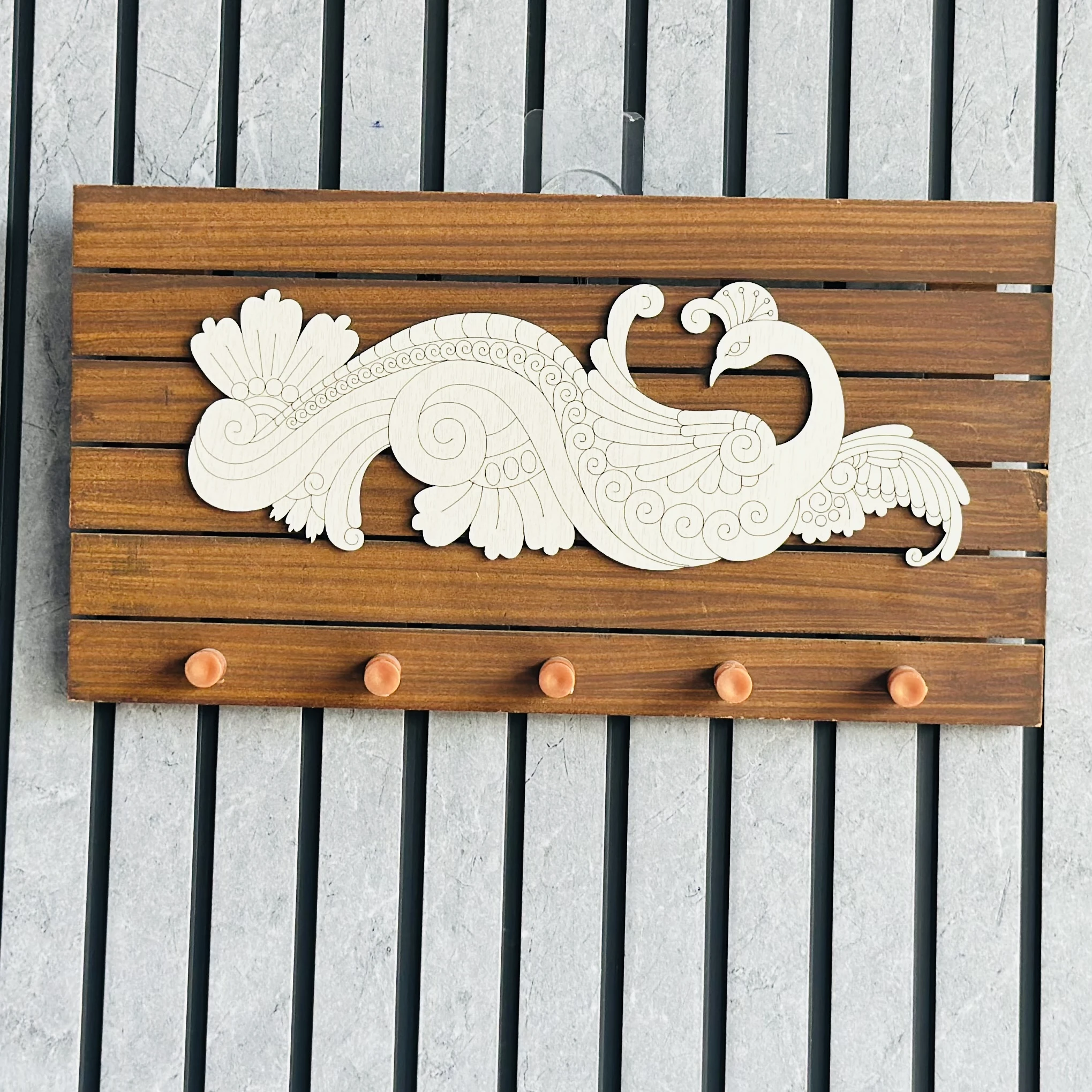 👉 Theme :- wooden key holder with a peacock design