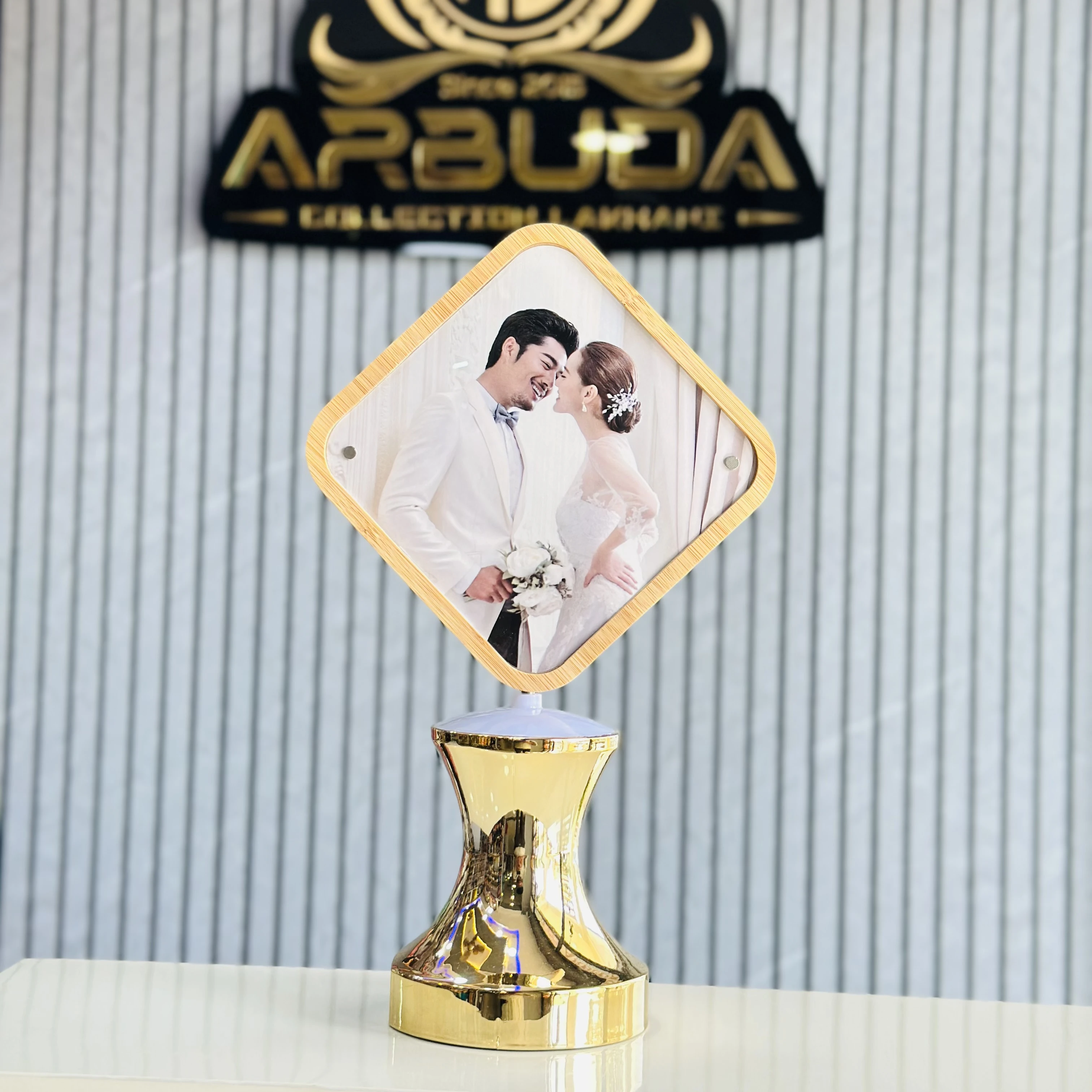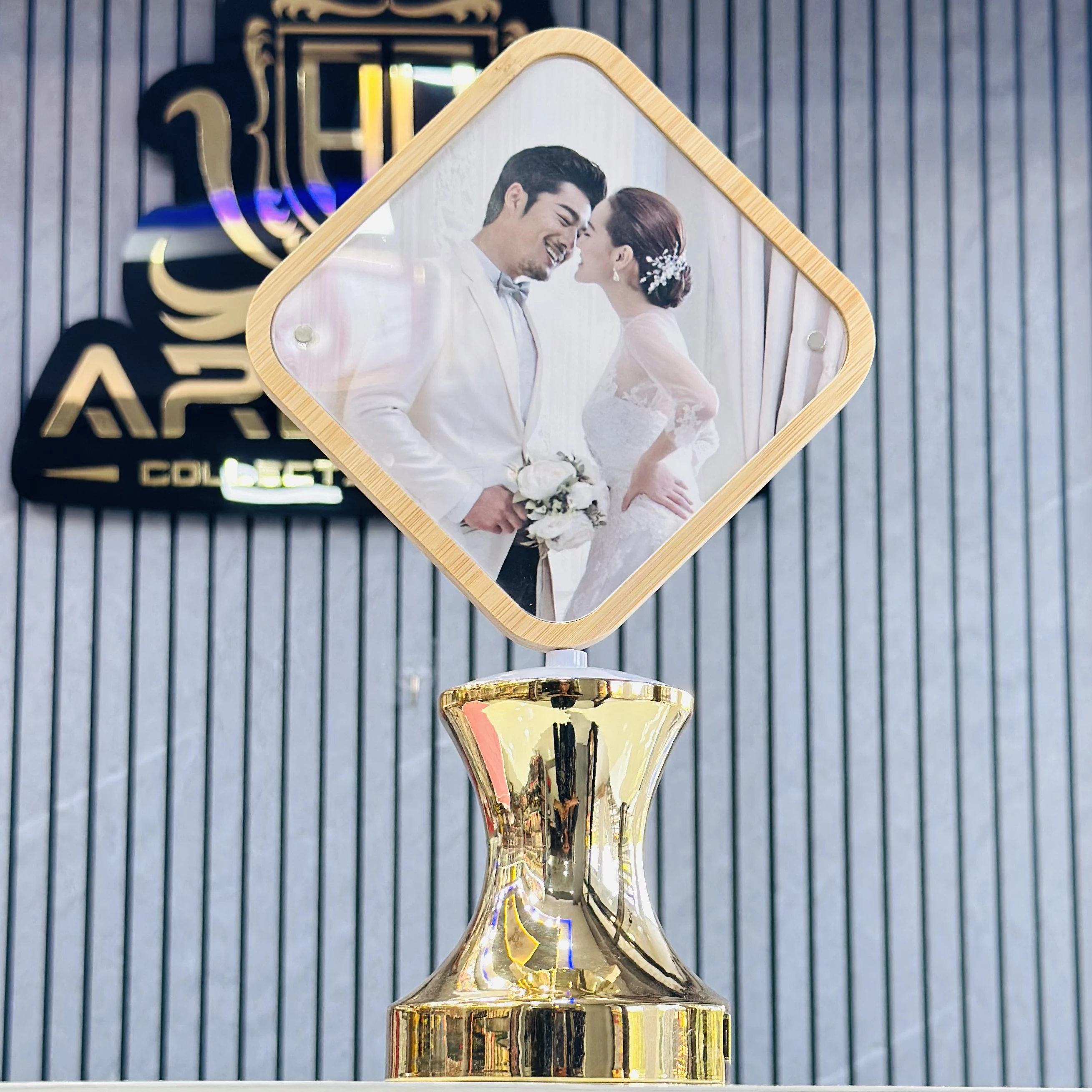 👉 Theme :- Wooden Rhombus Shape LED Rotating Lamp