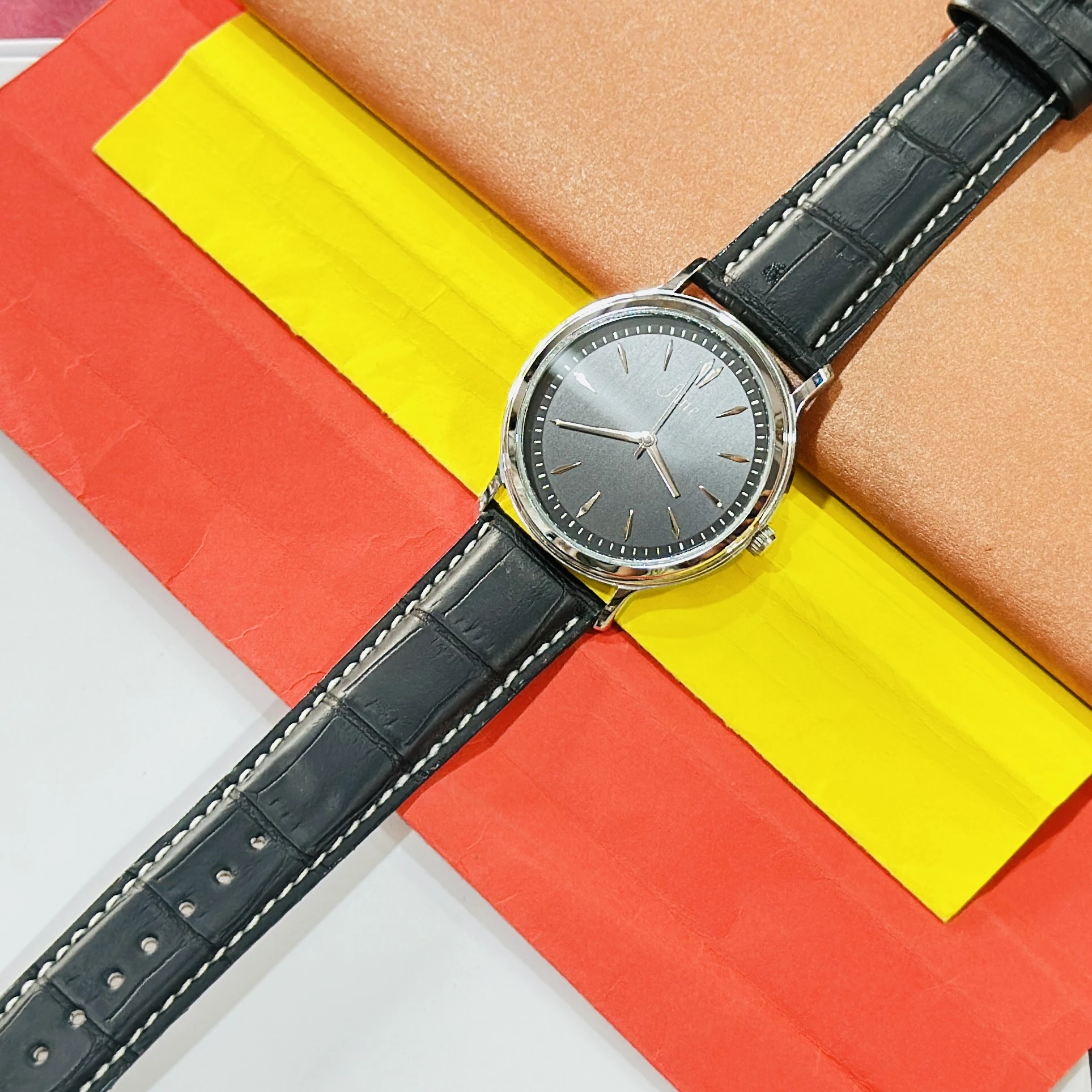 👉Theme :- wrist watch featuring a black dial branded as "fine" and a black leather strap.
