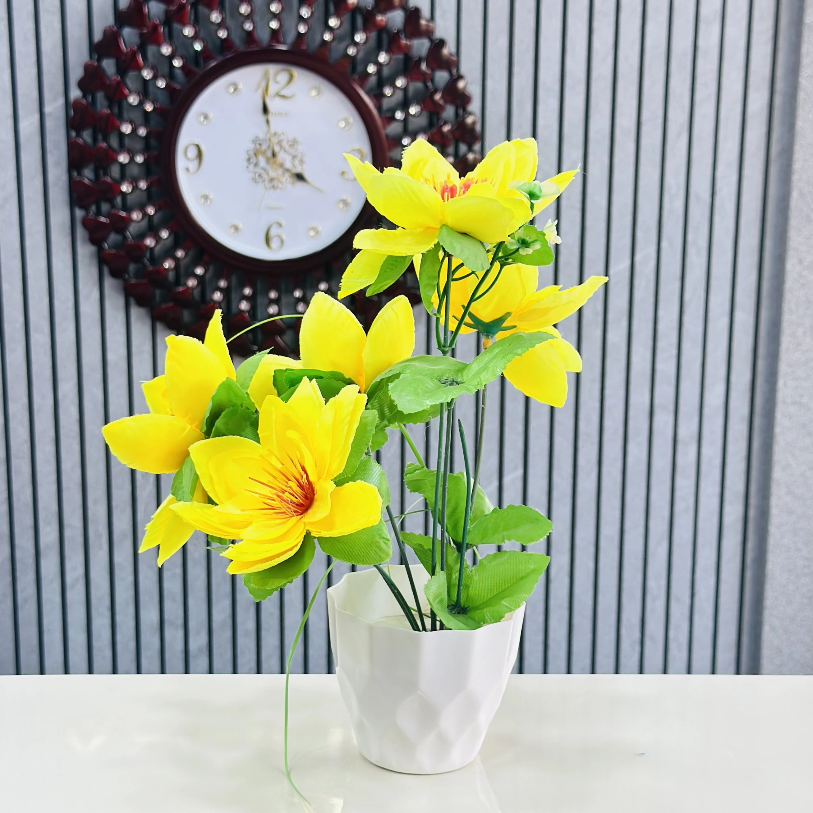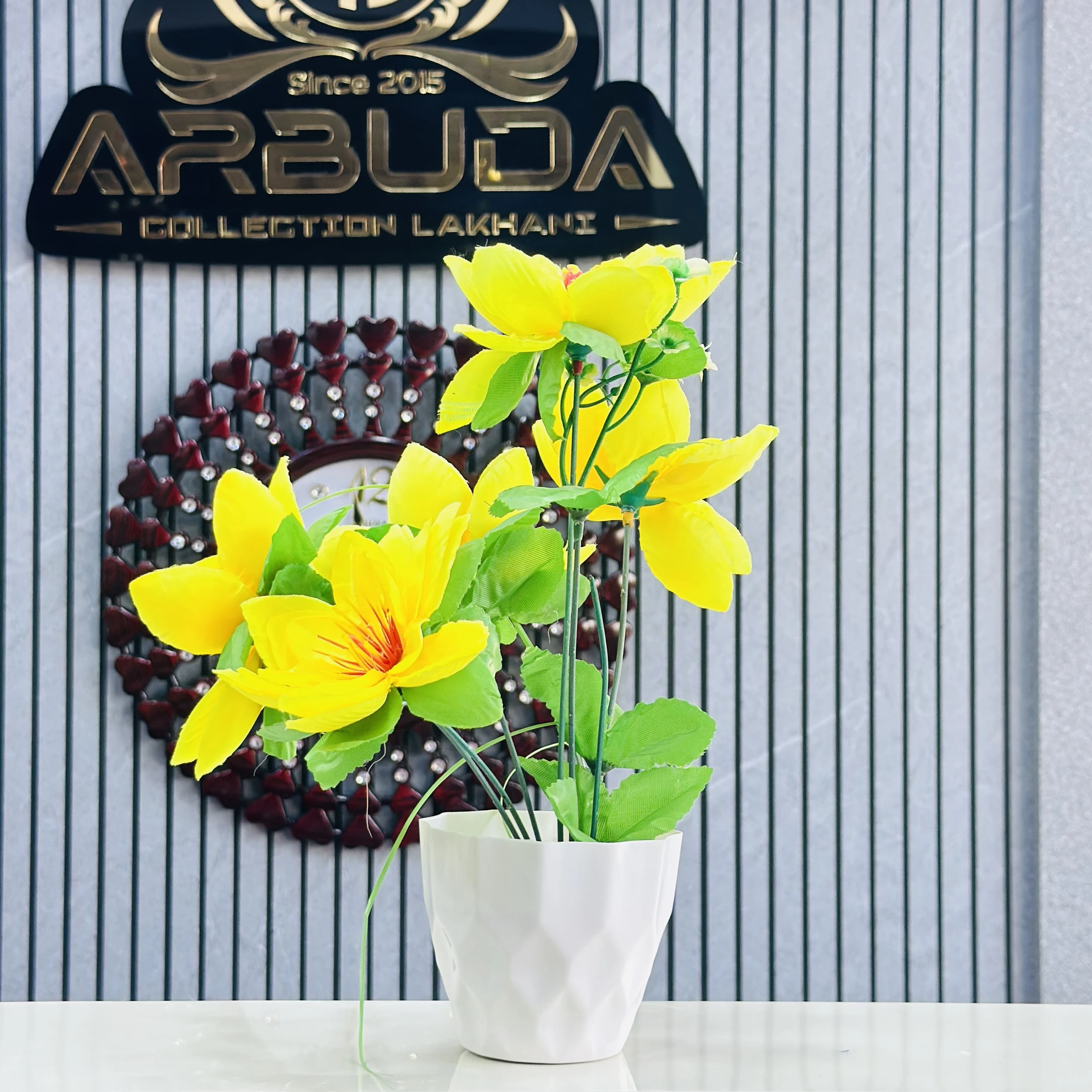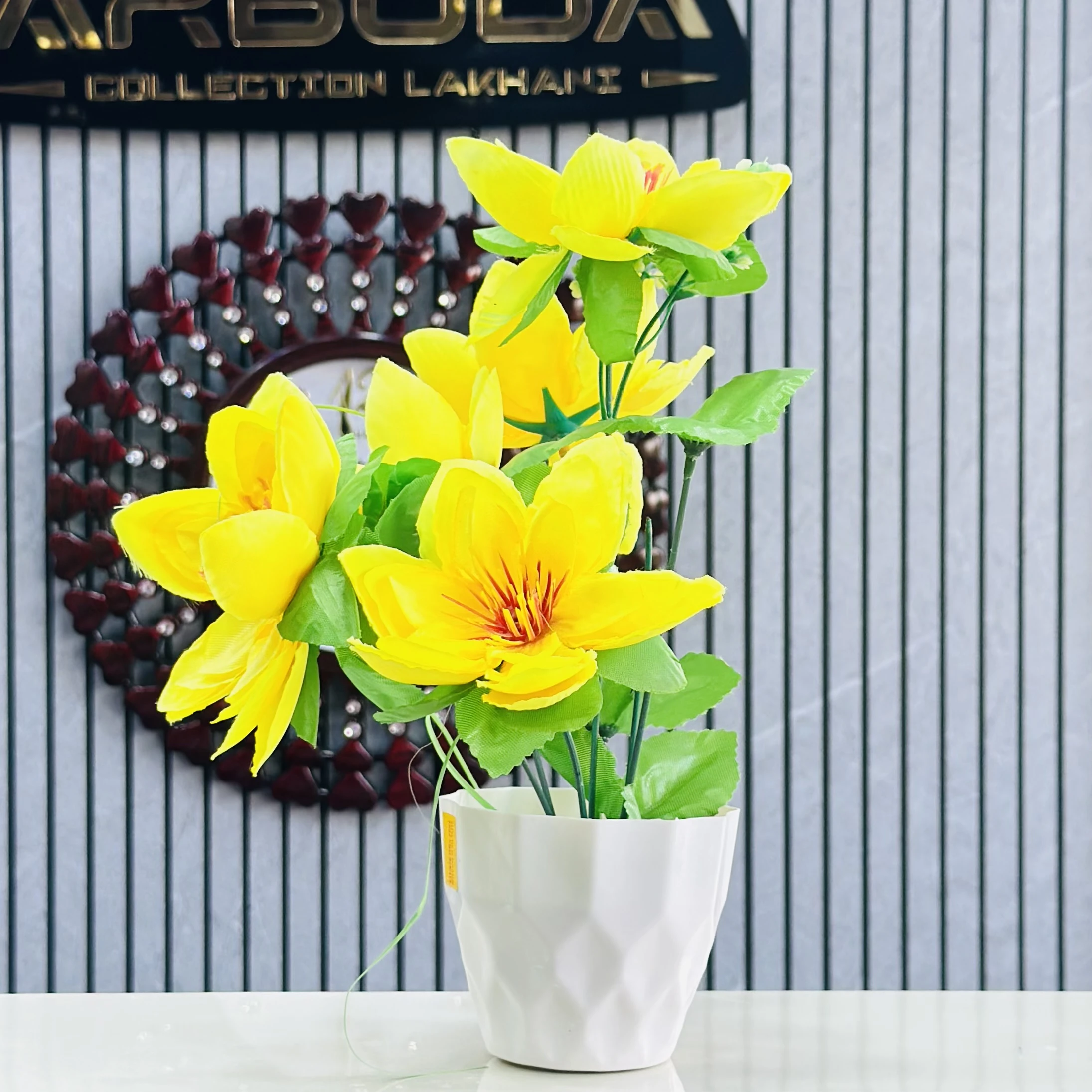 👉 Theme :- Yellow lily flower plant in a white pot.