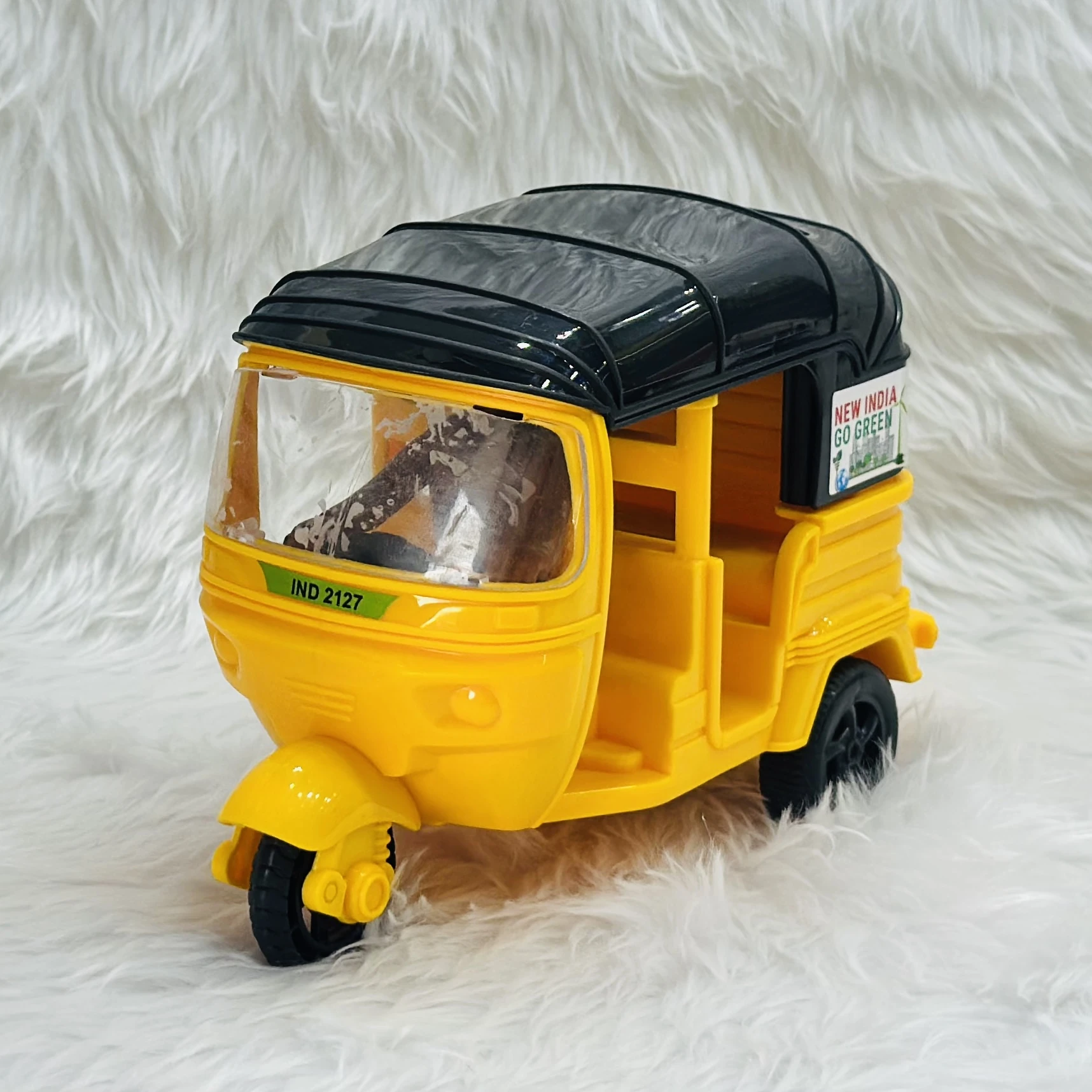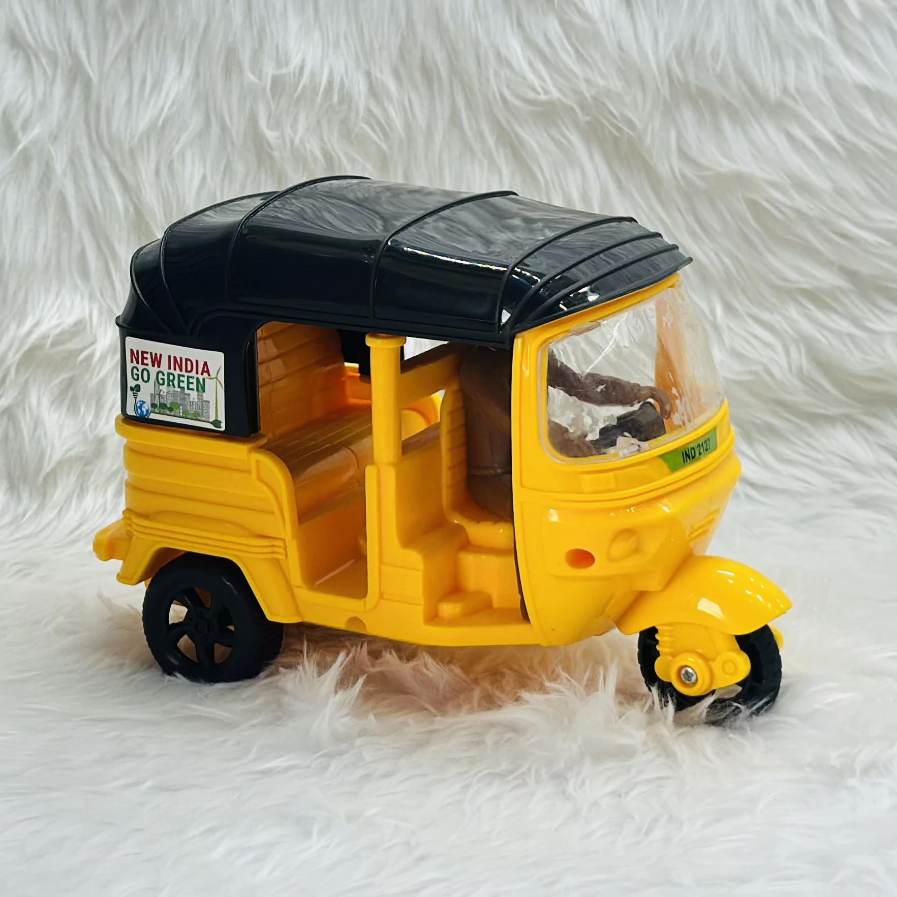 👉 Theme :- yellow plastic toy auto rickshaw.