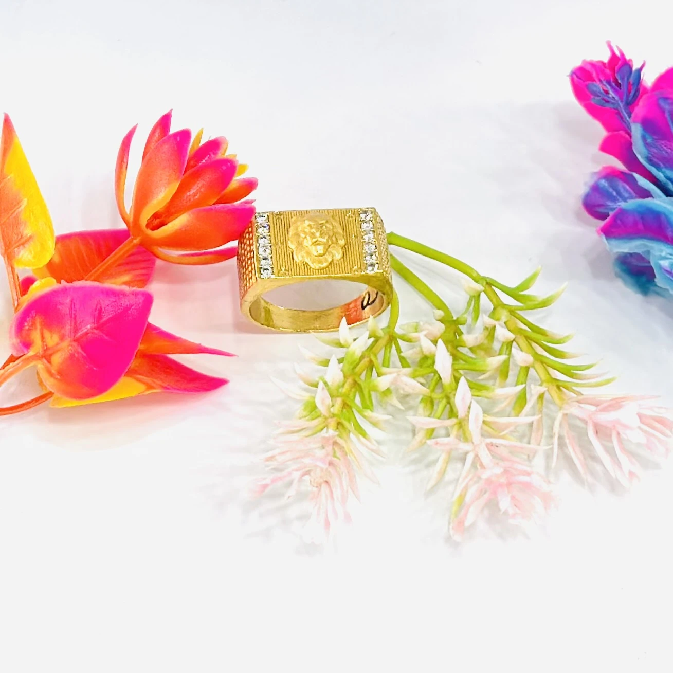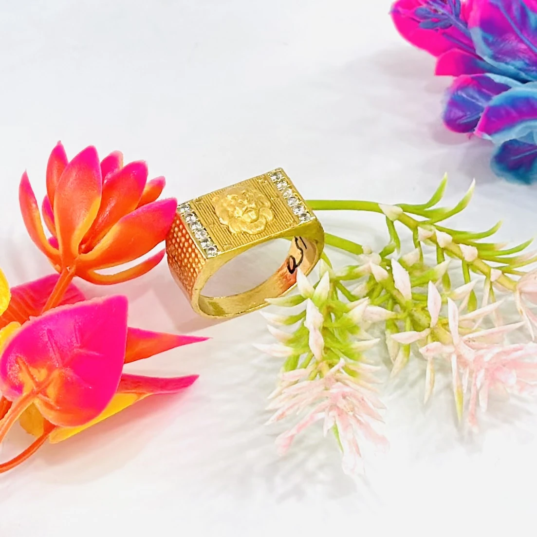 👉 Theme :-Premium Rectangular Gold-Plated, Gold Look Finely Detailed Handmade Ring for Men